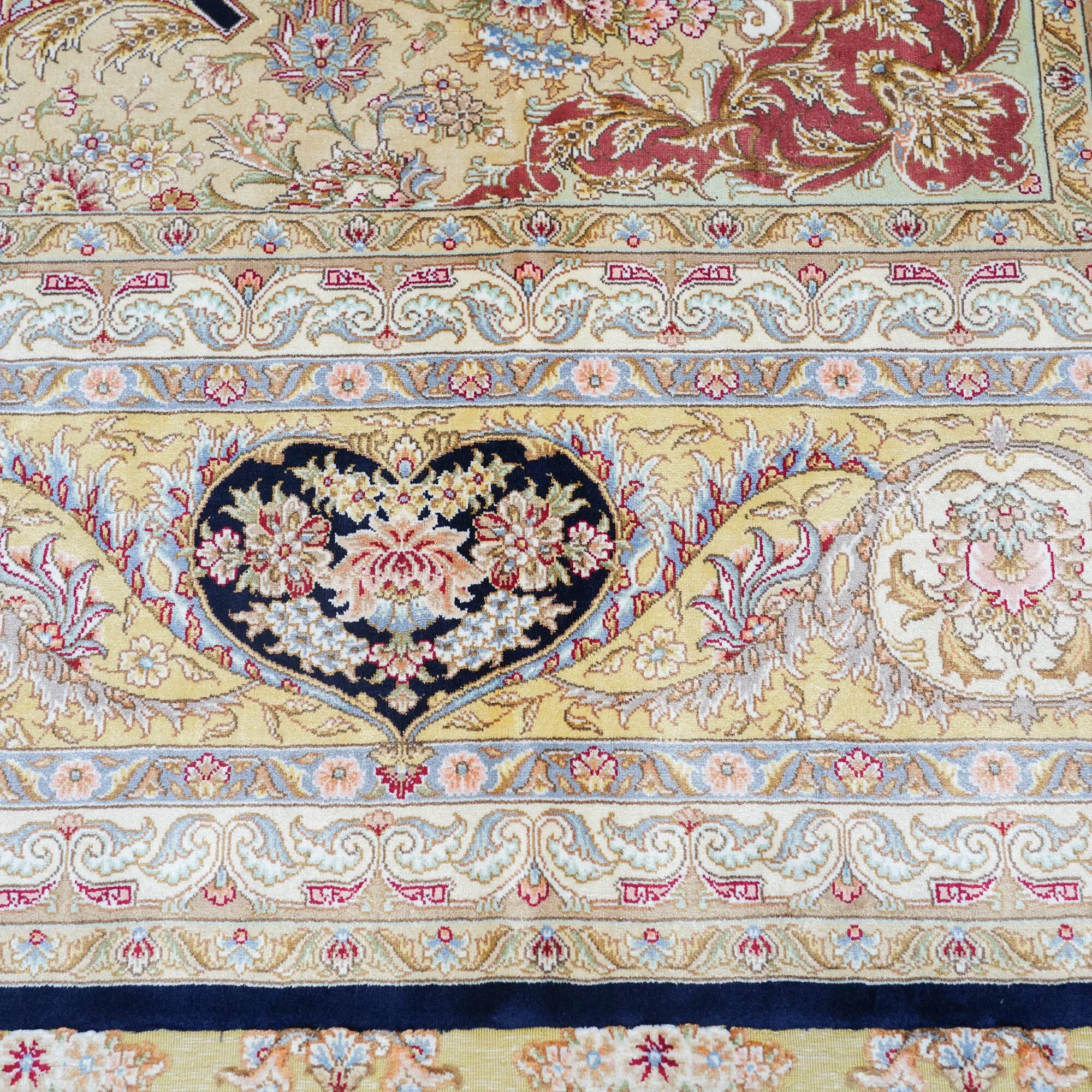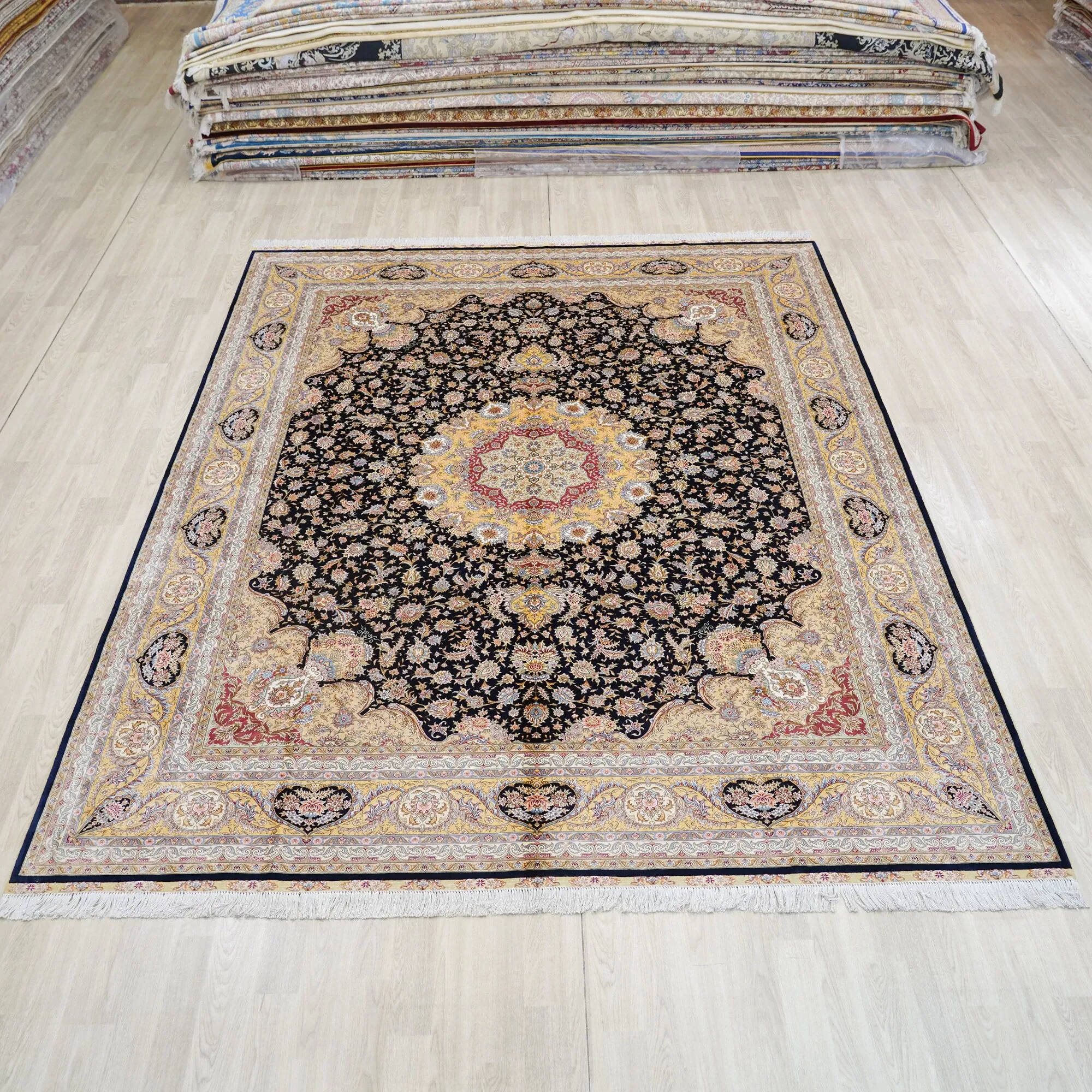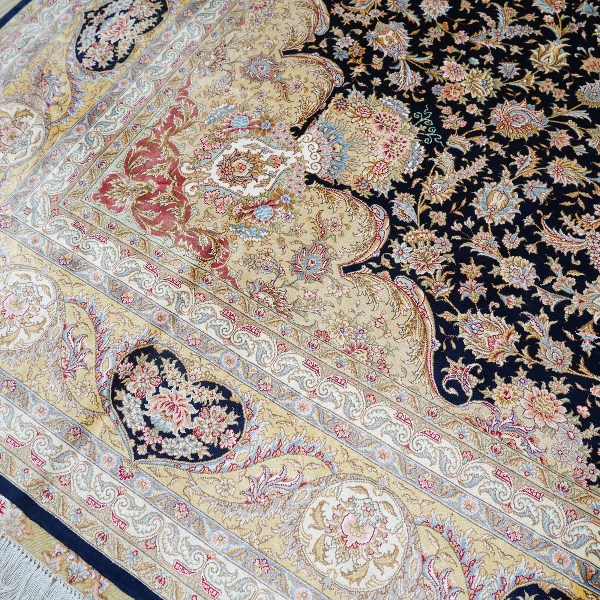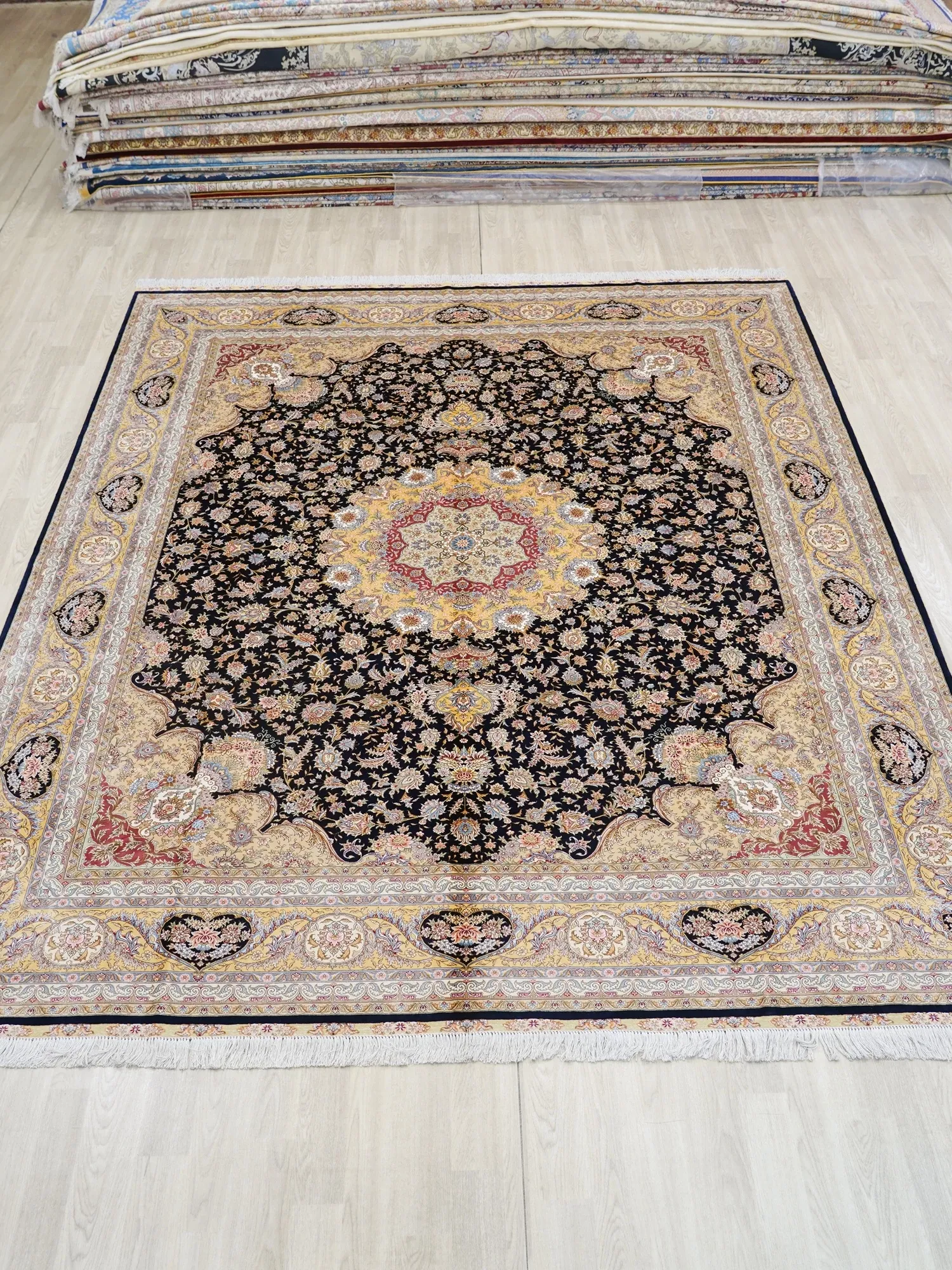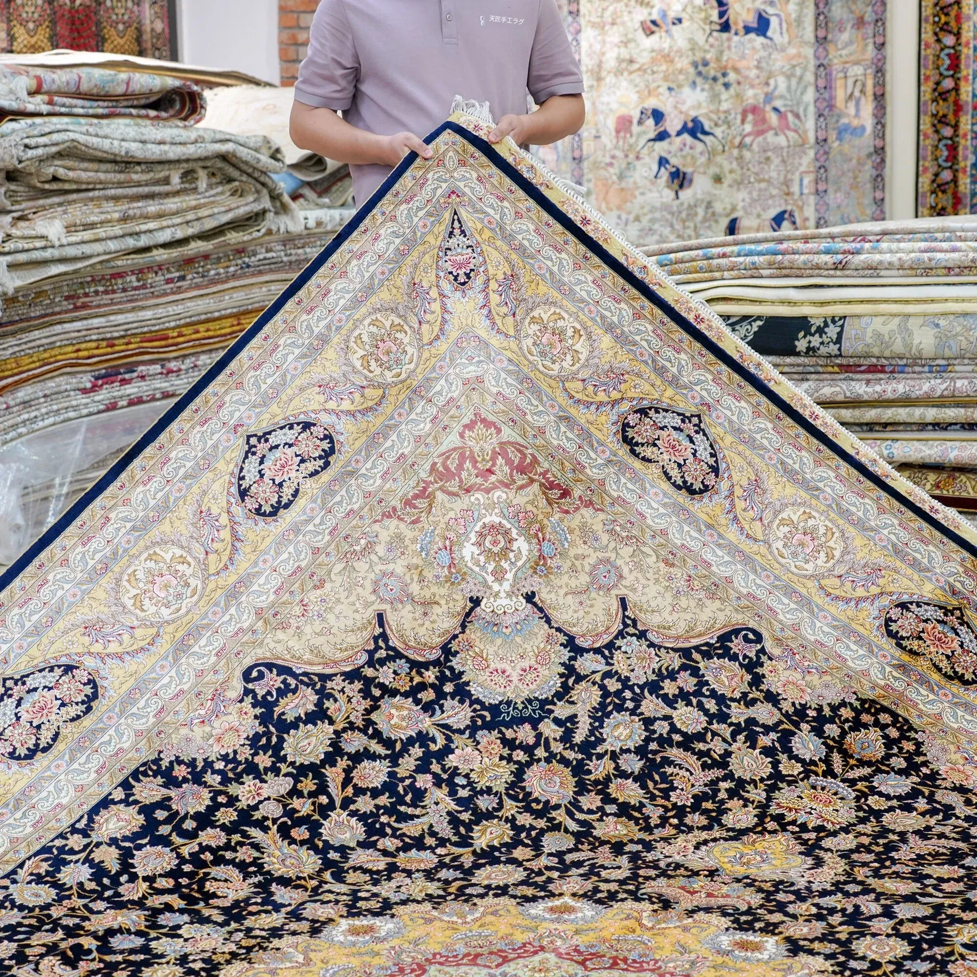 天匠手作の本物シルクカーペット - 豪邸にぴったりなクラシックブルーとコーヒーカラーの240x310cmサイズ!高級感溢れる一品で、あなたの空間を格上げします。