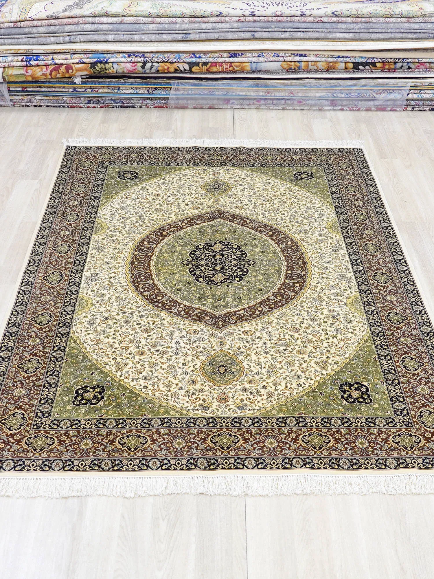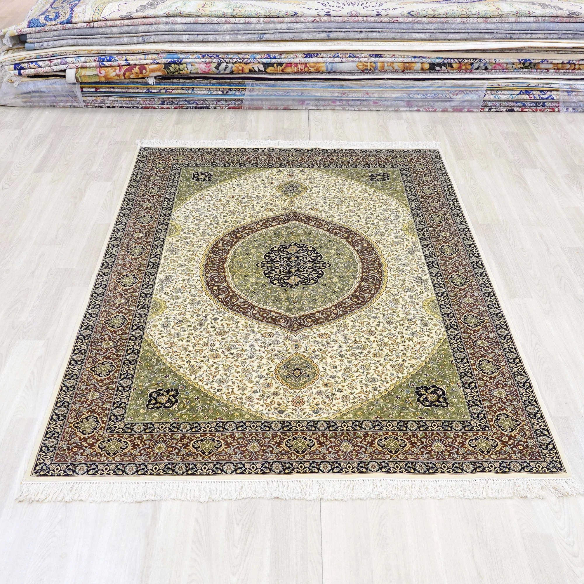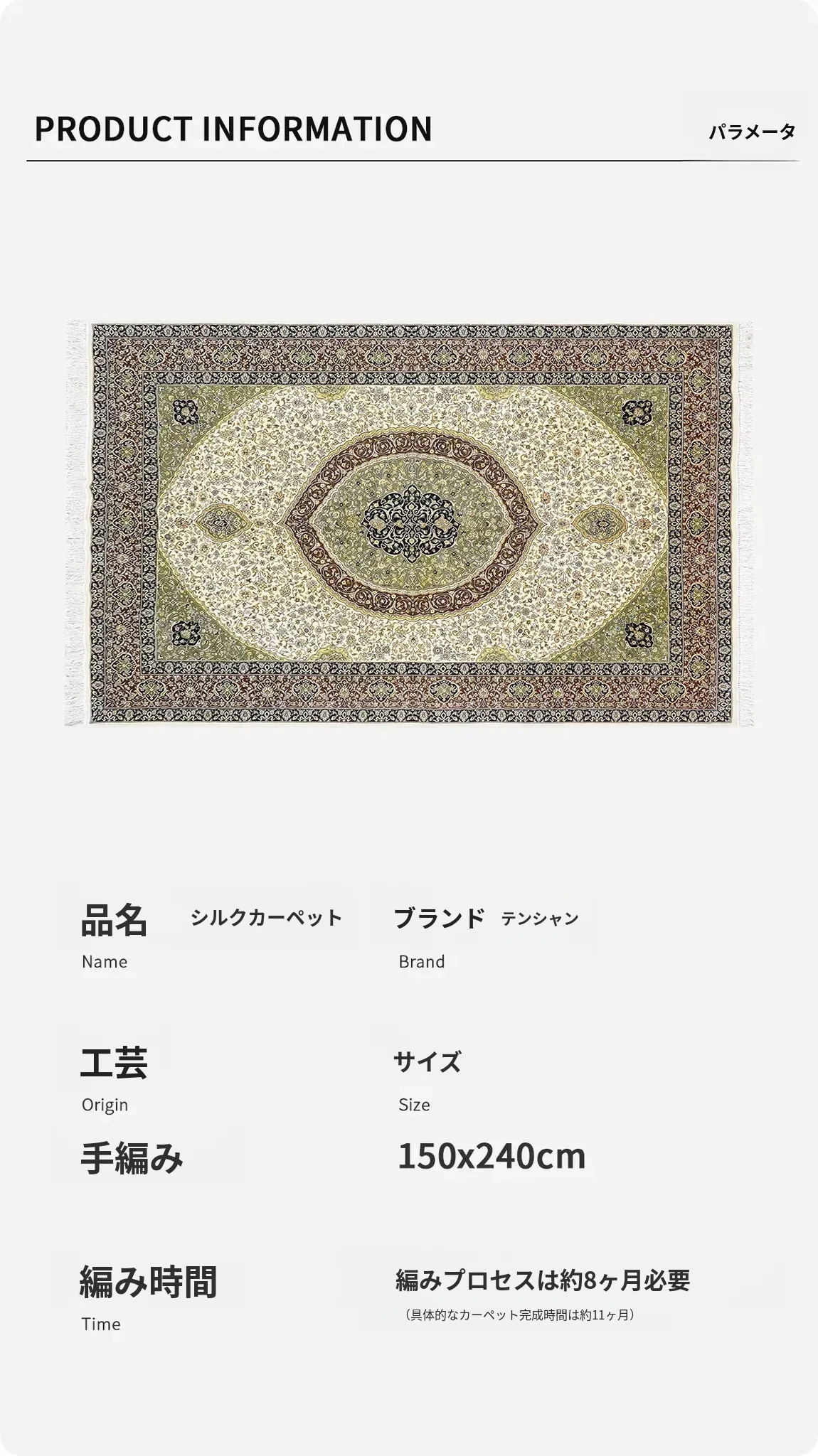 天匠の手作りシルクカーペット - クラシックなペルシャデザインで、別荘やリビング、寝室に最適な150x240cmサイズ!高級感溢れる質感でお部屋を格上げ。あなたの空間に優雅さをプラス!