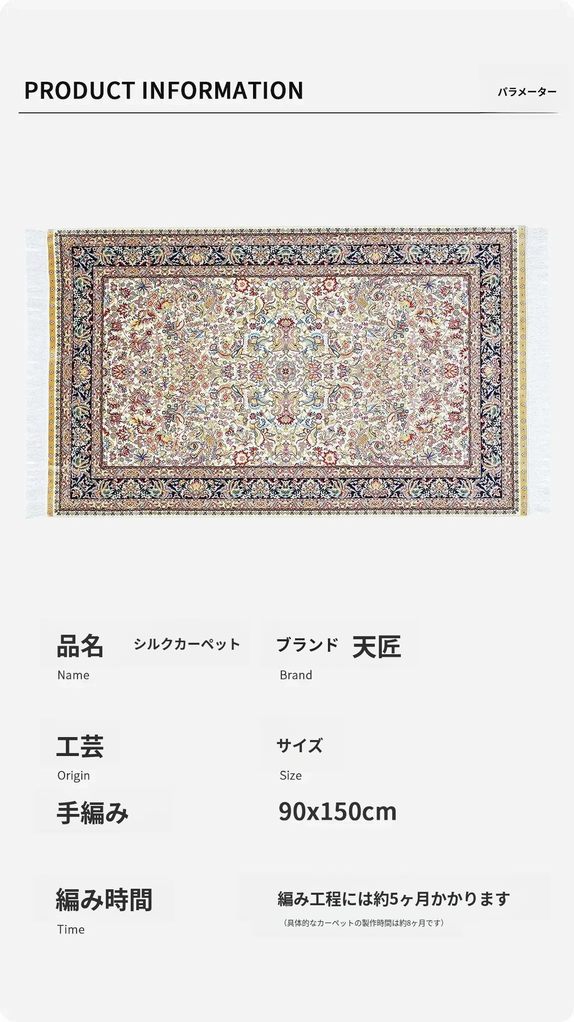 天匠の本物シルクラグ 手作りの高級カーペット 寝室やリビングにぴったりな90x150cmの美しい壁掛けマット