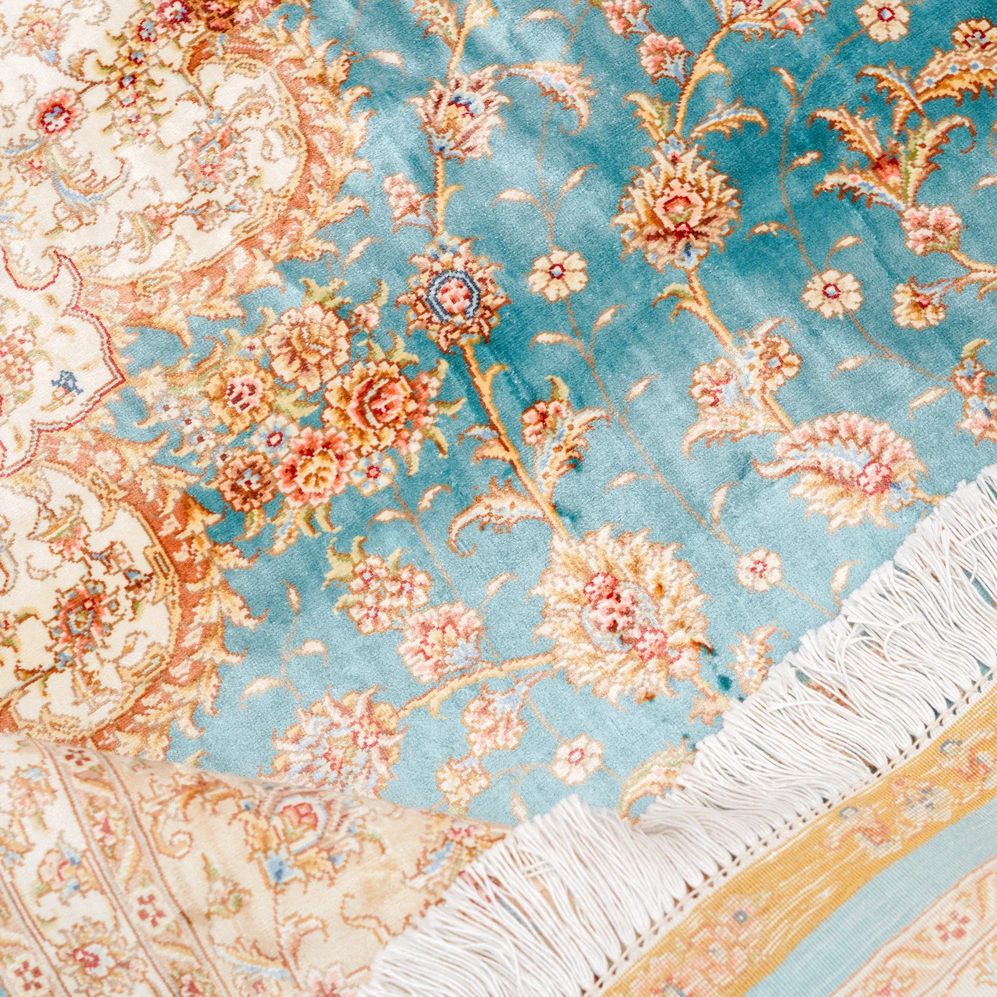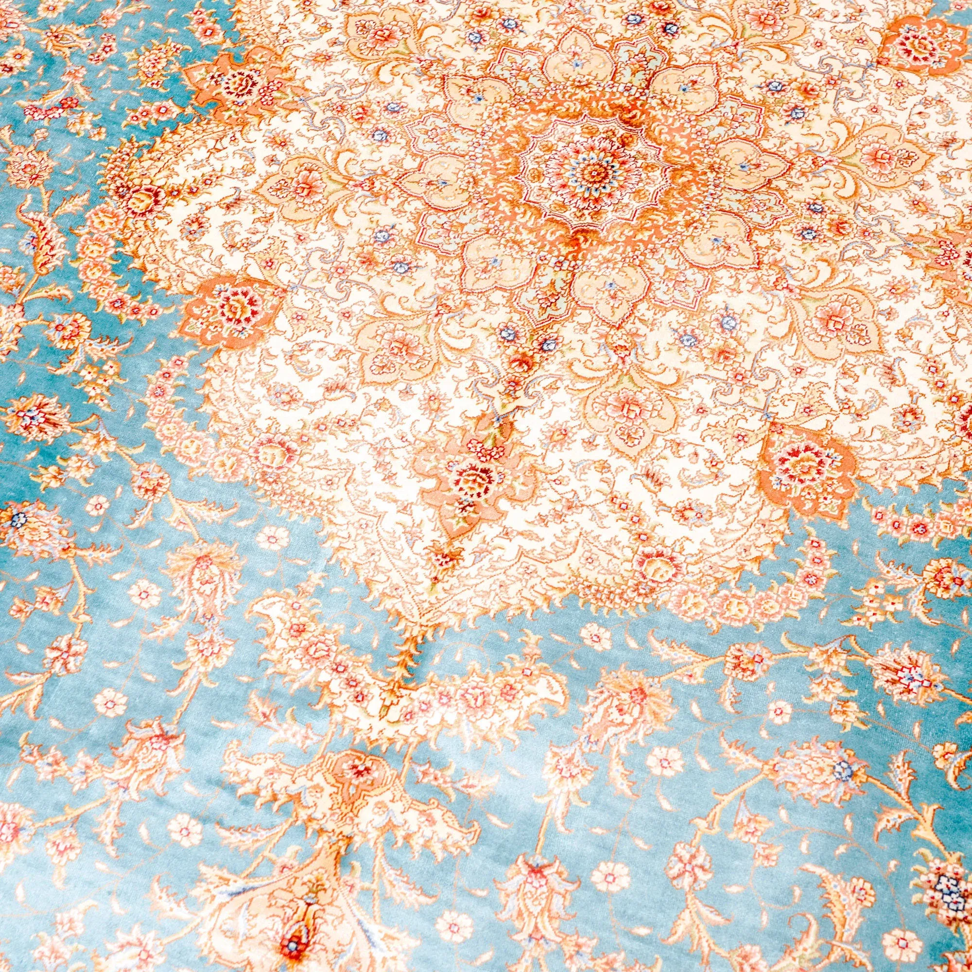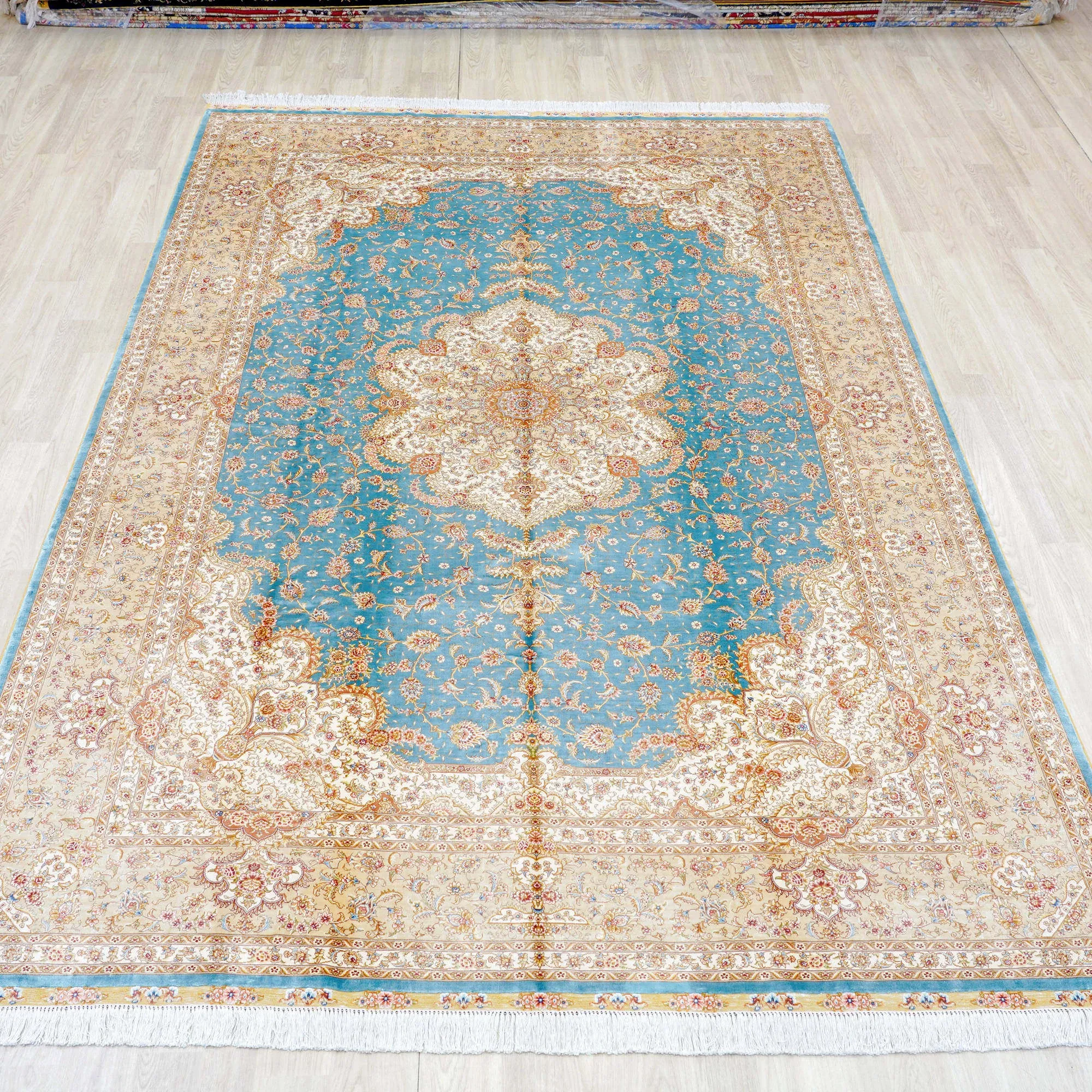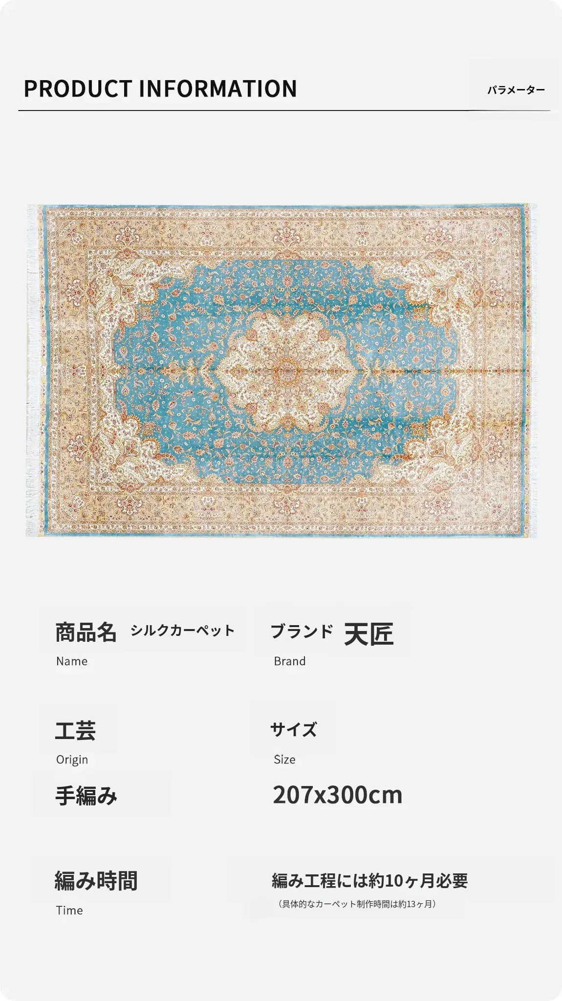 天匠手作の本絹カーペット – 高級感あふれるペルシャ絨毯、リビングルームに最適なサイズ207x300cm、豪華な別荘にもぴったり!