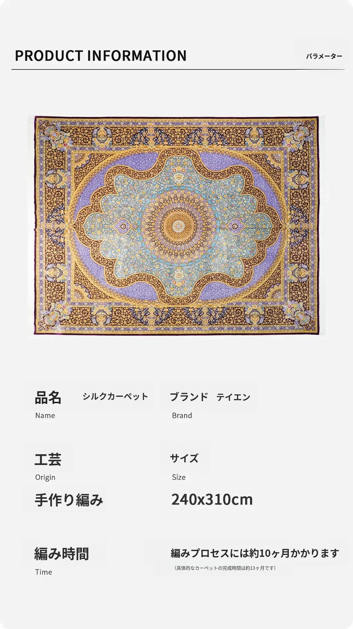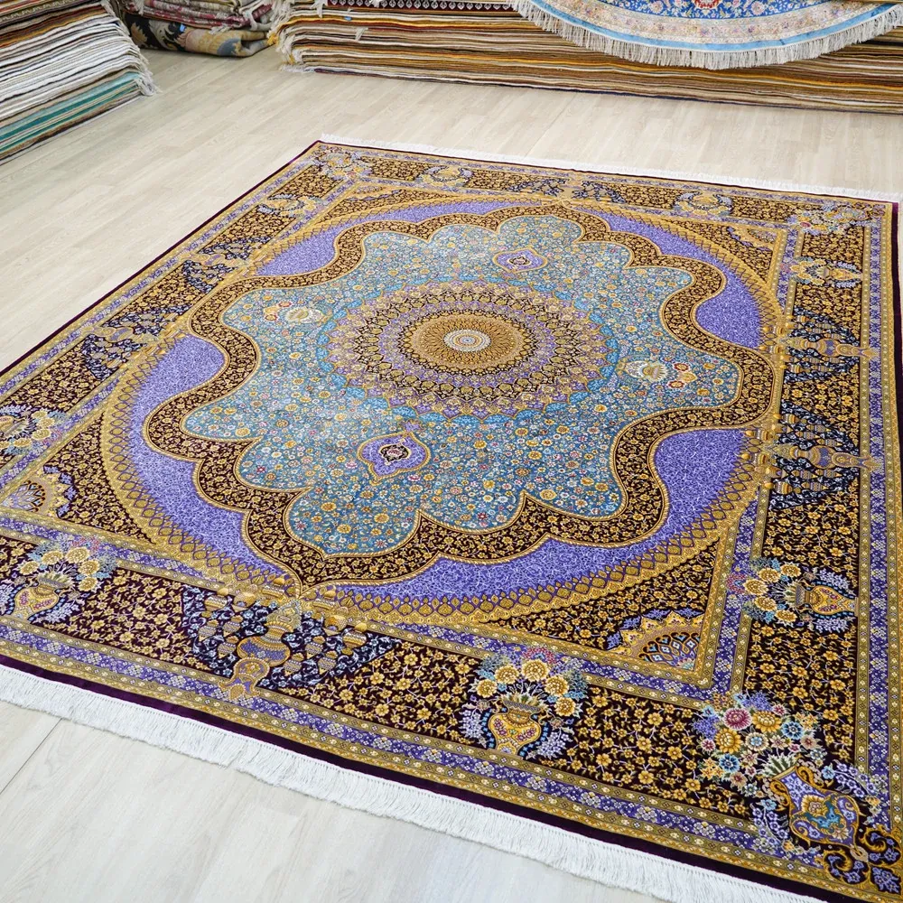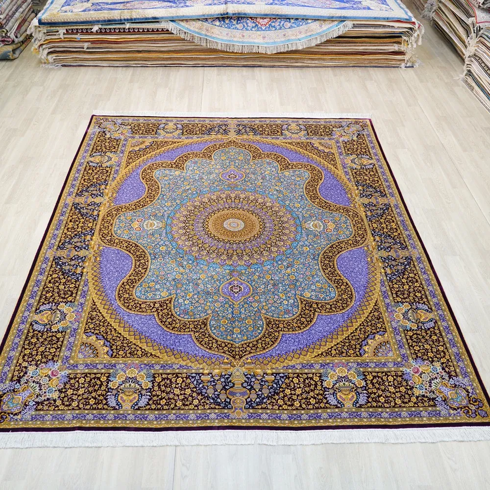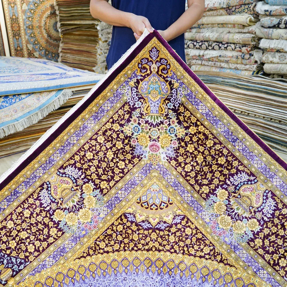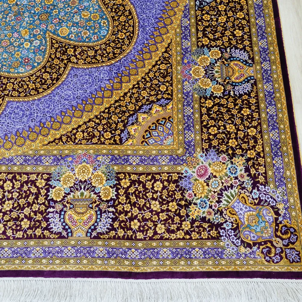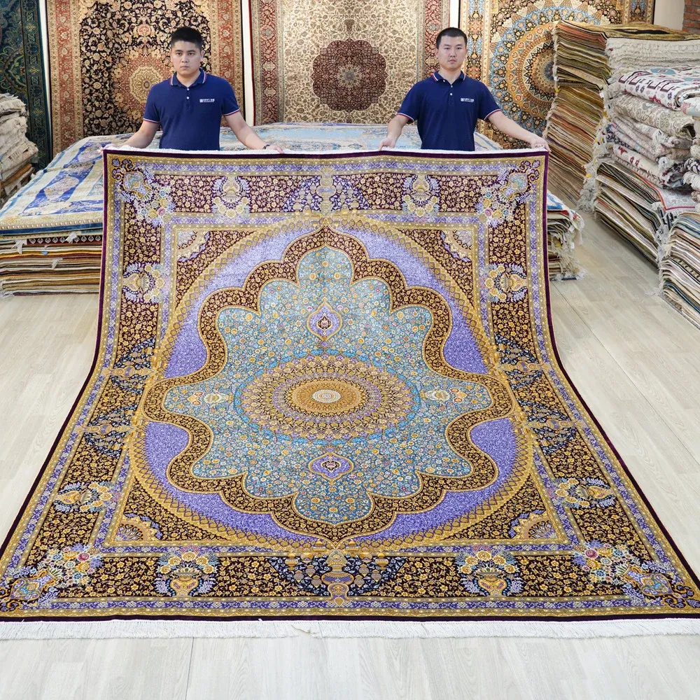 天匠手作本物シルクカーペット 240x310cm - 高級感あふれる絹の温もり、リビングや寝室に最適な手織りカーペット。優雅なデザインで、あなたの空間を格上げします!