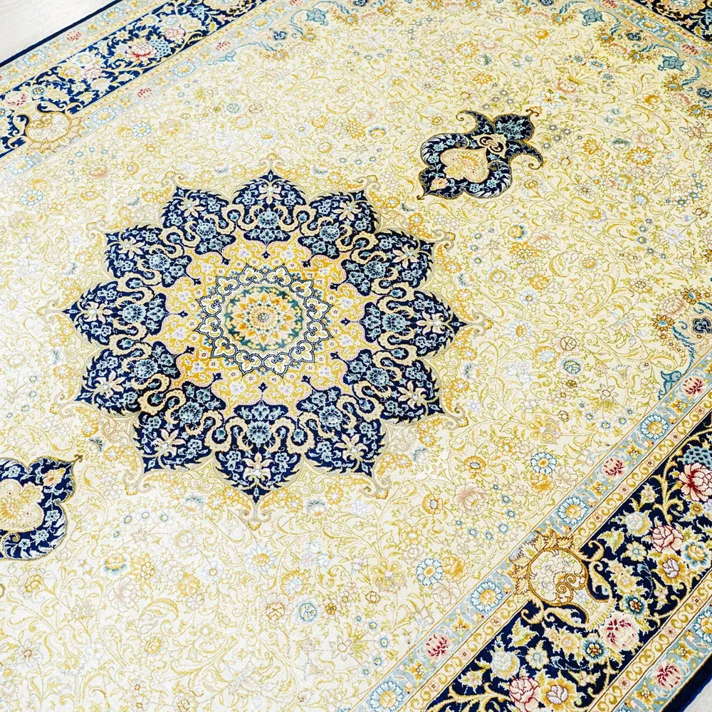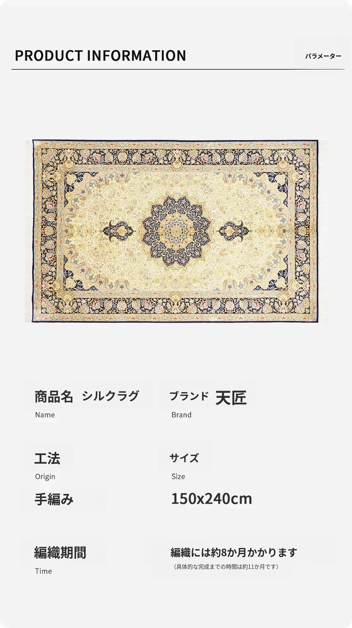 天匠の手作りシルクカーペット - アメリカンスタイルの高級ヴィラにぴったり!リビングや寝室に最適なサイズ150x240cm。優雅さと贅沢さを兼ね備えた一品で、あなたの空間を華やかに彩ります。