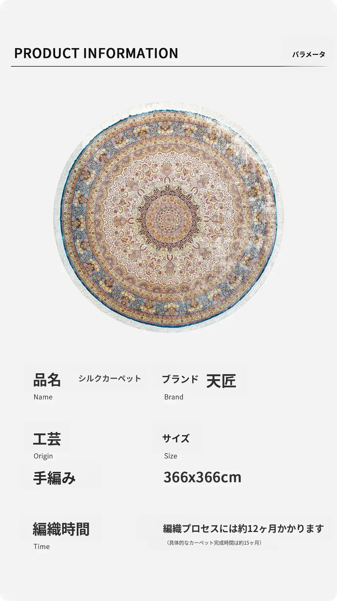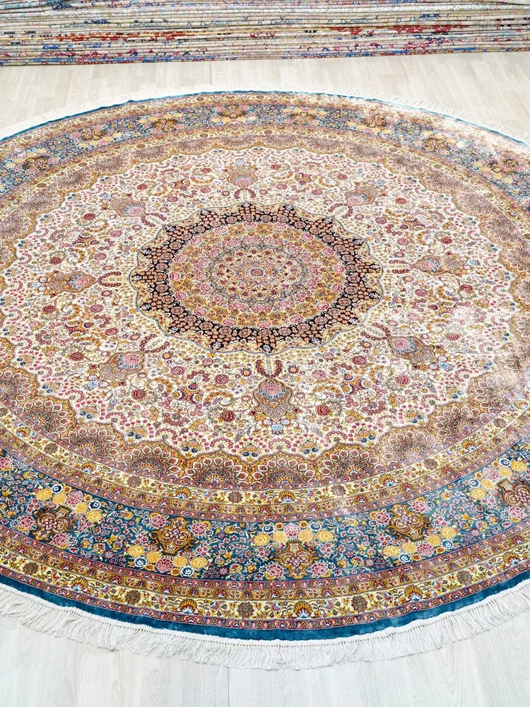天匠手作シルクラグ - ヴィラのリビングやダイニングに最適!贅沢でお手入れ簡単、366x366cmのユニークなデザイン。あなたの空間に特別な魅力を加えます。
