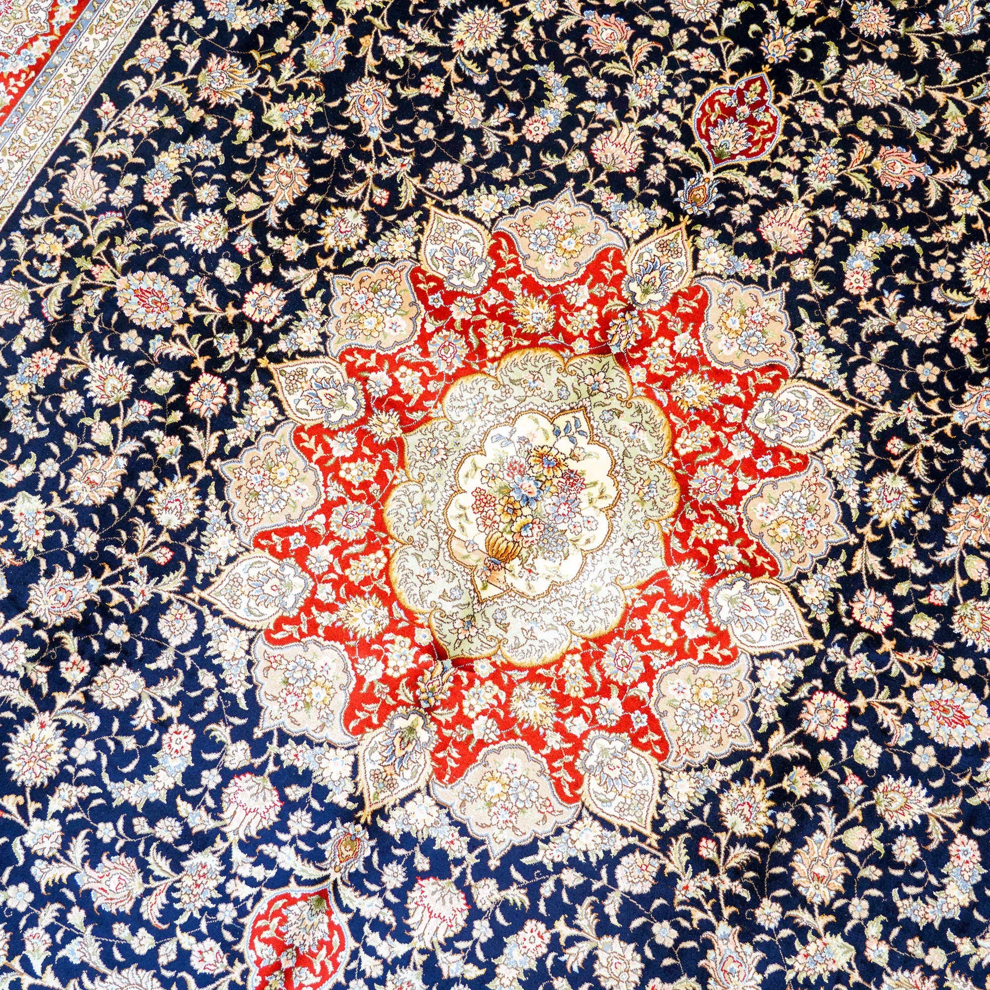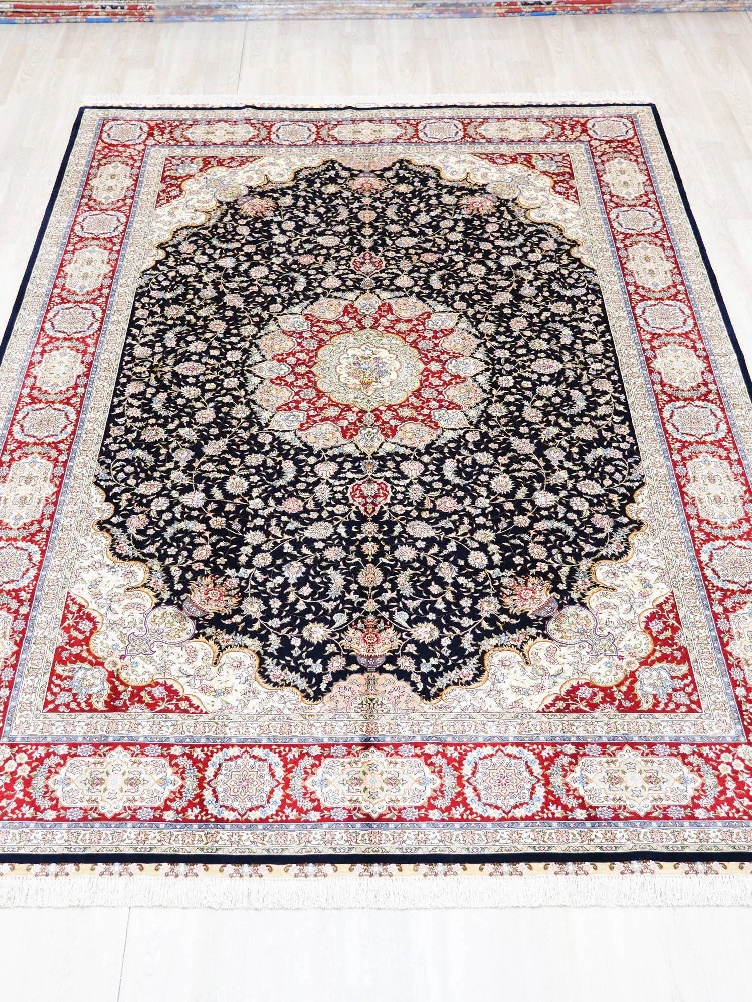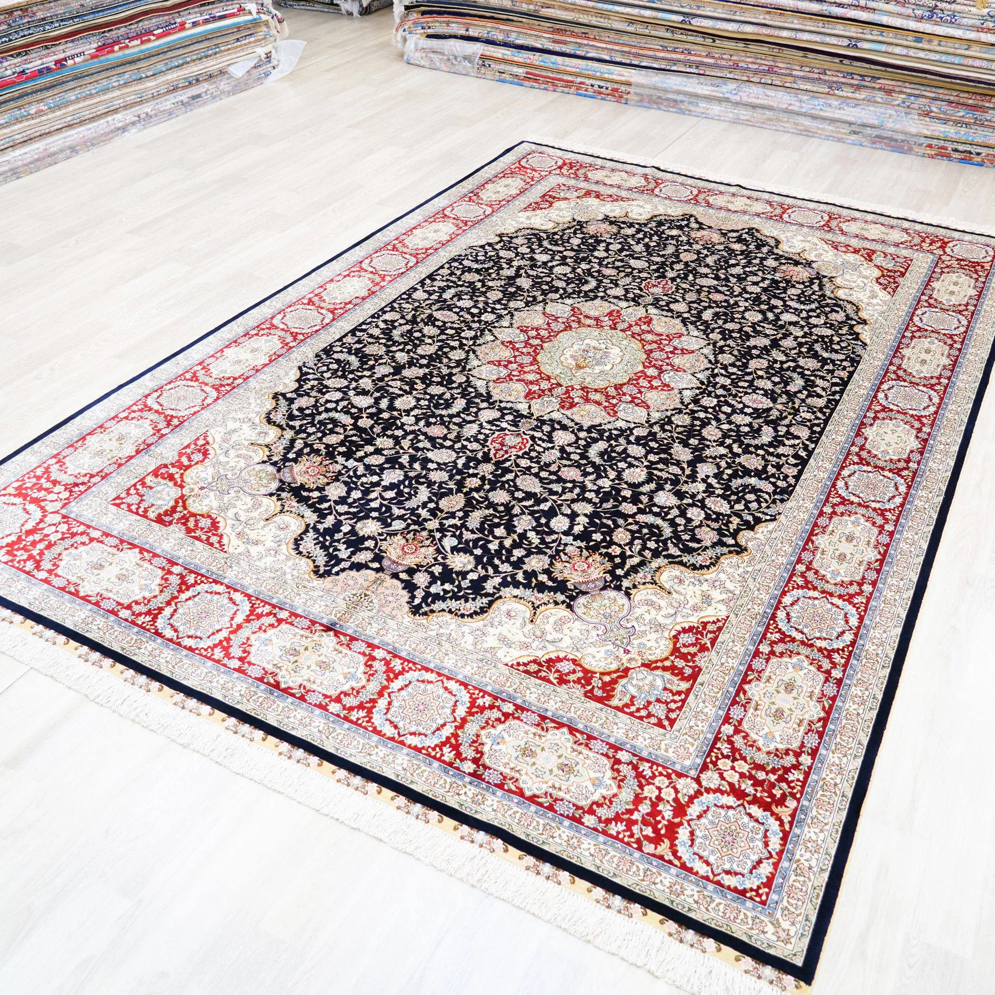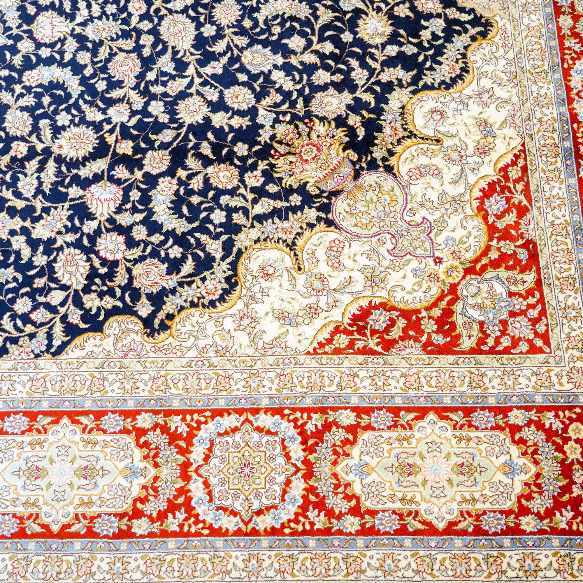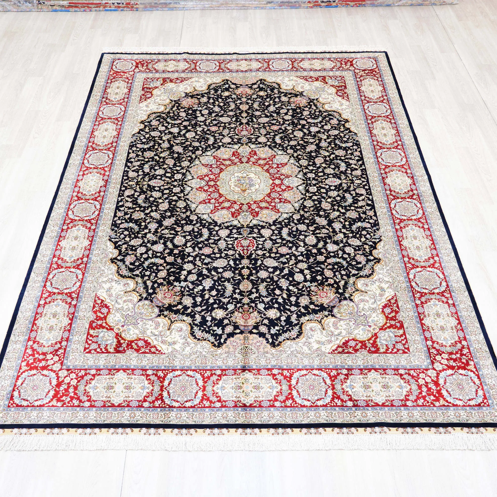 職人の手作り本真絲カーペット - ヴィラのリビングルームや寝室にぴったり!美しい青色のベッドサイドマット、210x300cmの贅沢なサイズで、空間を一層引き立てます。心地よい肌触りと高級感をお楽しみください!