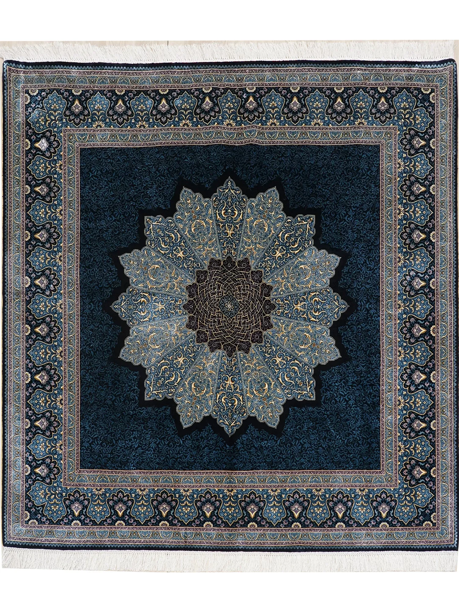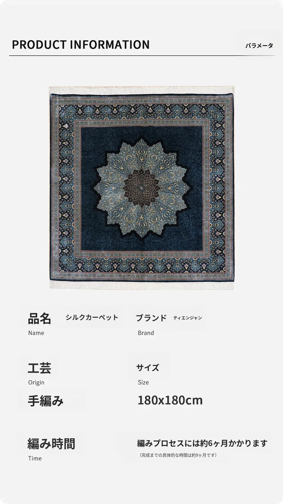 天匠手作の本真 silk ラグ - 高級感あふれる180x180cmの方形無接着カーペット、寝室や書斎に最適!あなたの空間を美しく彩ります。