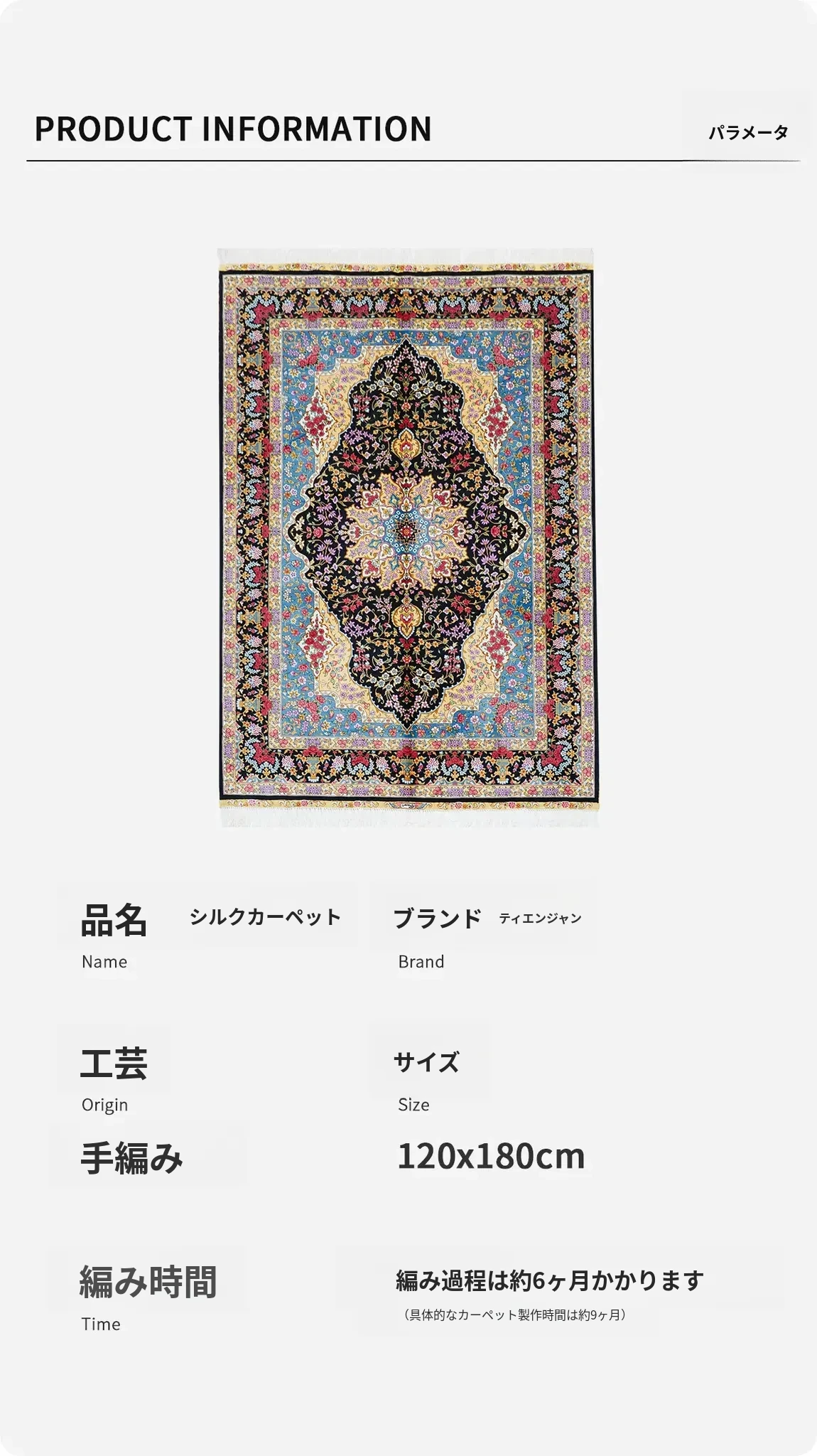 天匠製ハンドメイドシルクラグ - ペルシャスタイルのヴィラ用、家庭用寝室に最適!無添加・無臭の安心素材、120x180cmのサイズで心地よい空間を演出します。