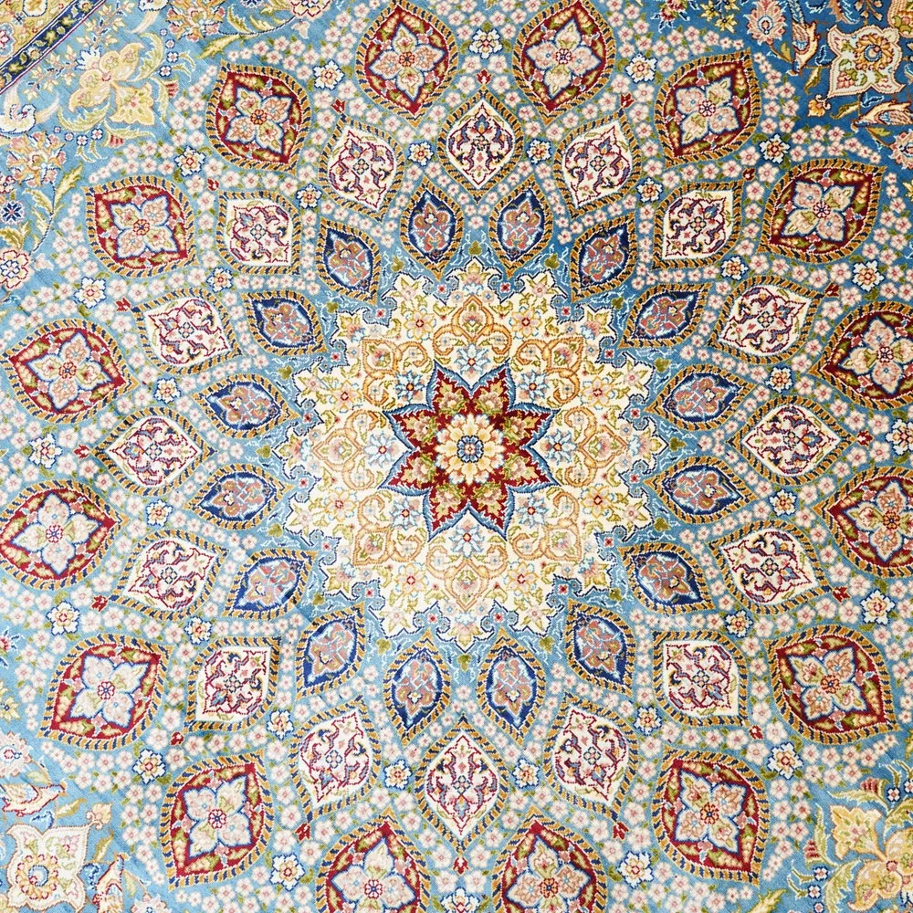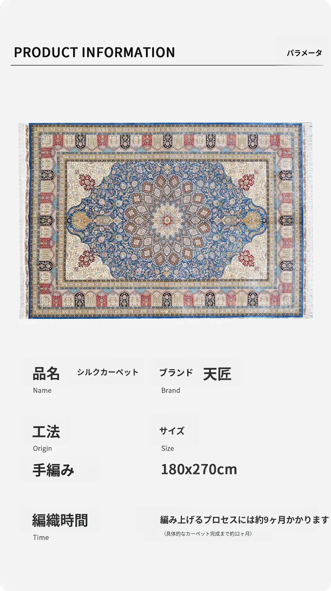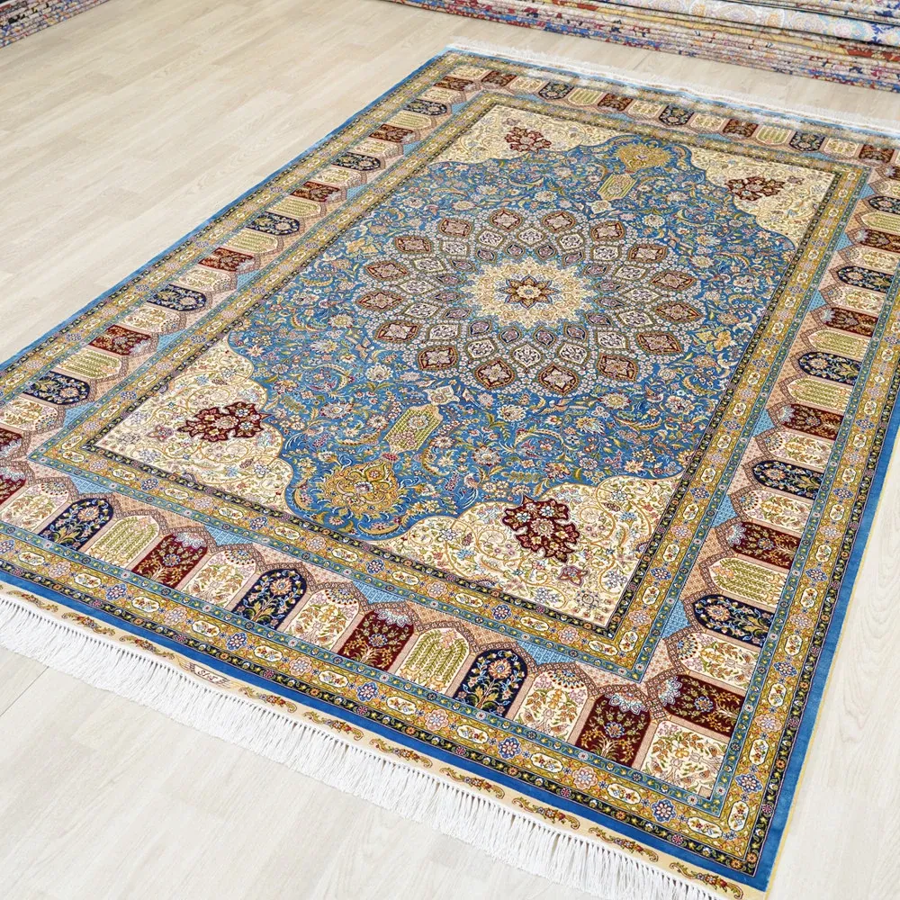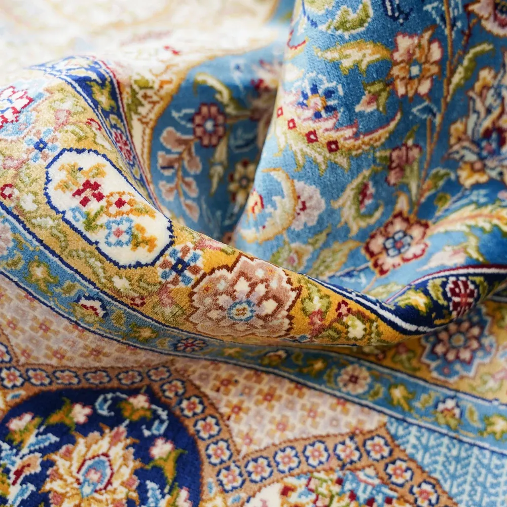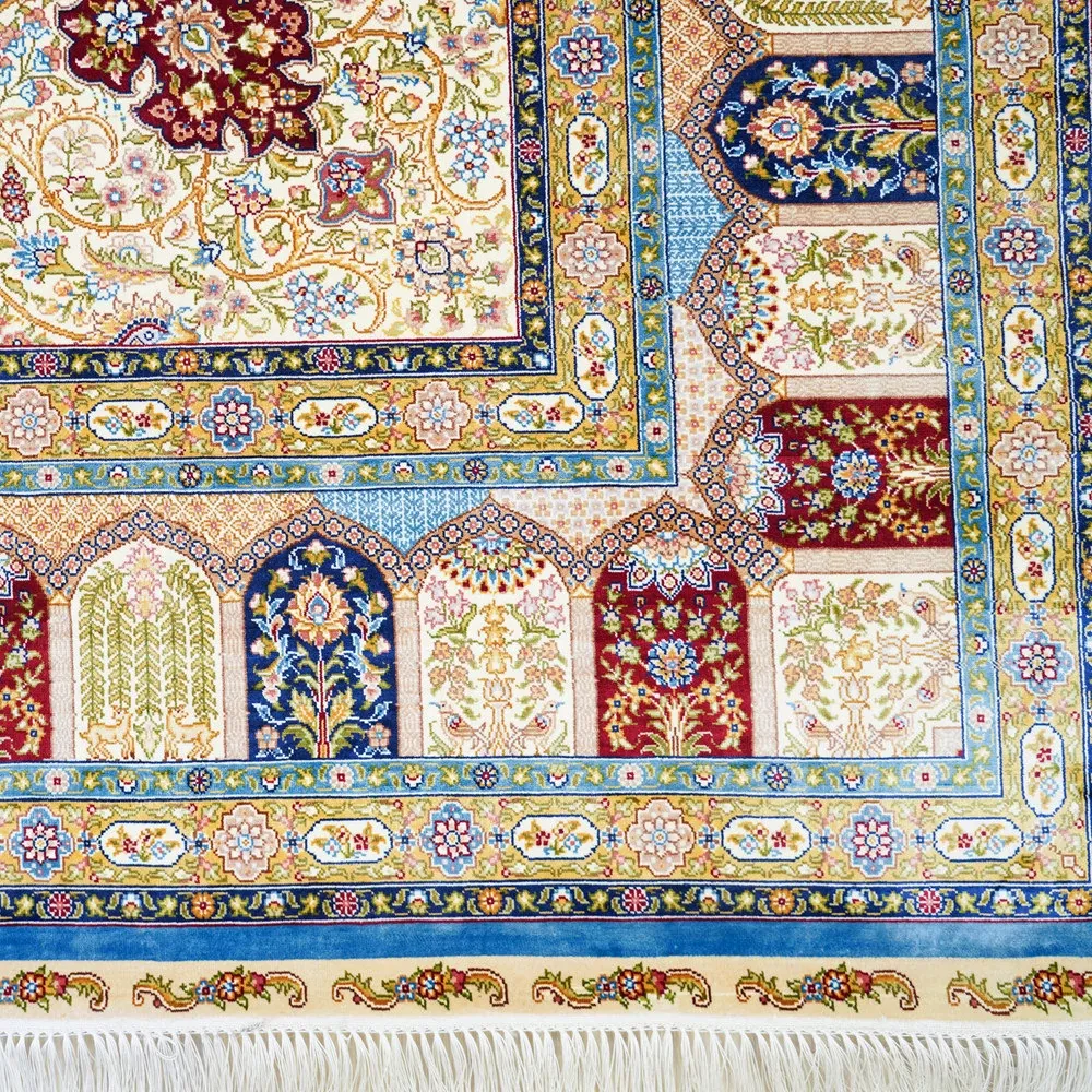 天匠手作シルクカーペット - トルコ輸出、ヴィラに最適なアメリカン&ヨーロピアンスタイル。サイズ180x270cmで、上質な手触りと美しいデザインが魅力!