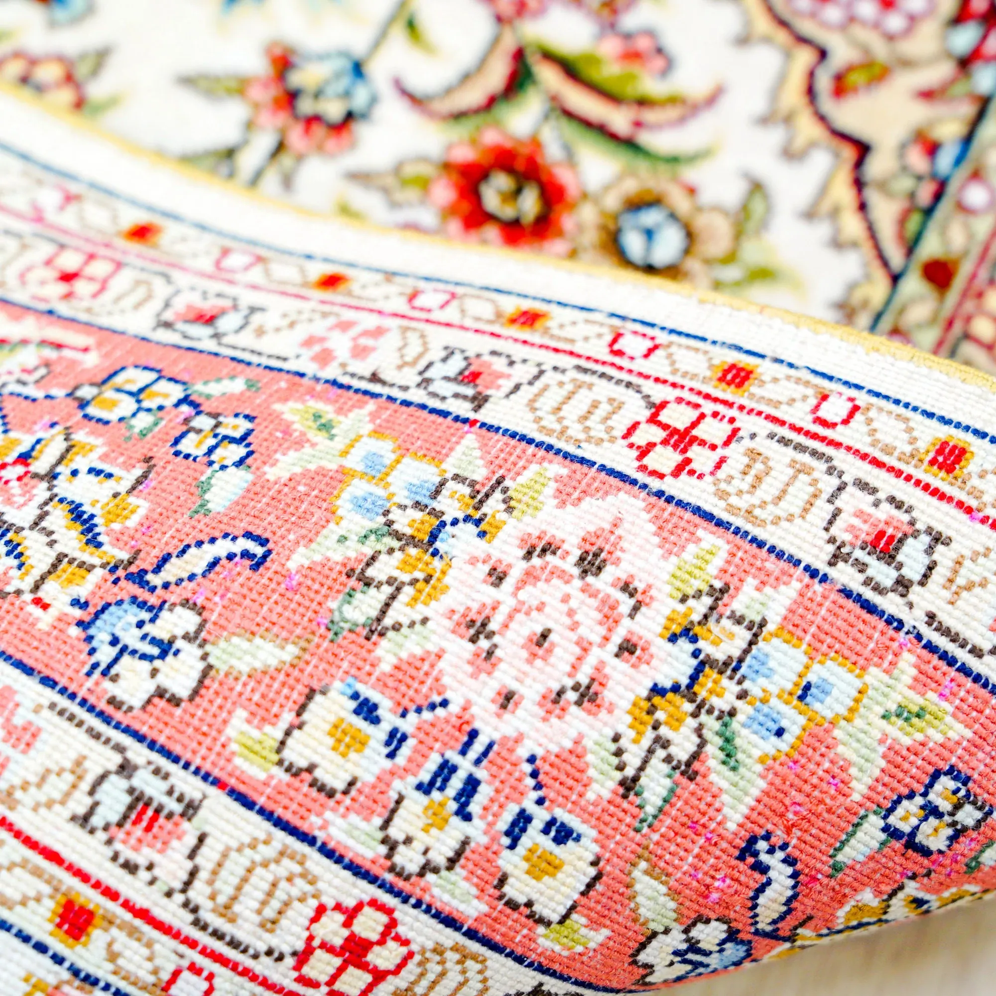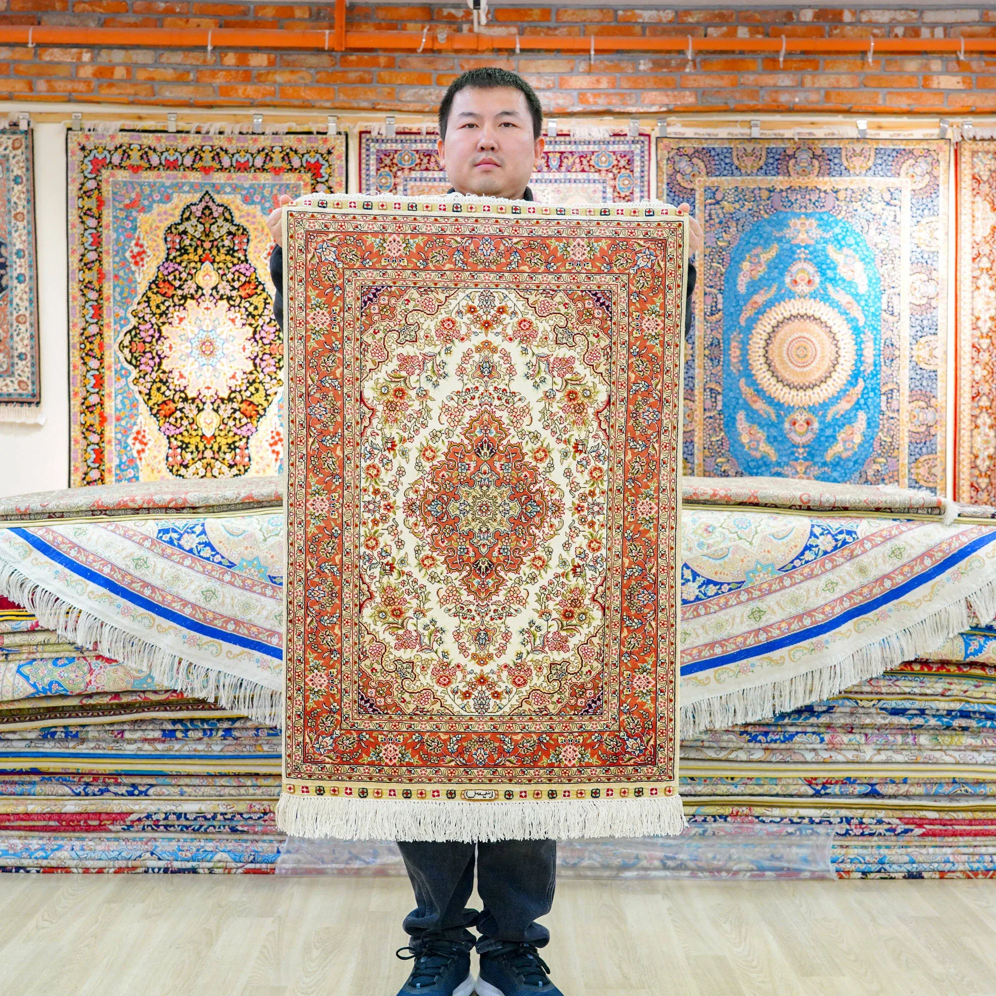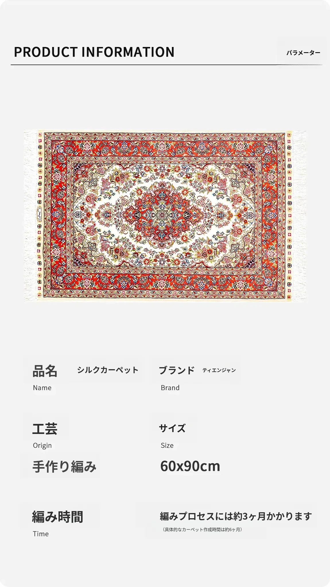 天匠手作の本物のシルクカーペット - 高級ヴィラにぴったりのピンク色タペストリー!どんなインテリアにもマッチする、60x90cmの使いやすいサイズ。あなたの家に優雅さと温かみをプラス!