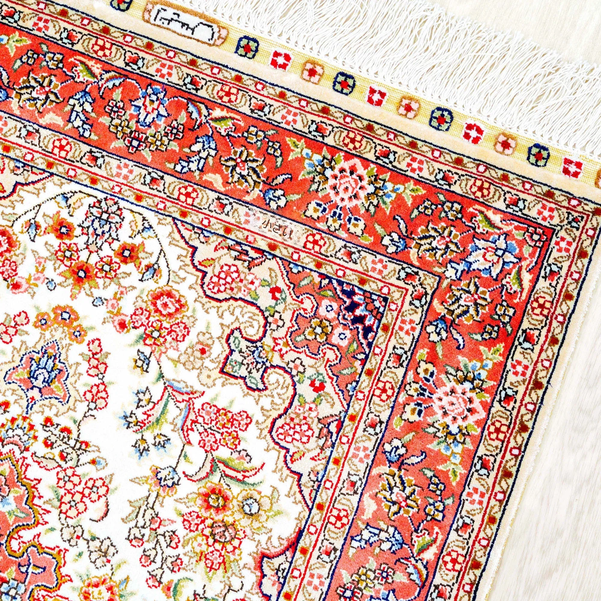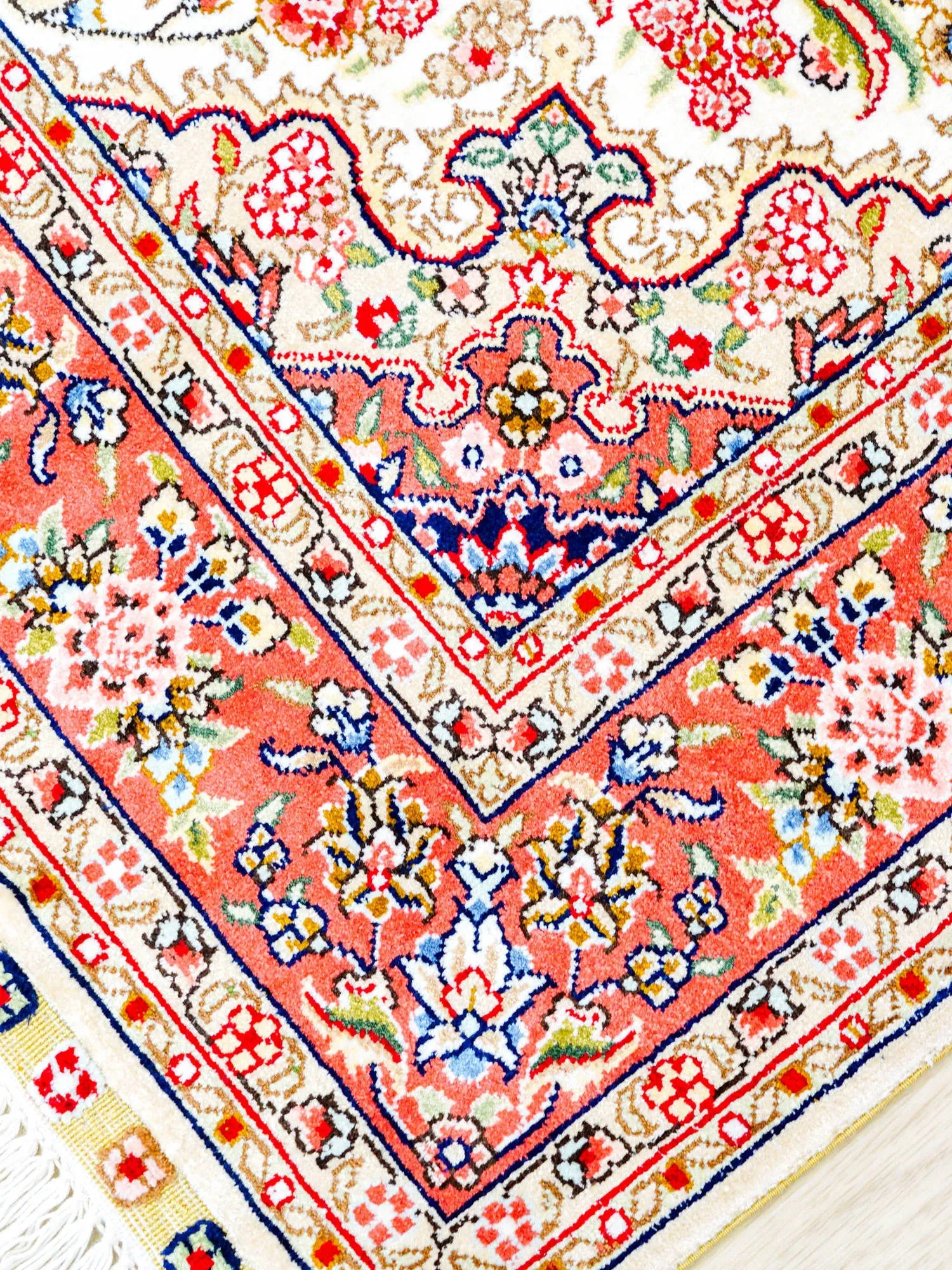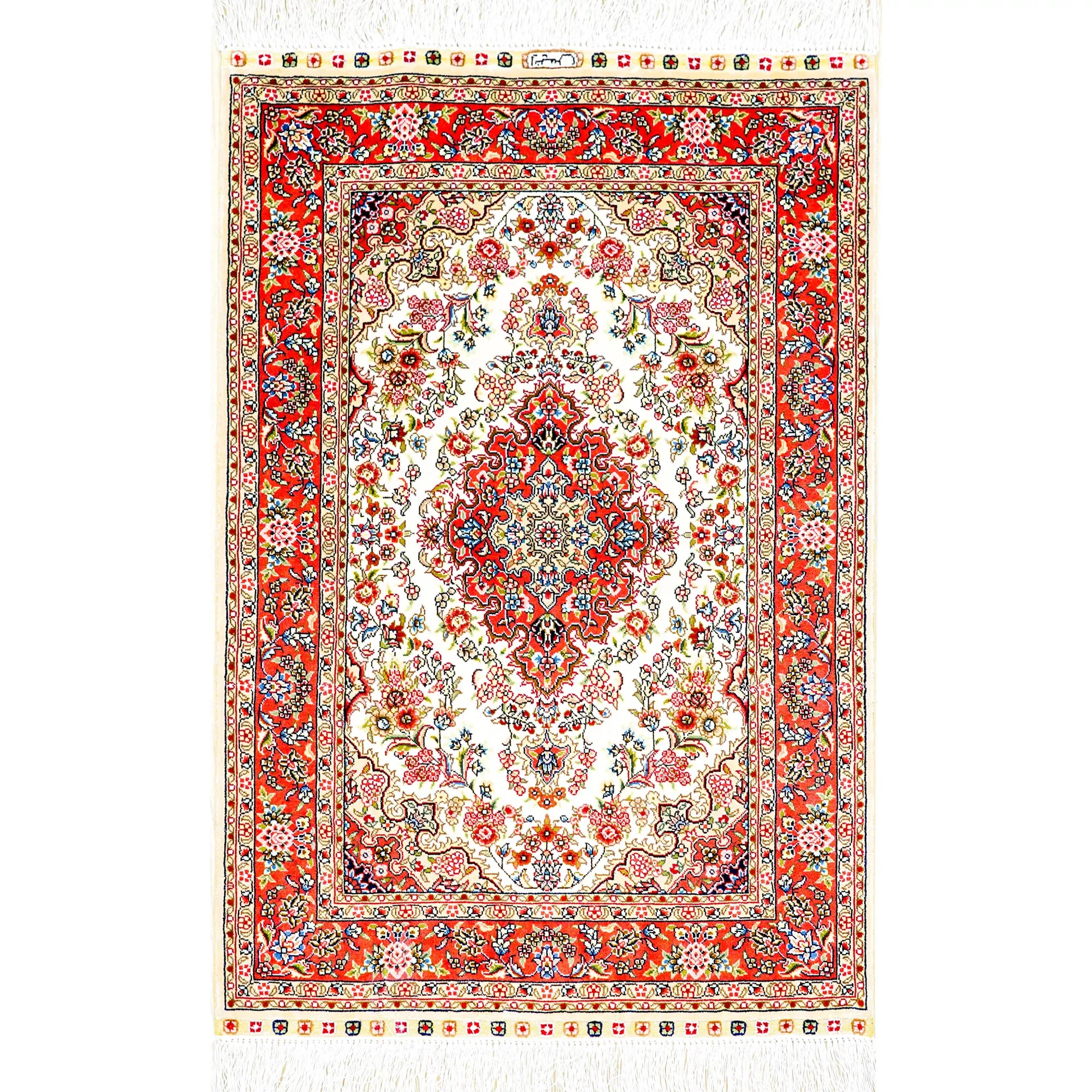 天匠手作の本物のシルクカーペット - 高級ヴィラにぴったりのピンク色タペストリー!どんなインテリアにもマッチする、60x90cmの使いやすいサイズ。あなたの家に優雅さと温かみをプラス!