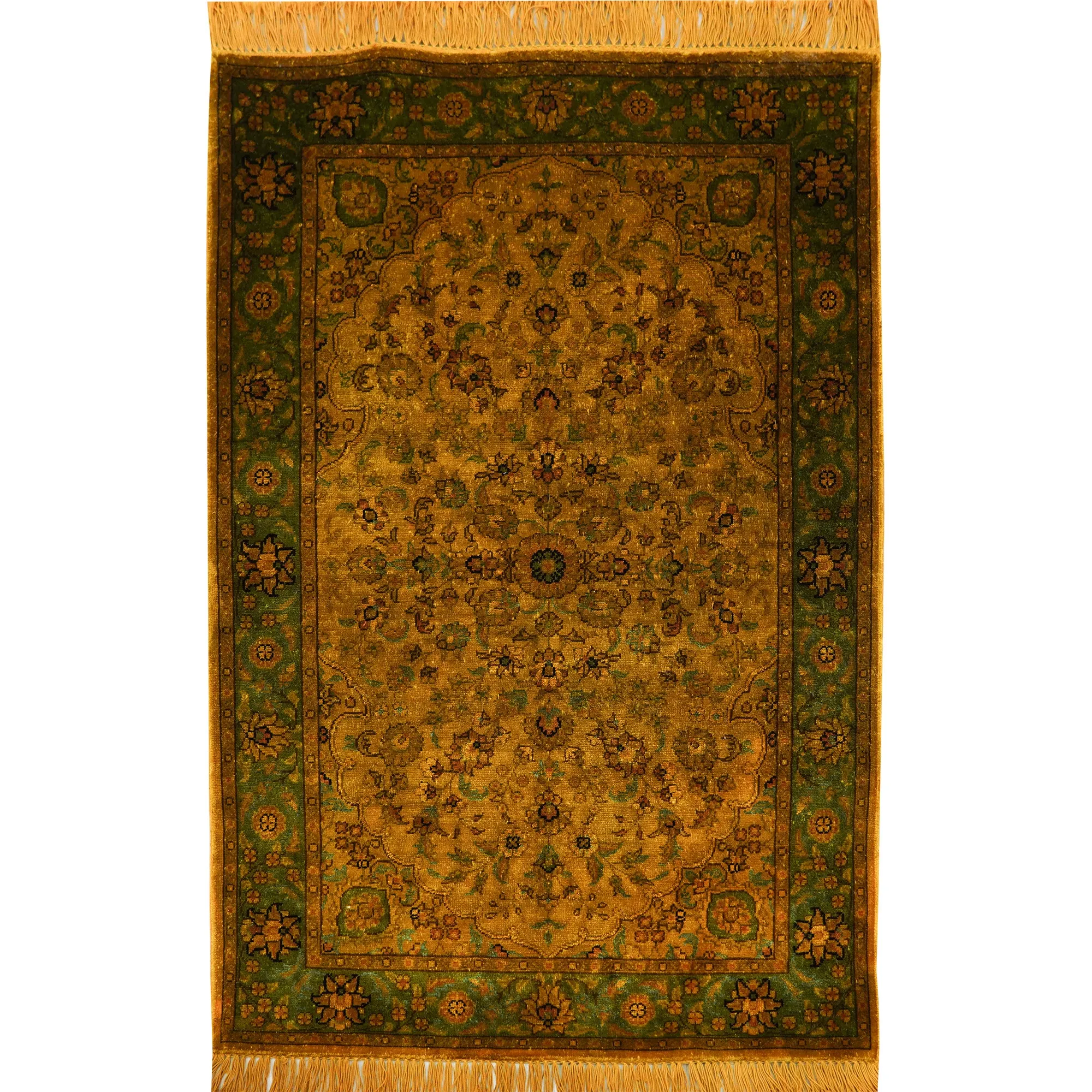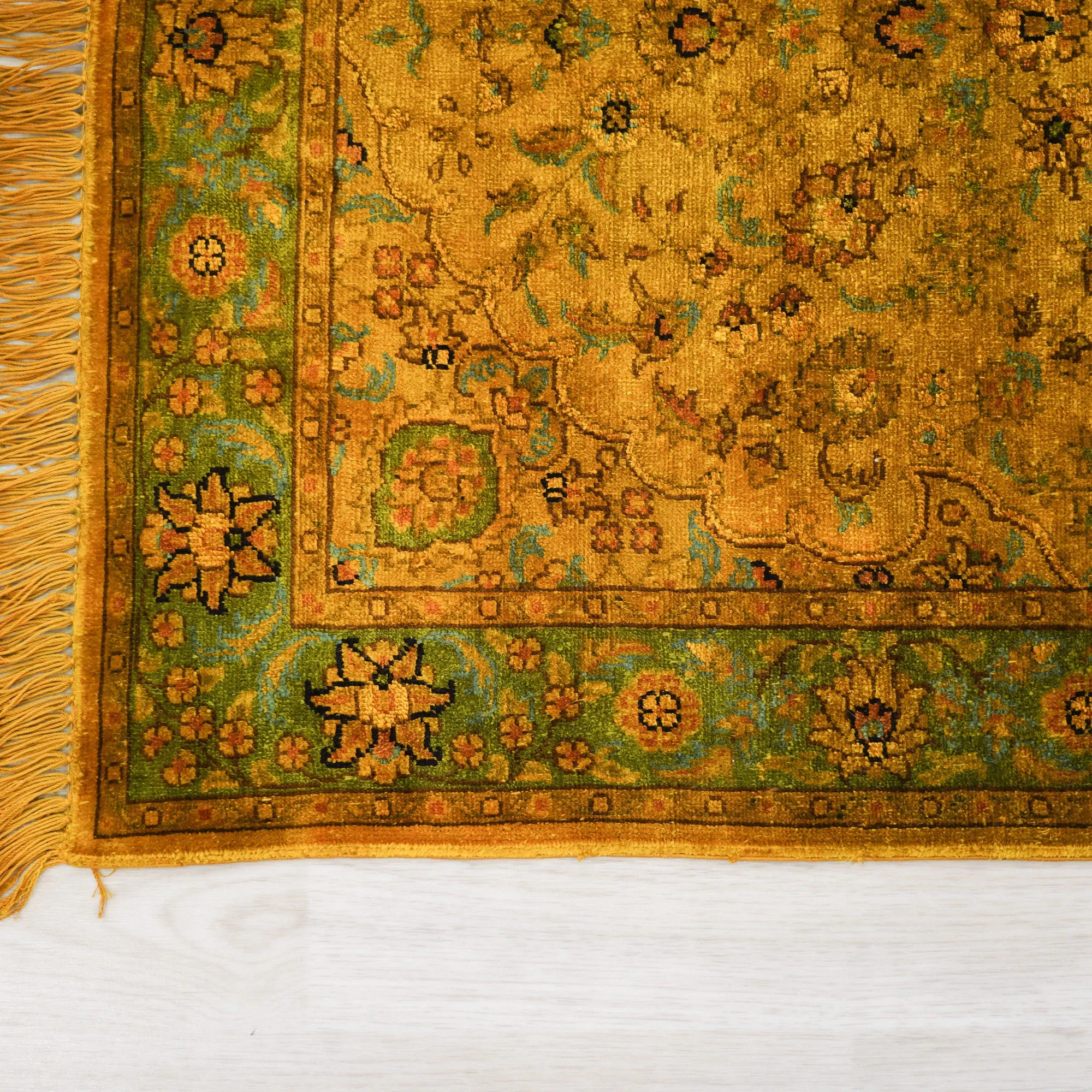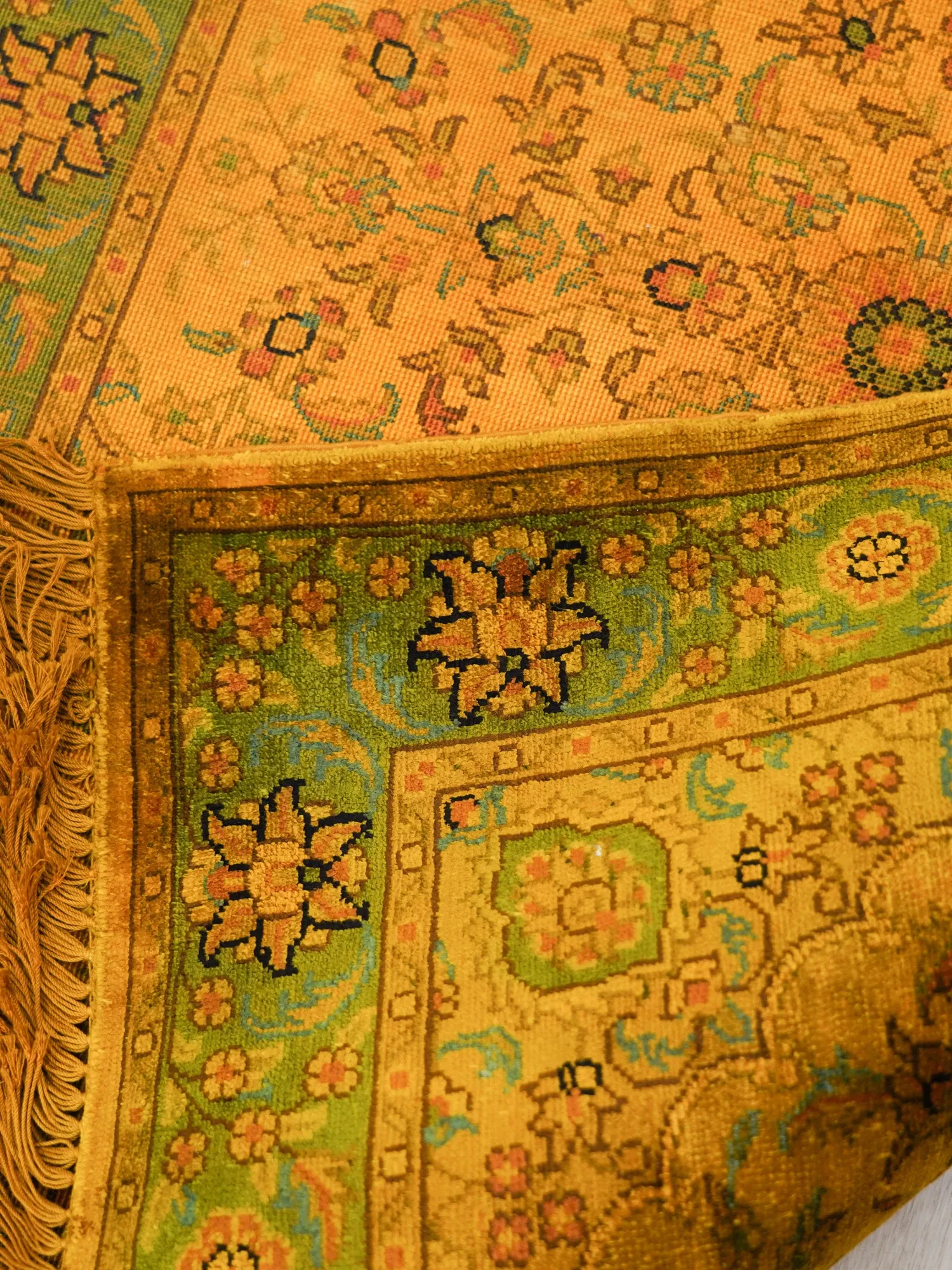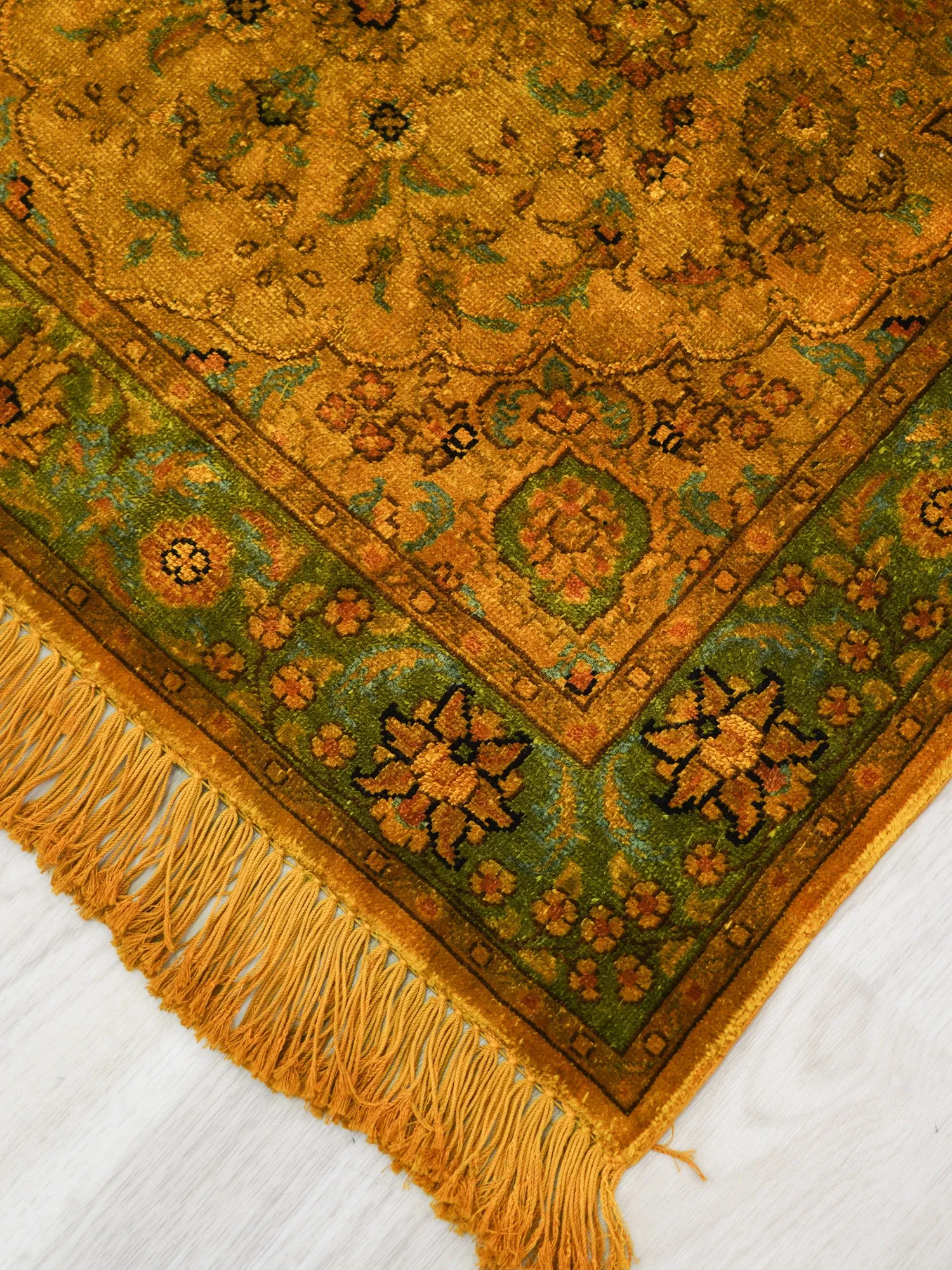 天匠手作の本物シルク製ペルシャカーペット - リビングや書斎にぴったり!贅沢な60x90cmサイズで、インテリアを華やかに演出します。お家に温かみと高級感をプラス!