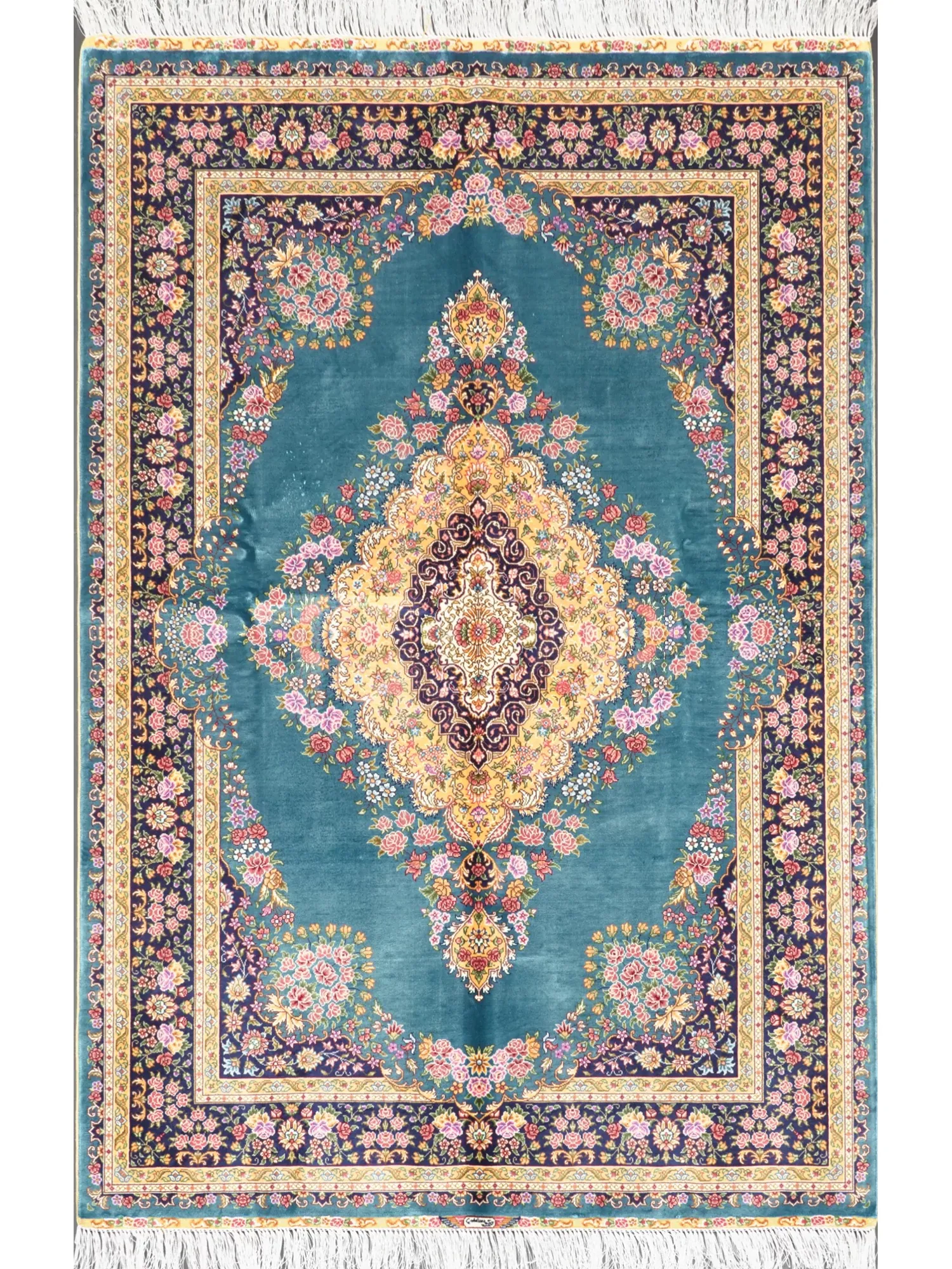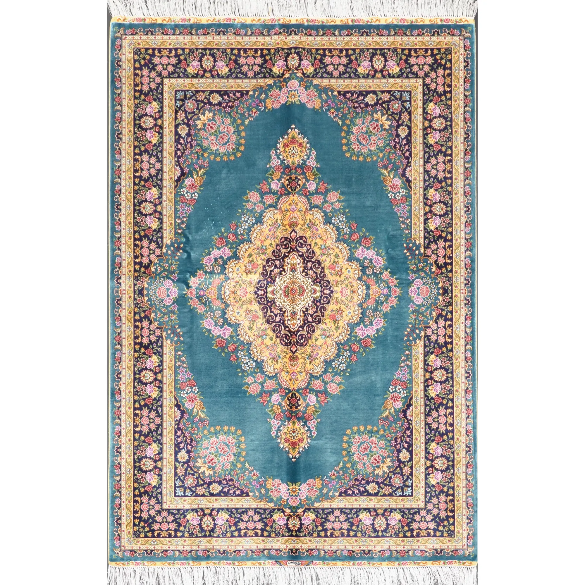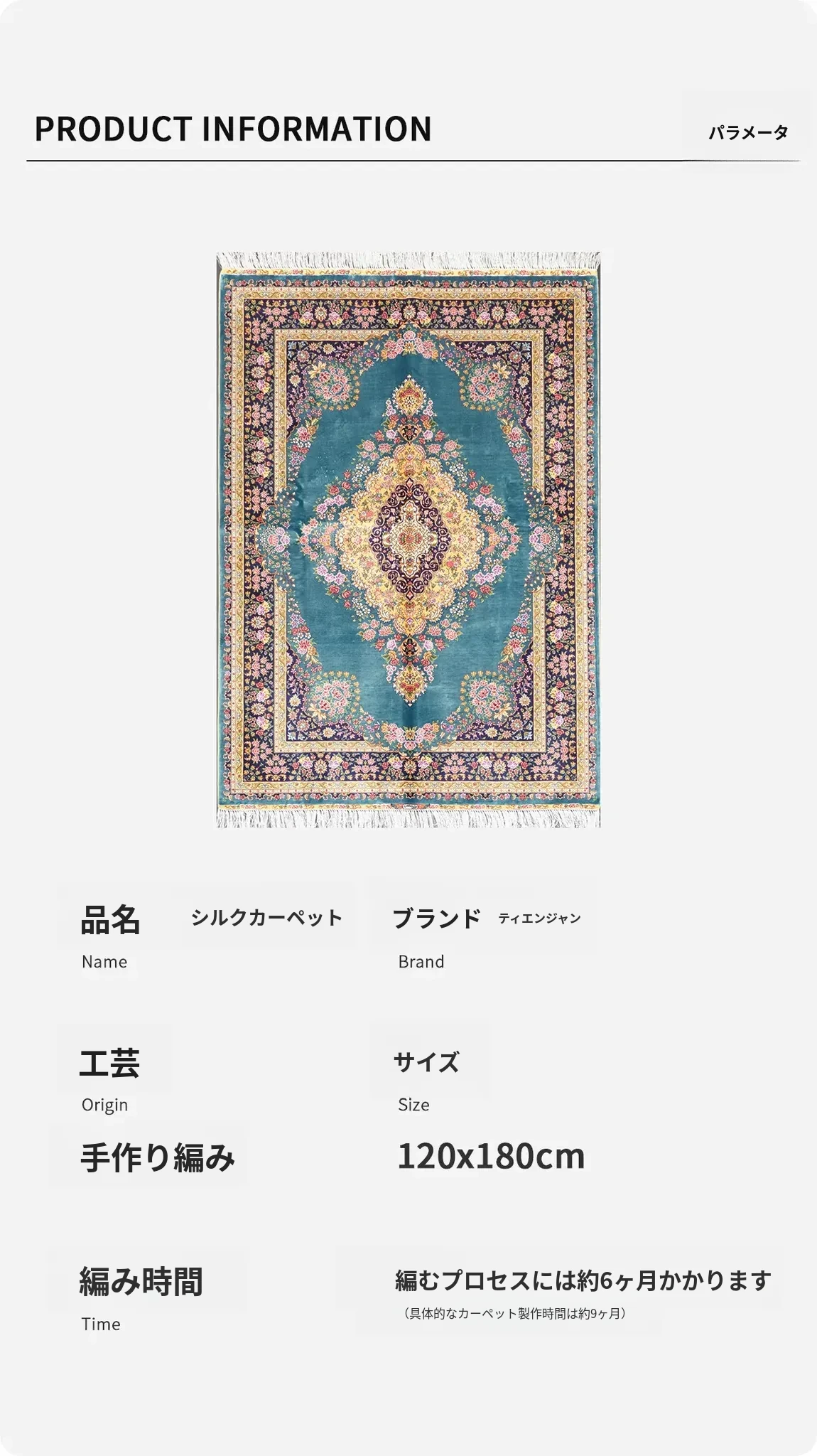 天匠手作シルクカーペット、ペルシャデザインの高級マット。アメリカンスタイルの寝室にぴったり、120x180cmの贅沢なサイズで、心地よい空間を演出します。
