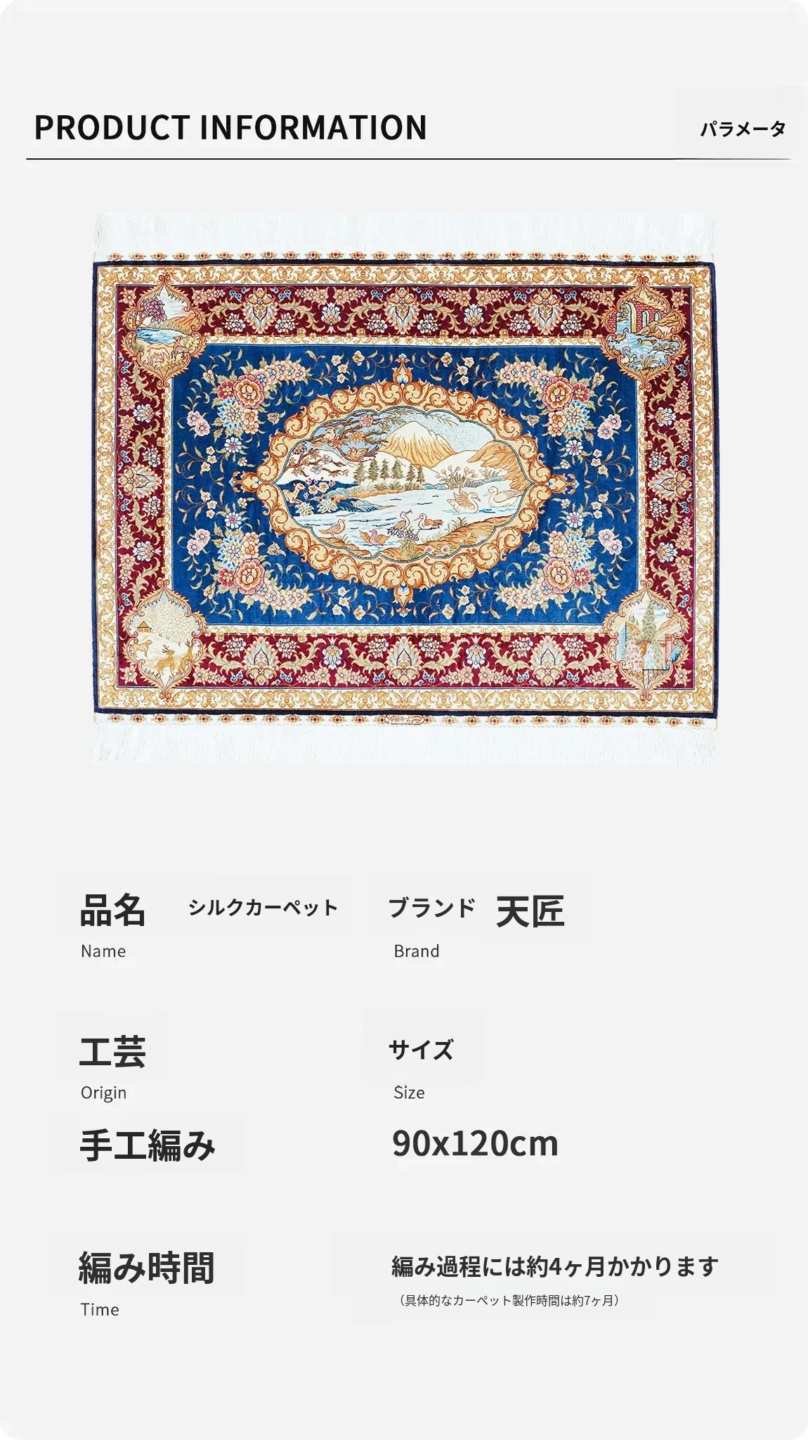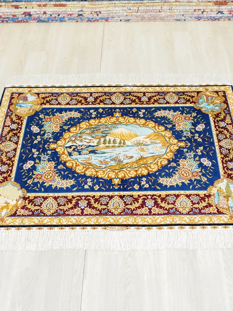 天匠手作シルクカーペット - 高級感溢れるペルシャ絨毯、豪華なリビングや寝室に最適!サイズ90x122cmで、あなたの家を優雅に彩ります。