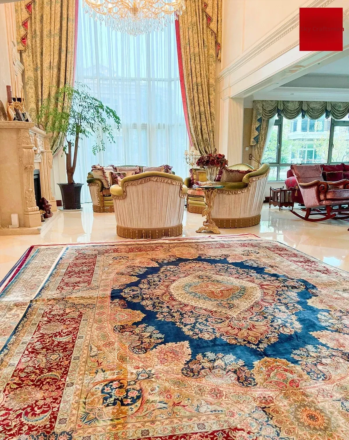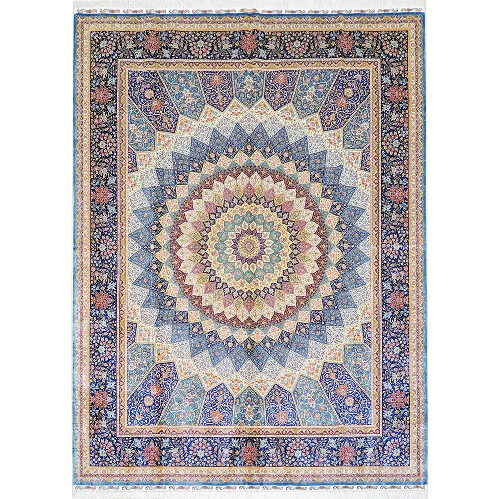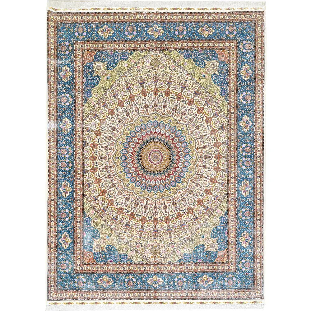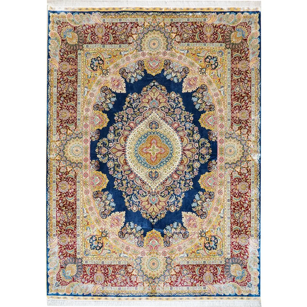 Heavenly Artisan Persian Handcrafted Silk Carpet – Luxurious American Turkish Rug for Villas, Perfect for Living Rooms with Elegant French Touch