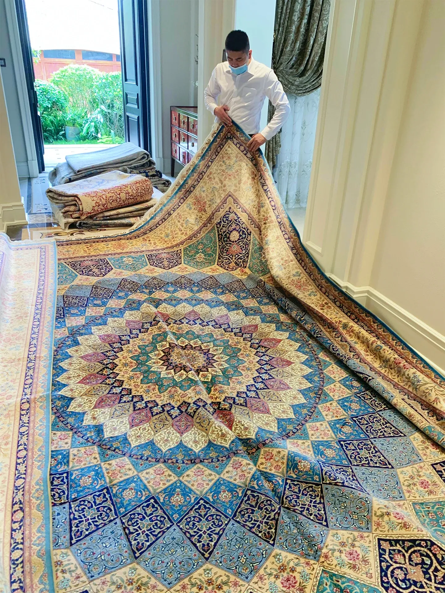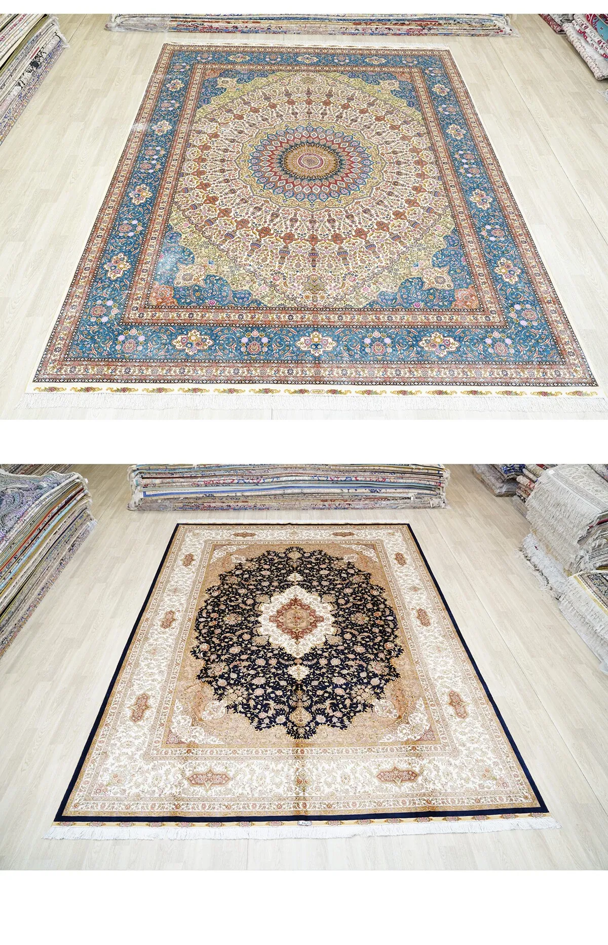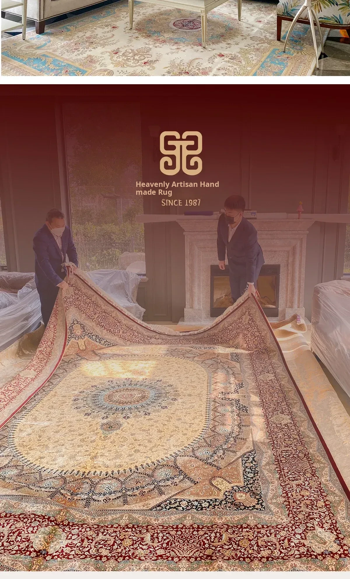Heavenly Artisan Persian Handcrafted Silk Carpet – Luxurious American Turkish Rug for Villas, Perfect for Living Rooms with Elegant French Touch