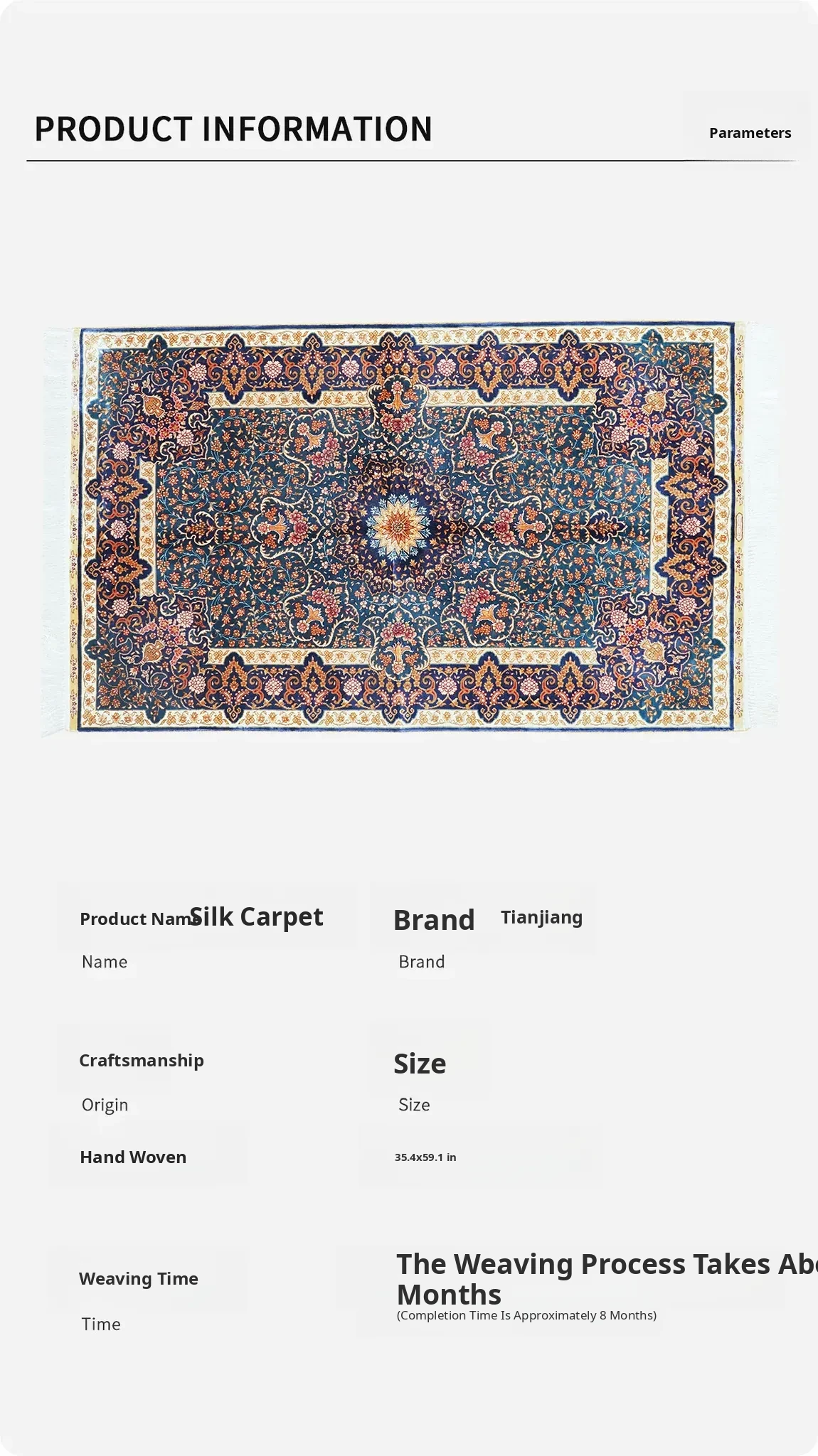 Heavenly Artisan Silk Carpet - Luxurious European & American Style Area Rug for Villa Living Rooms & Bedrooms, Non-Adhesive, 90x150cm