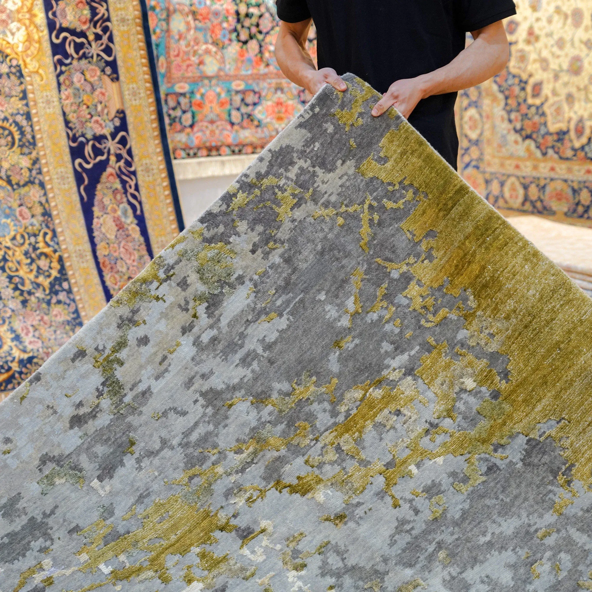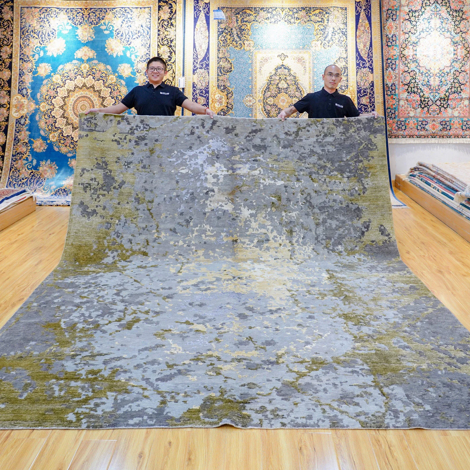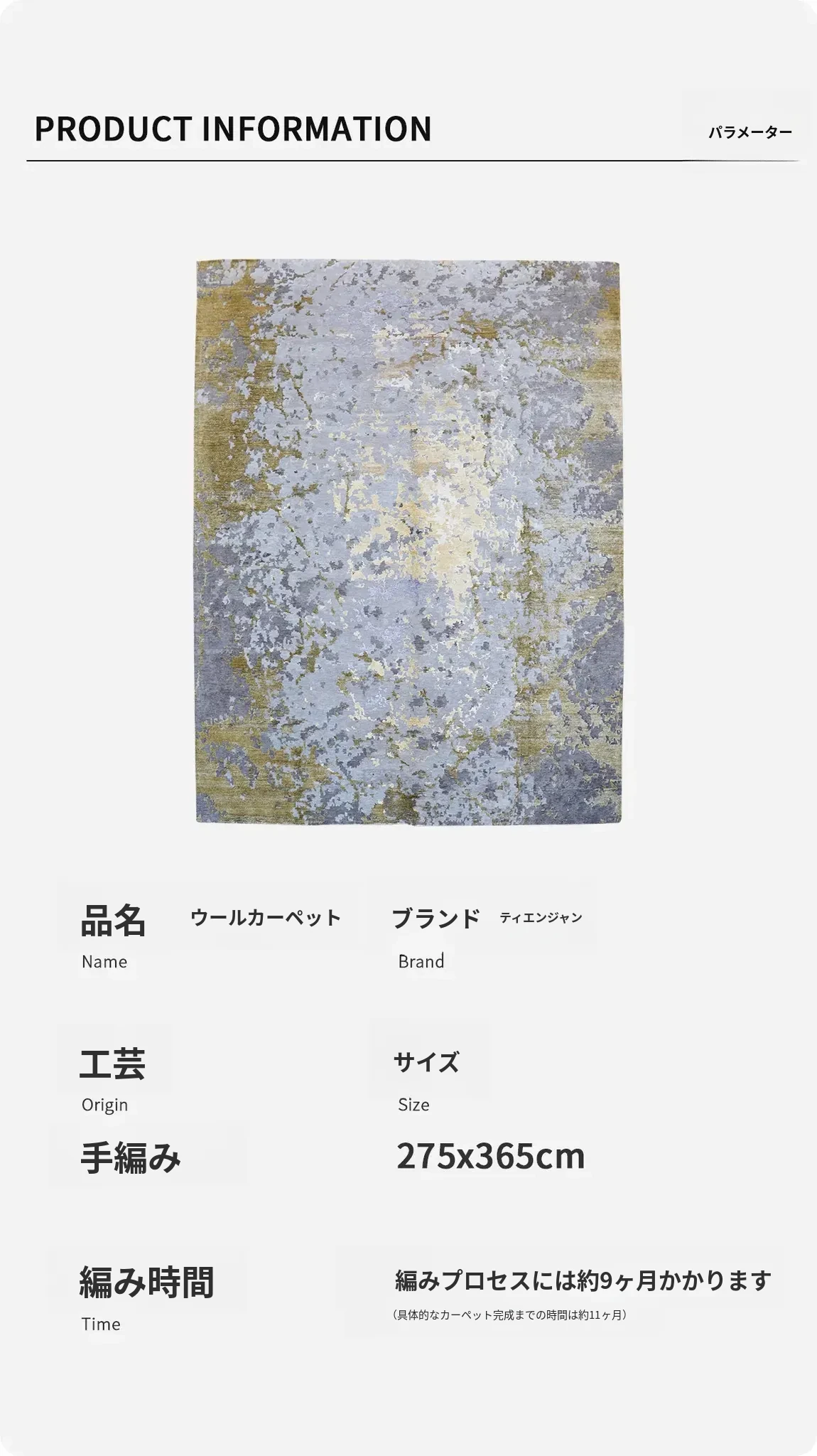 輸入手作ウールカーペット|リビング向け現代的ミニマルデザイン|軽やかでラグジュアリーな高級感|ソファやコーヒーテーブルに最適|サイズ275x365cm
