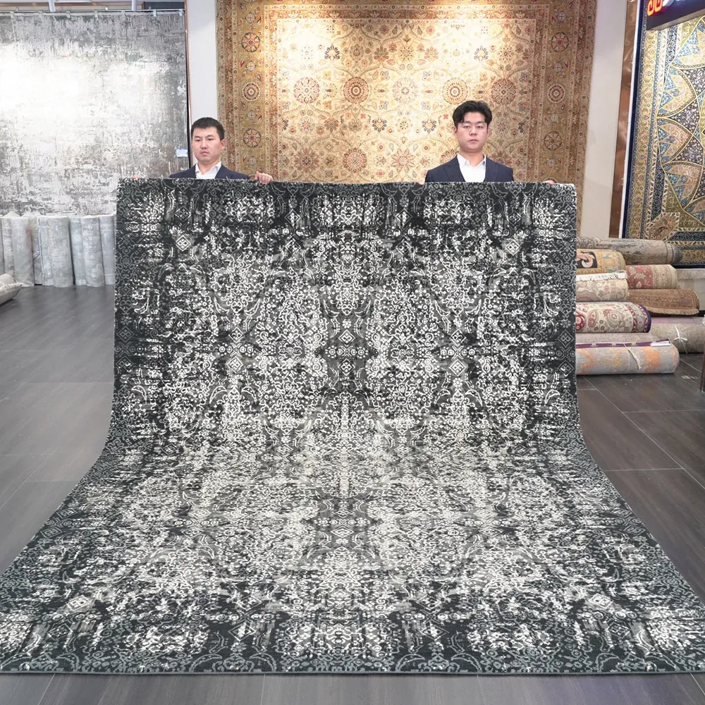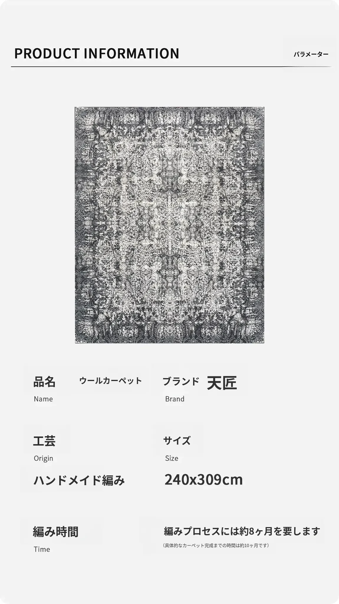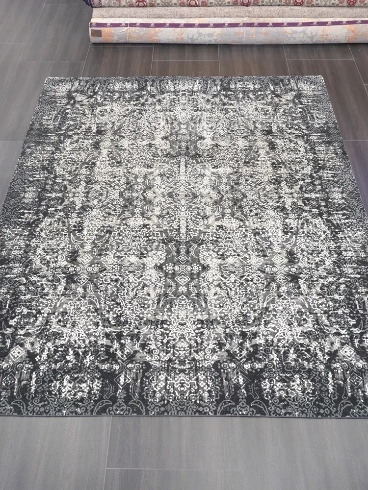 天匠インポートリビングルーム用北欧スタイルのグレー手作りウールラグ、INS風の軽奢感漂う240x309cmサイズ!おしゃれな空間を演出し、心地よいひとときをお楽しみください。