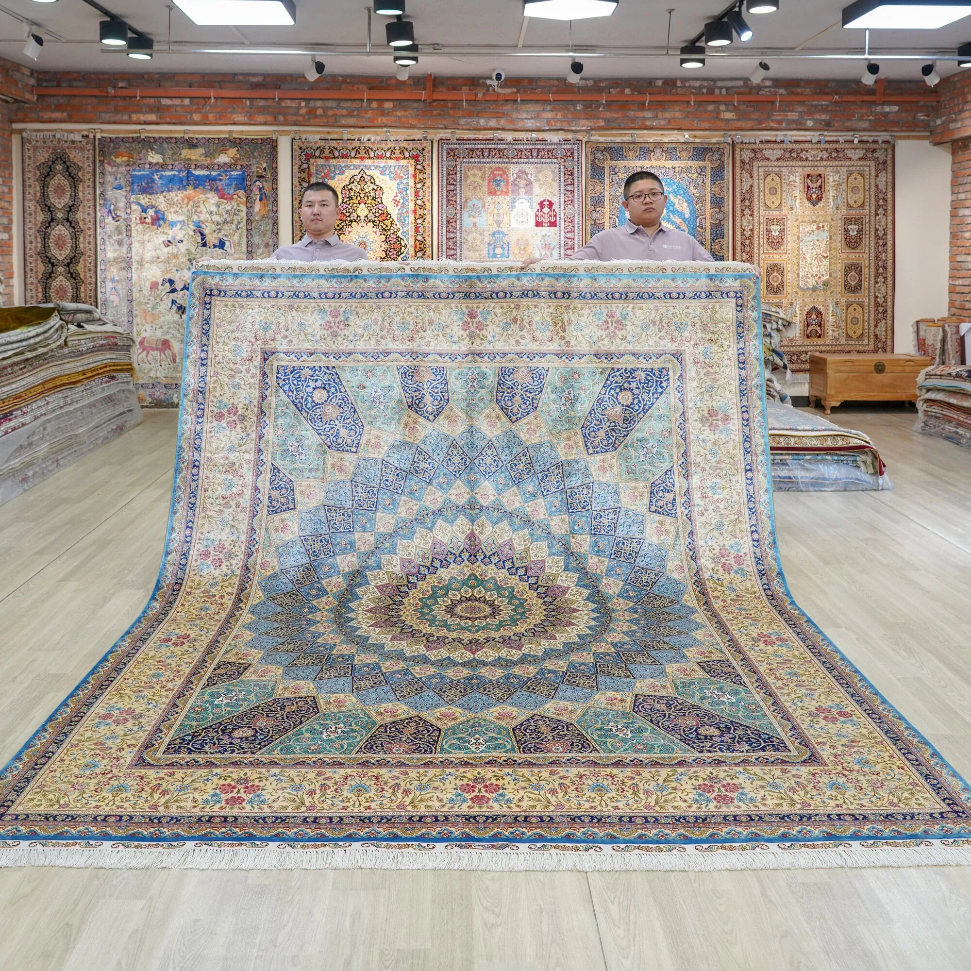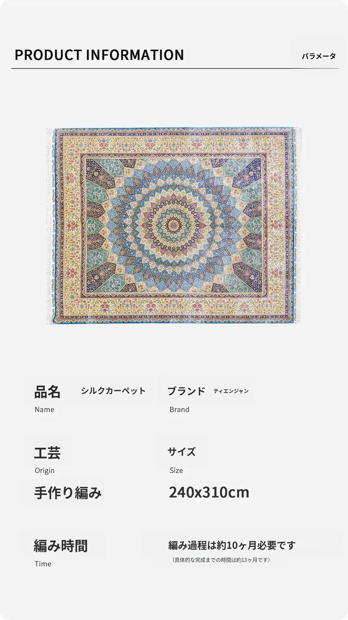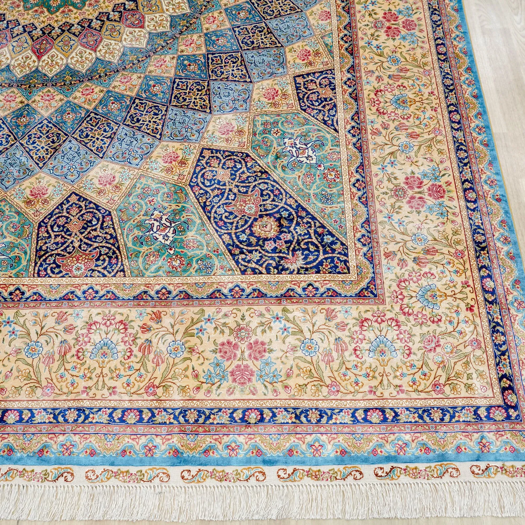 天匠の手作りシルクラグ - 高級感あふれる手織り絹のペルシャラグ、240x310cmで贅沢な寝室空間を演出!