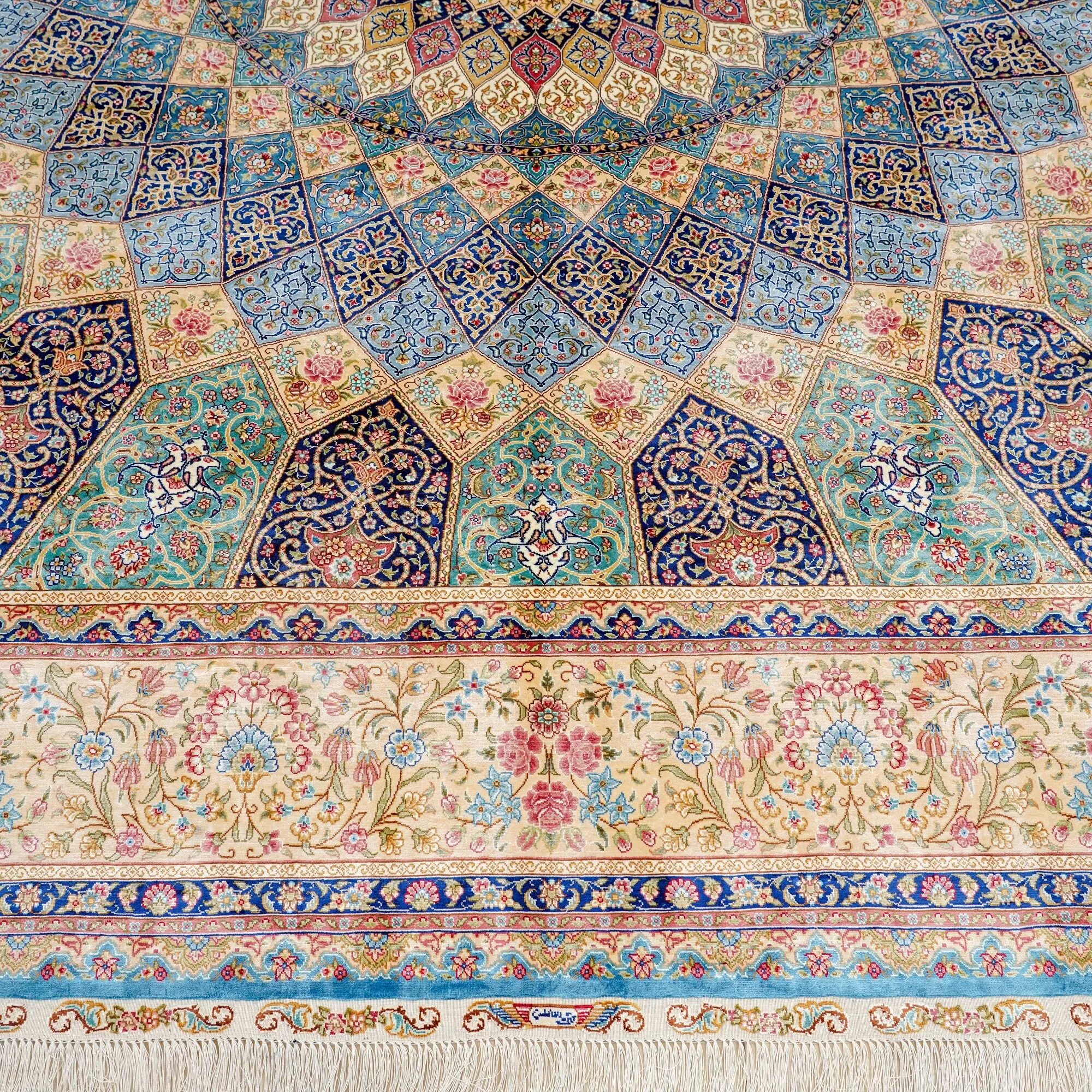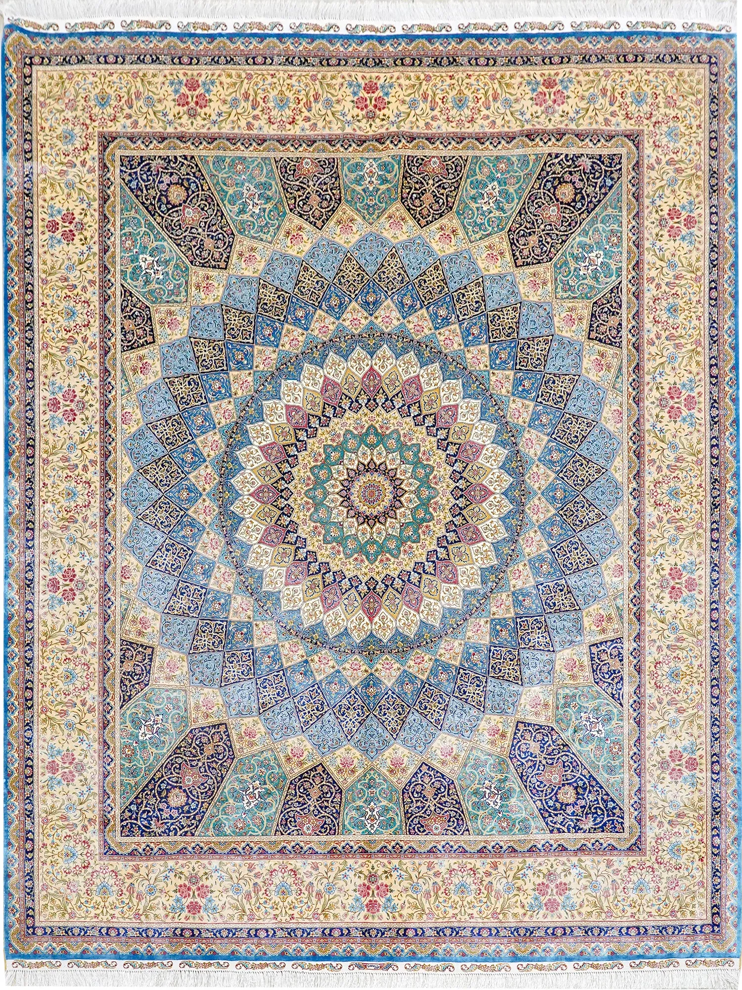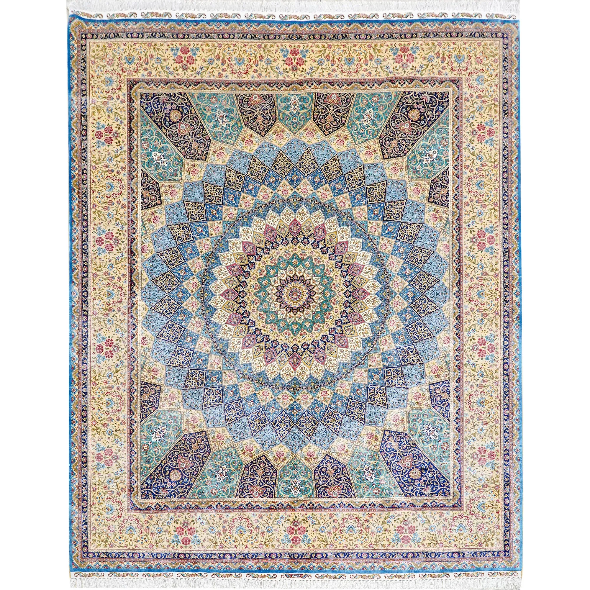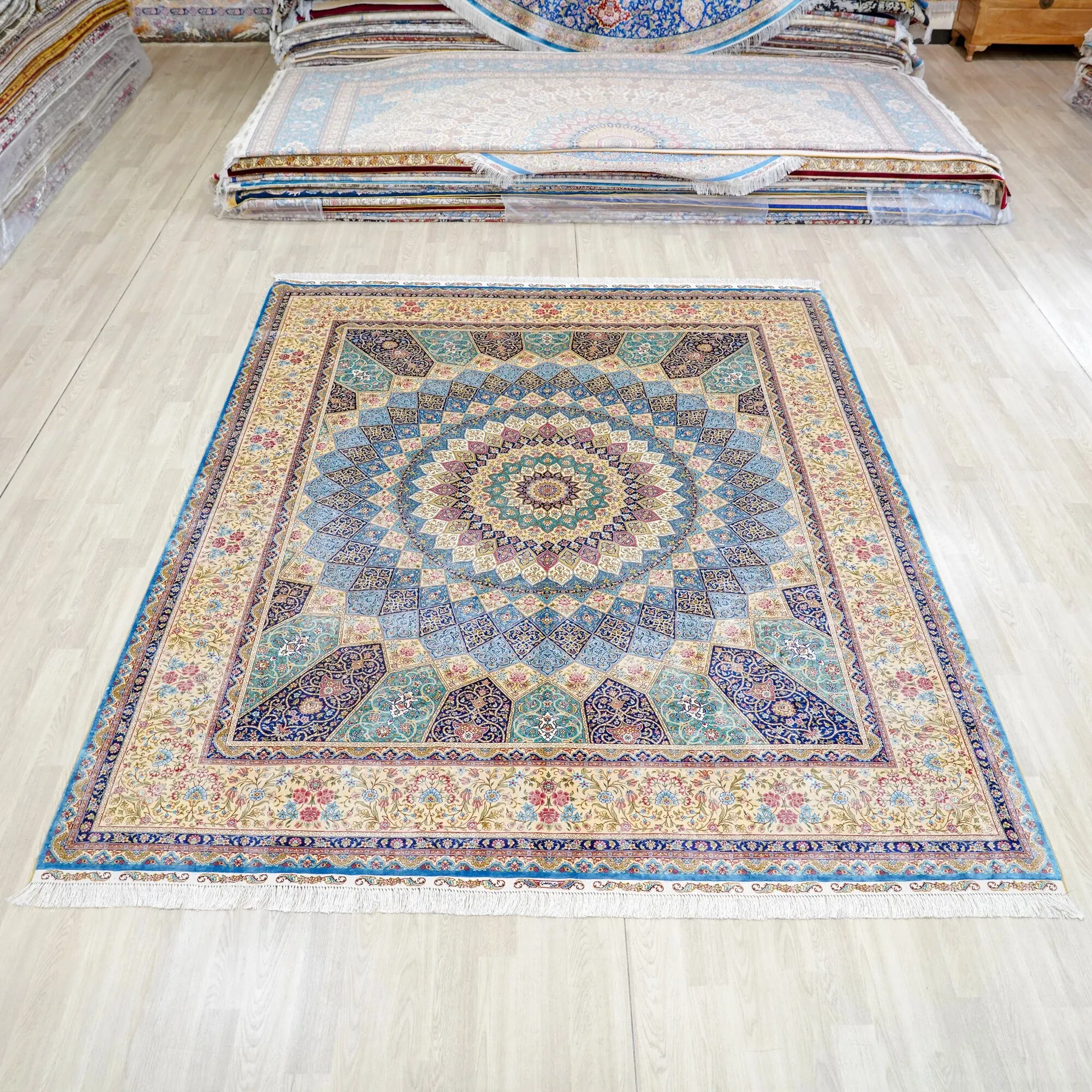 天匠の手作りシルクラグ - 高級感あふれる手織り絹のペルシャラグ、240x310cmで贅沢な寝室空間を演出!