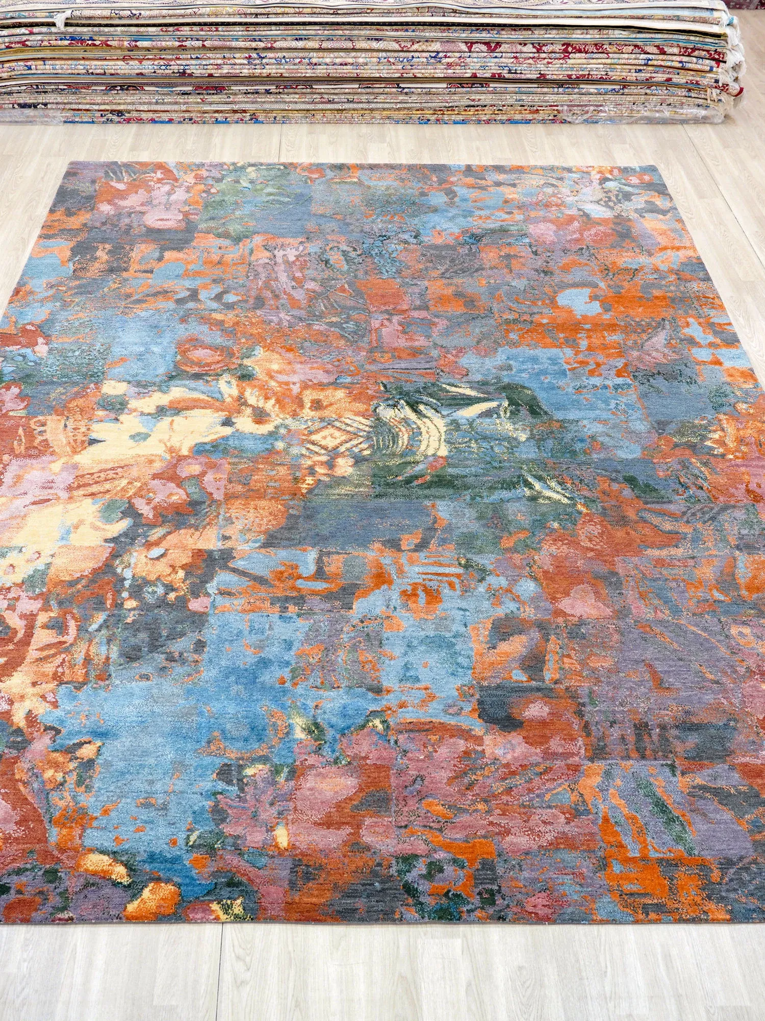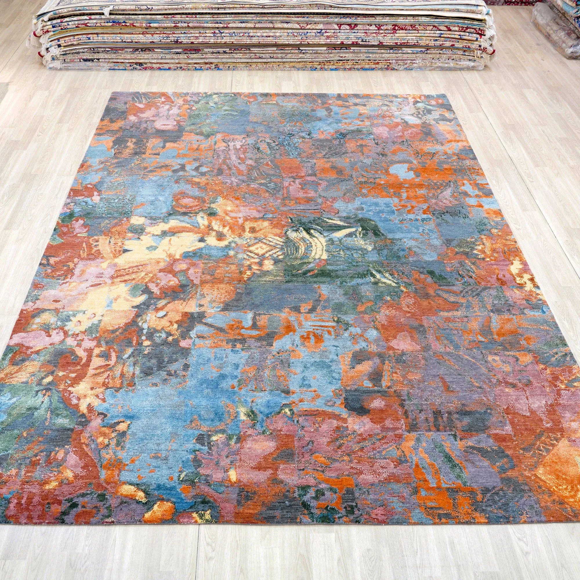 天匠の手作りウールカーペット - モダンでラグジュアリーなデザイン、別荘やリビングルーム、寝室に最適!高級感溢れる274x365cmサイズ、あなたの空間を一新します。