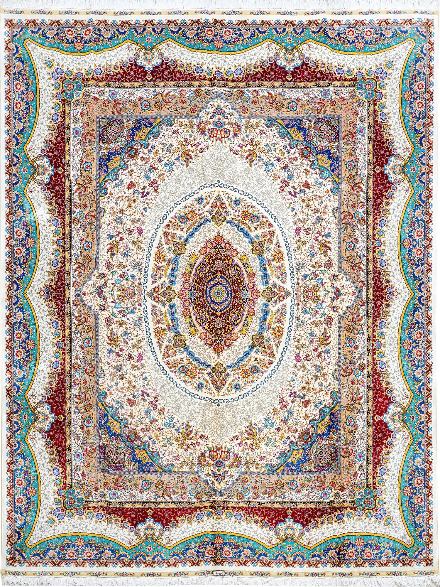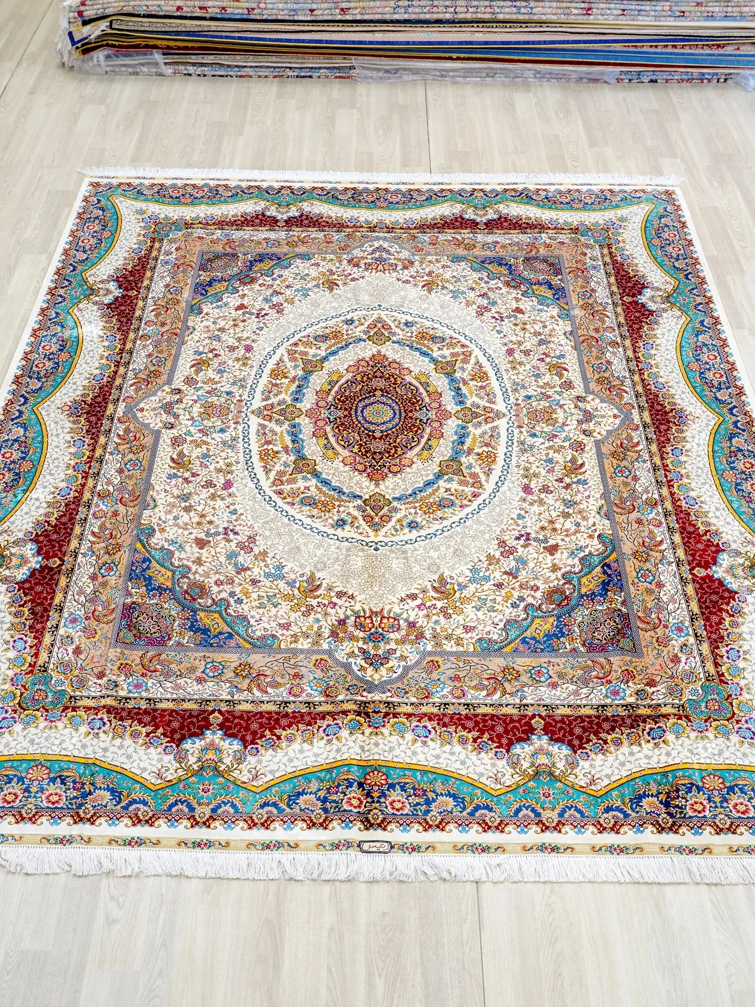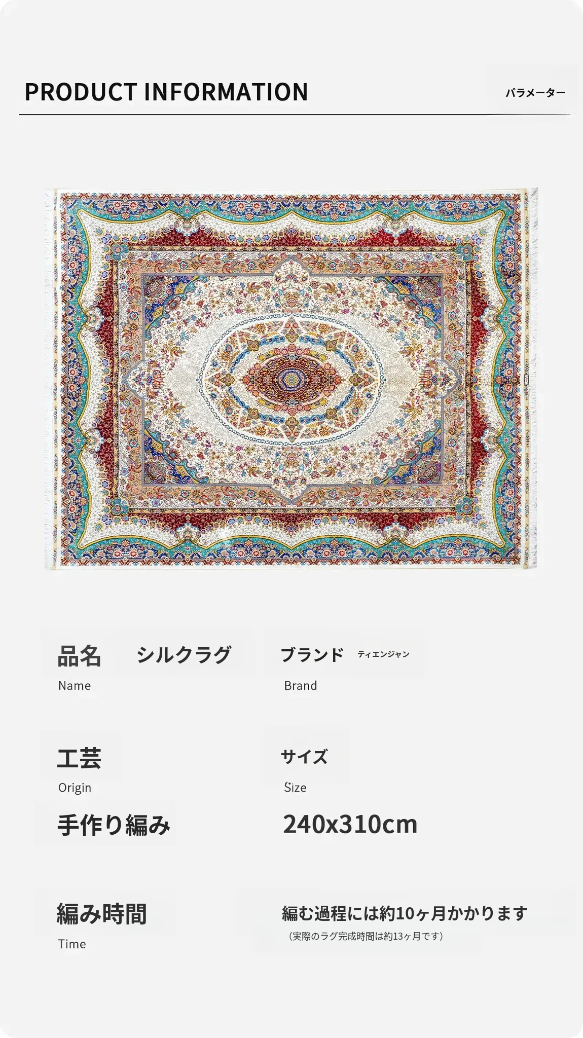 天匠の手作りシルクカーペット - 高級ヴィラのリビングや寝室にぴったりなペルシャ絨毯、240x310cmの贅沢なサイズで、あなたの空間を華やかに演出します。