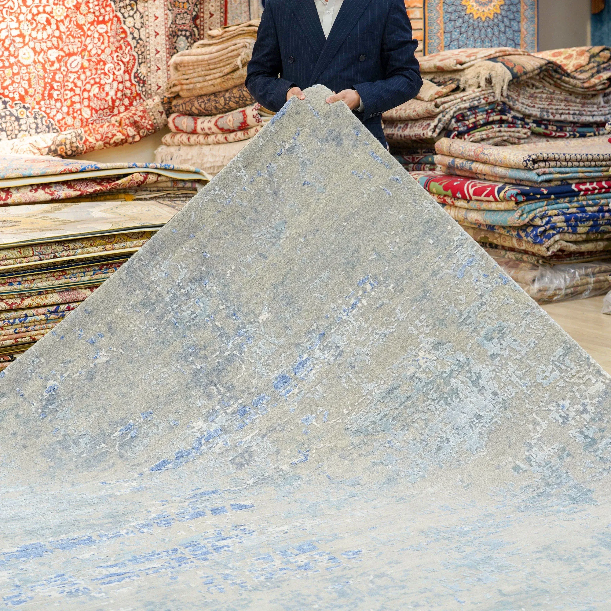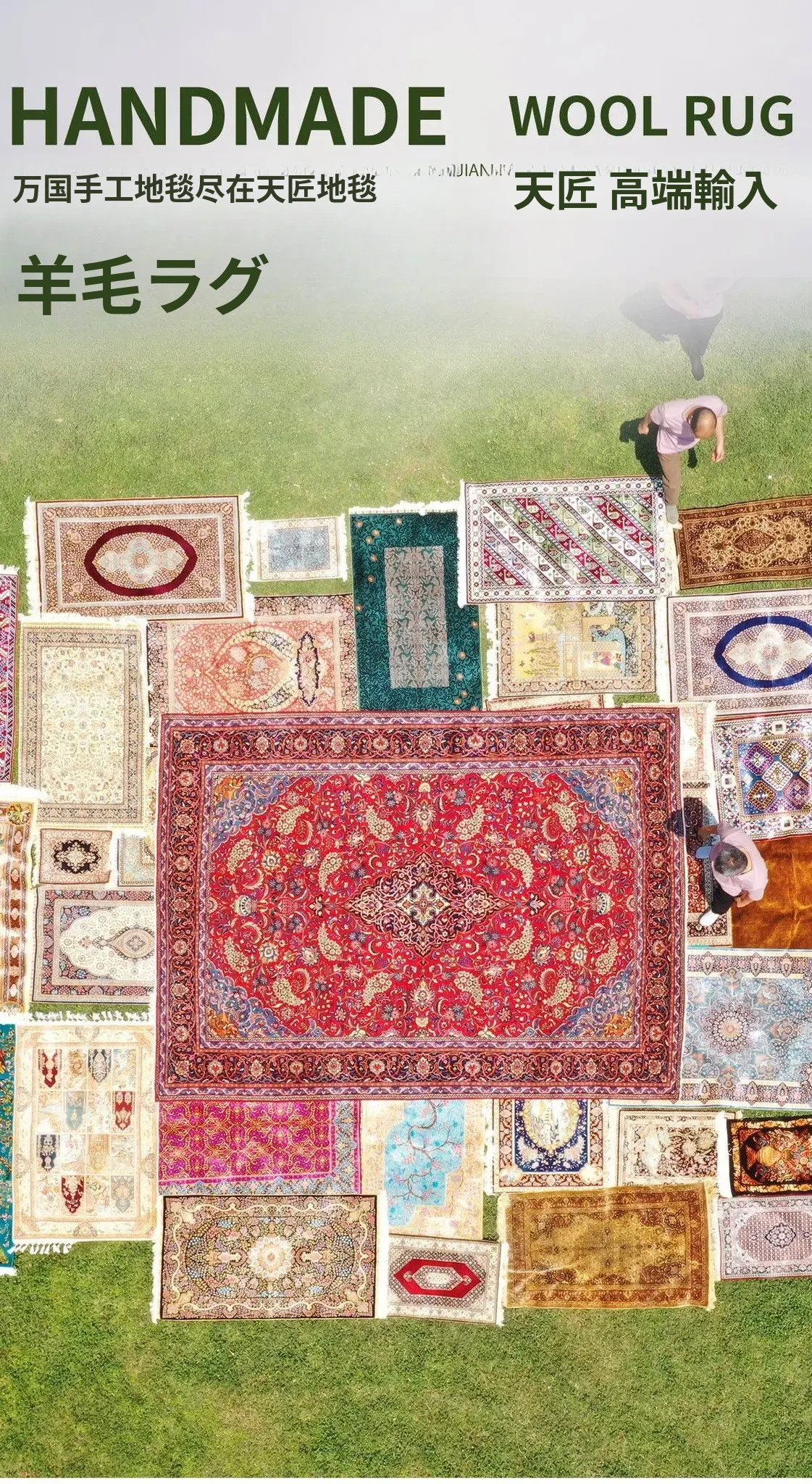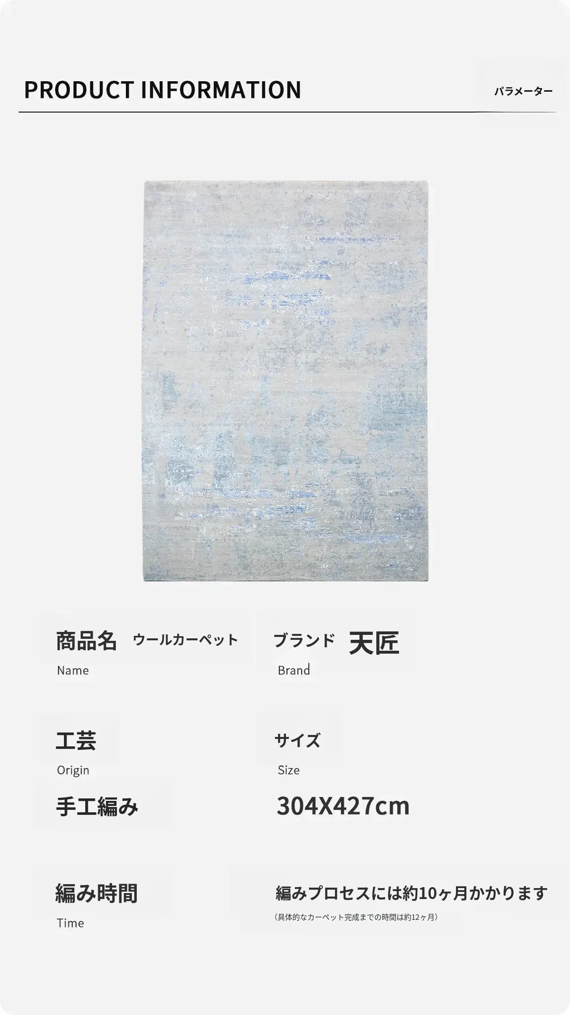 高級感溢れる手作りウールカーペット - リビングやベッドルームにぴったりなシンプルでエレガントなデザイン!304x427cmの広々サイズで、ヴィラや高級インテリアに最適です。
