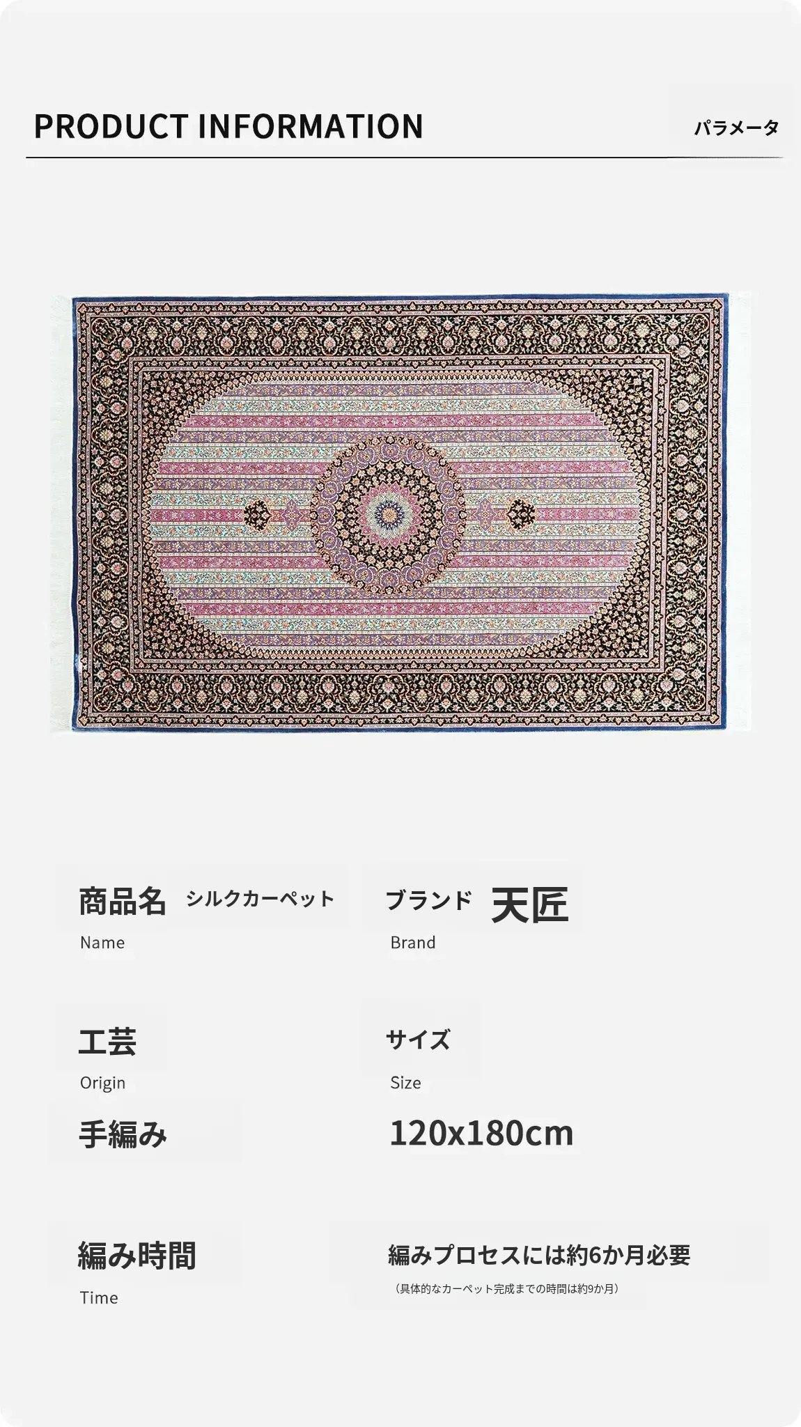天匠手作シルクラグ 高級無接着剤 ヴィラの寝室にぴったりなベッドサイドマット 120x180cm おしゃれで高級感溢れるデザイン、贅沢なひとときをお届けします。