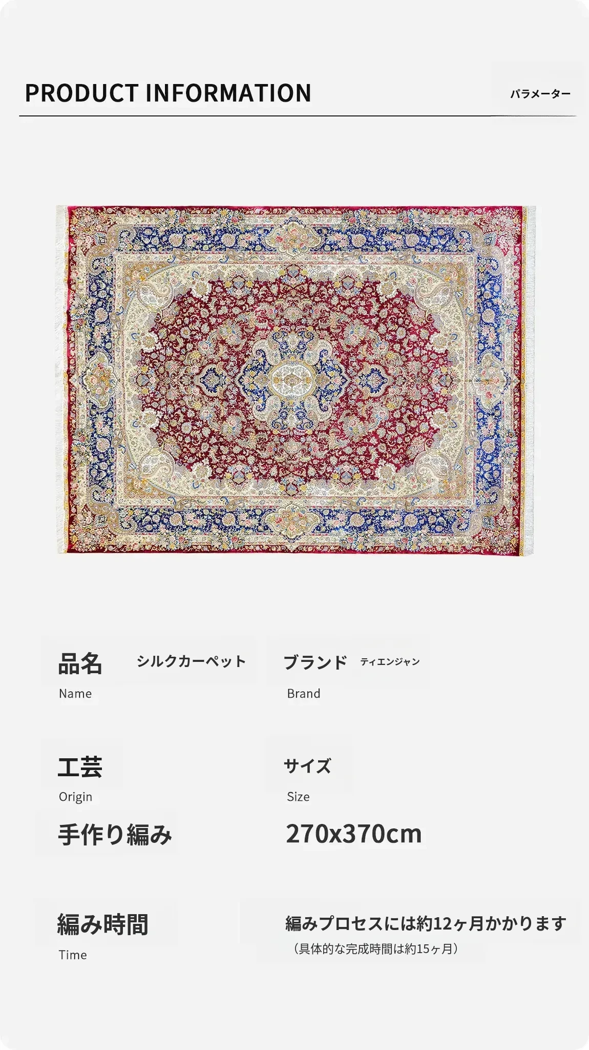 天匠の手作り本絲カーペット - 高級リビング・寝室に最適!全国どこでも試し敷きサービス付き、270x370cmの贅沢なサイズであなたの空間を彩ります。