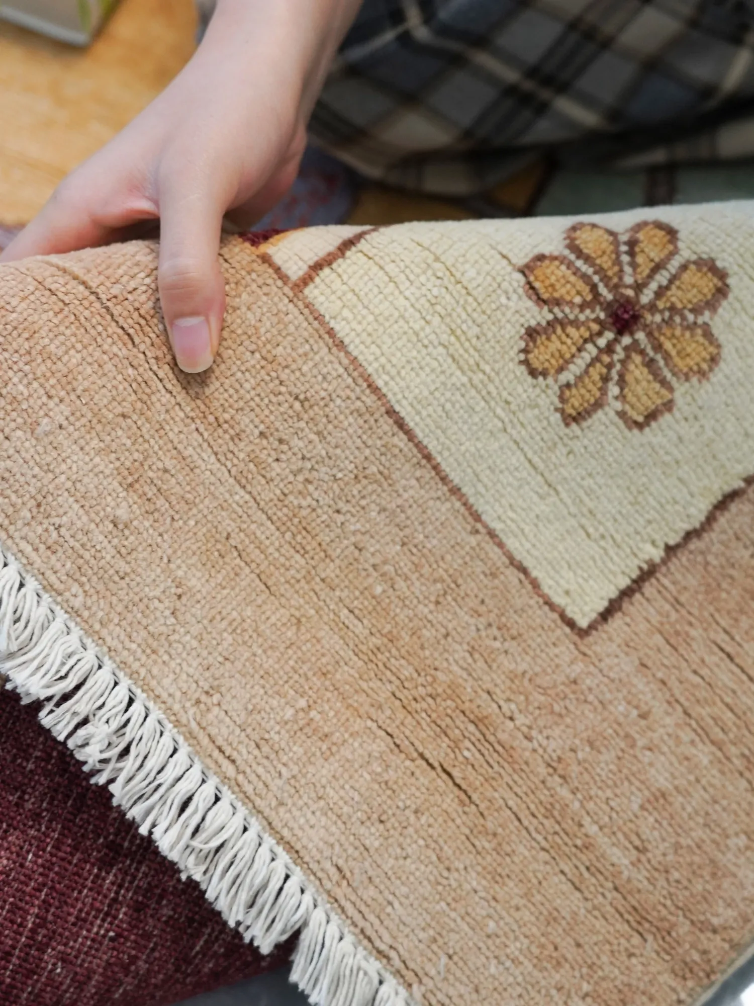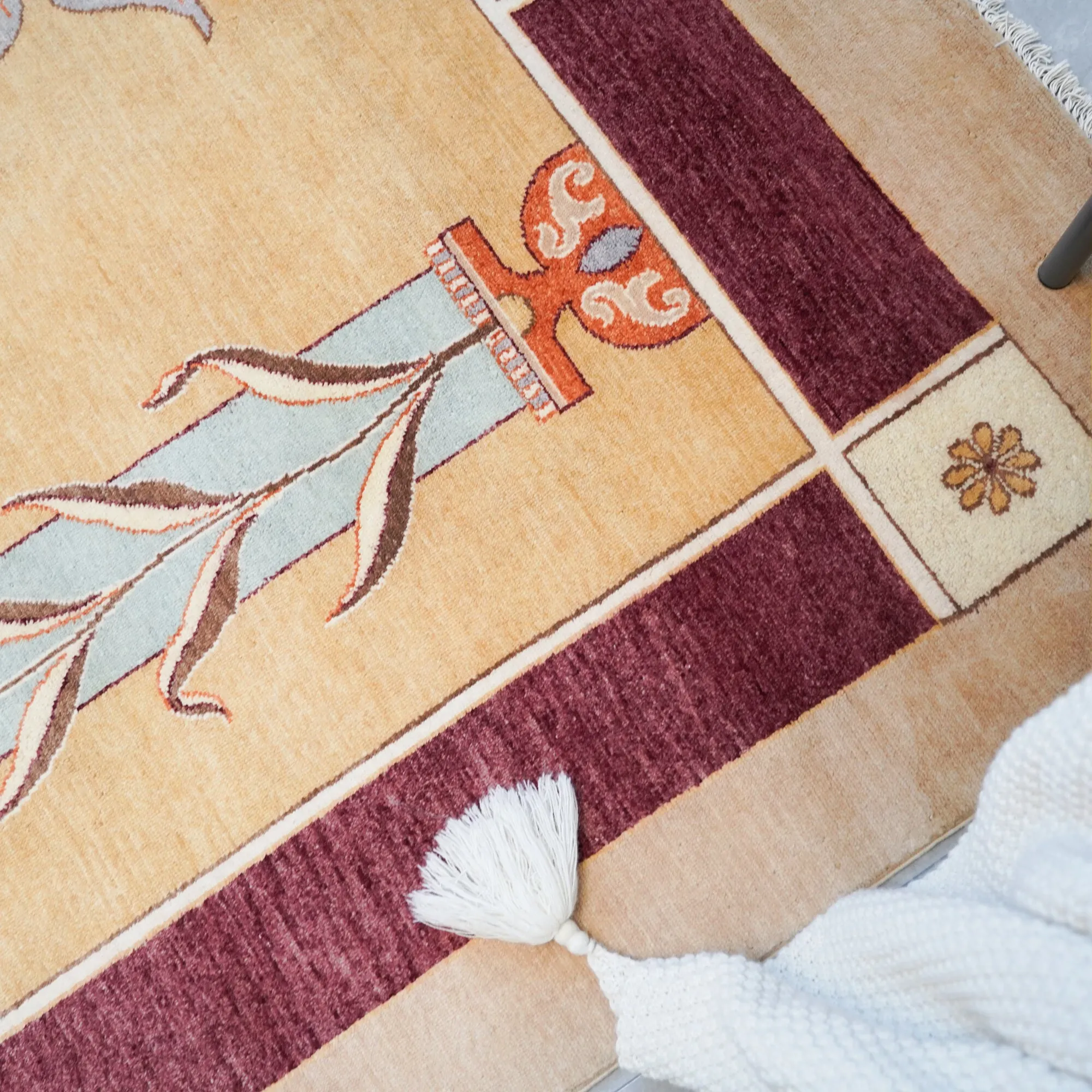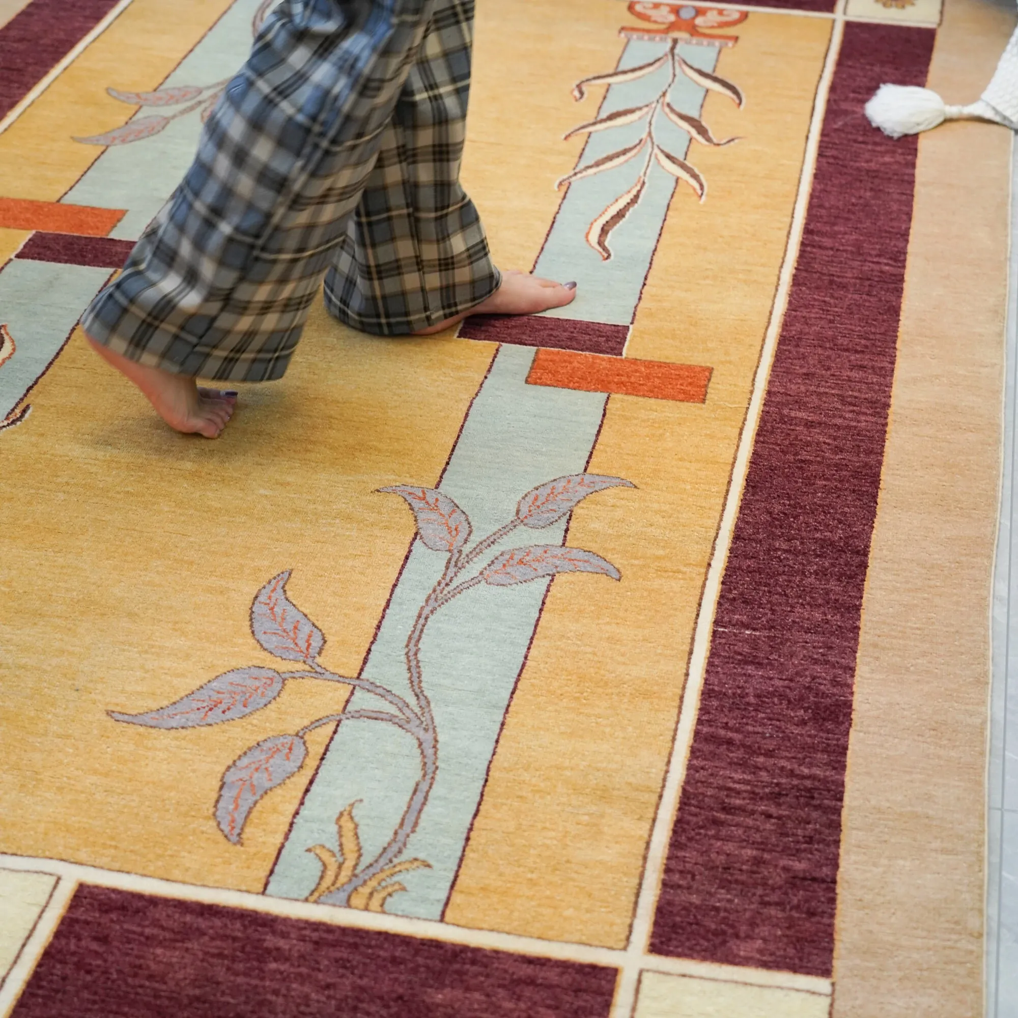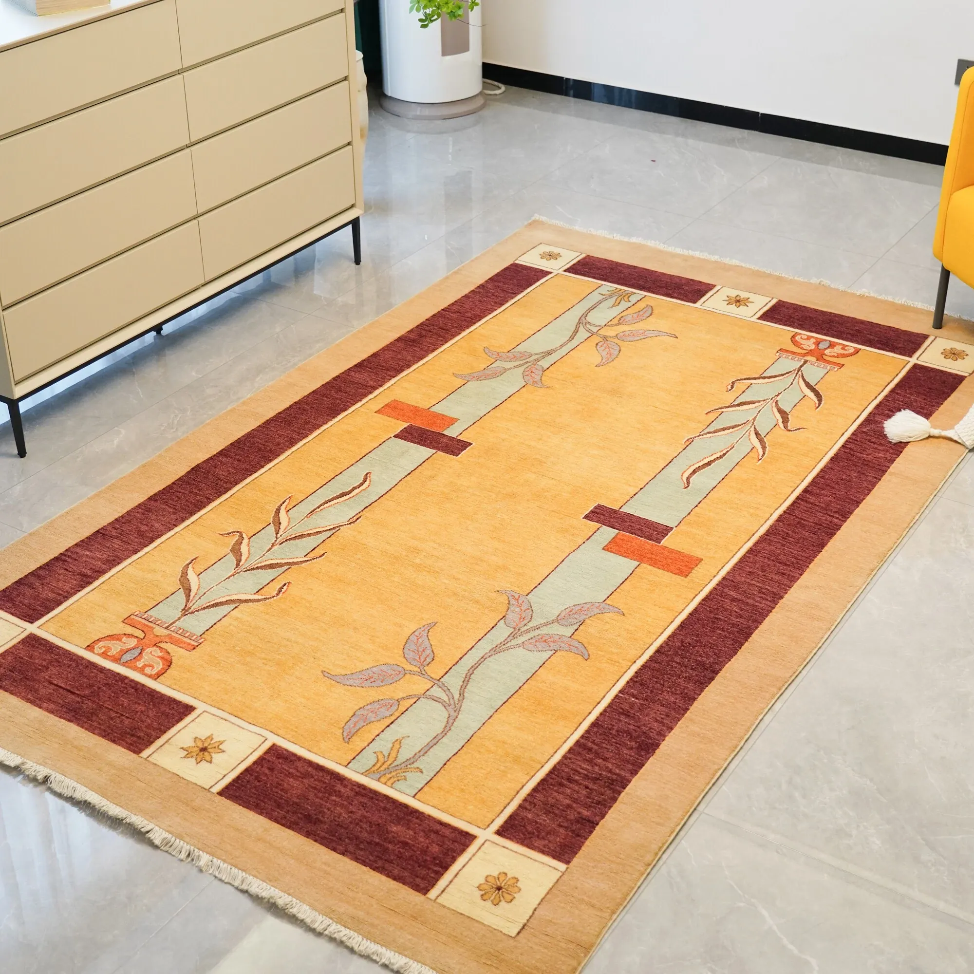 天匠輸入のハンドメイドウールカーペット - 高級感溢れる166x265cm、寝室や書斎に最適な高品質カーペット!心地よい肌触りと洗練されたデザインで、あなたの空間を格上げします。