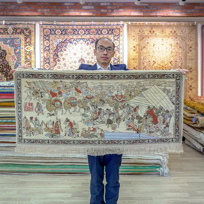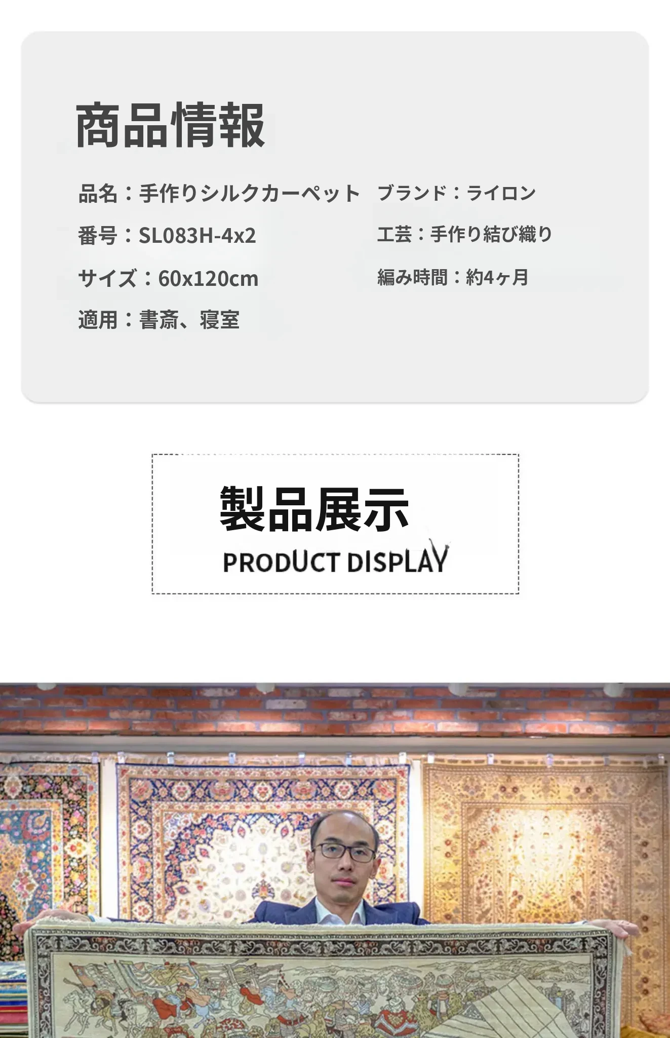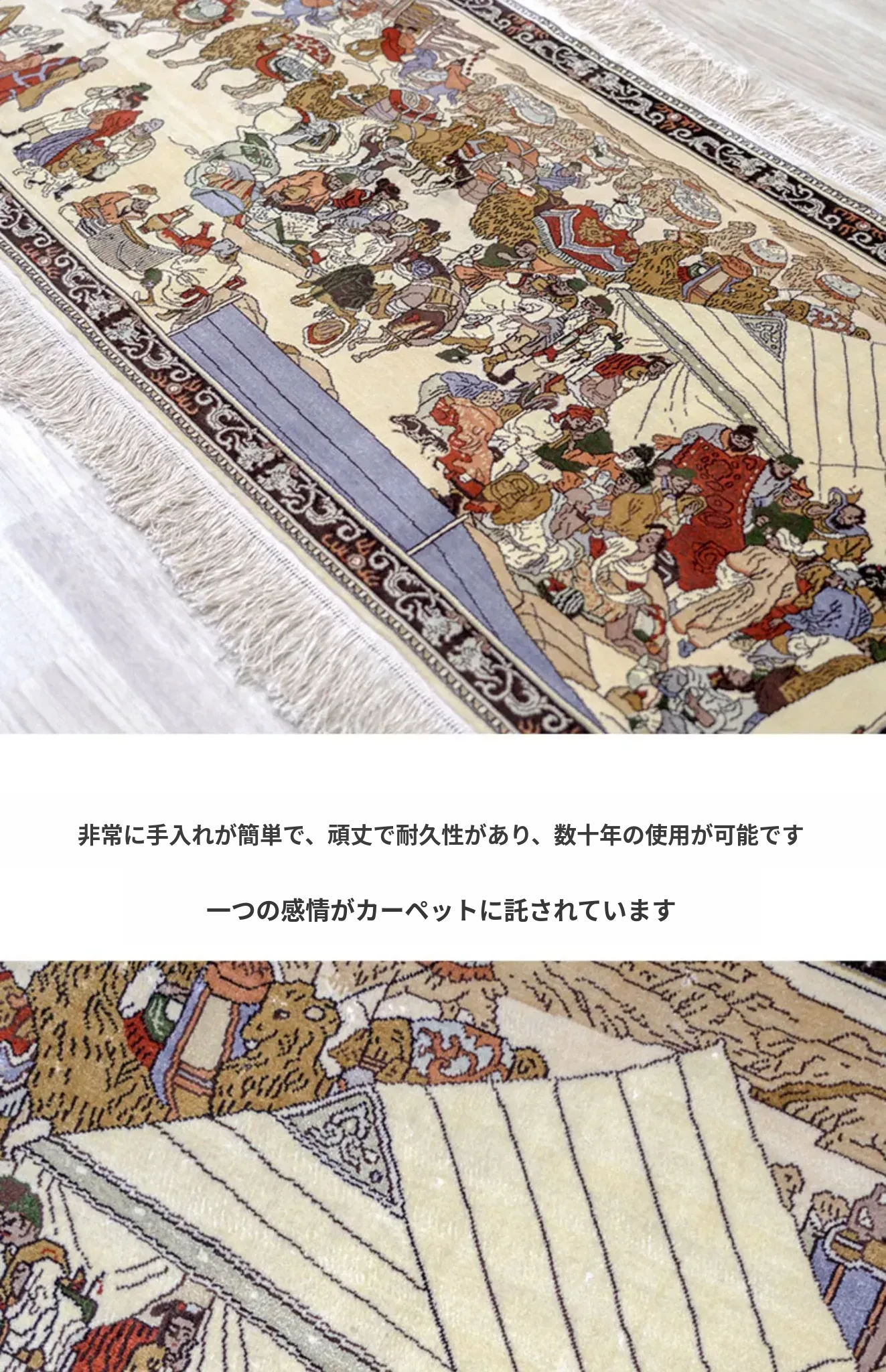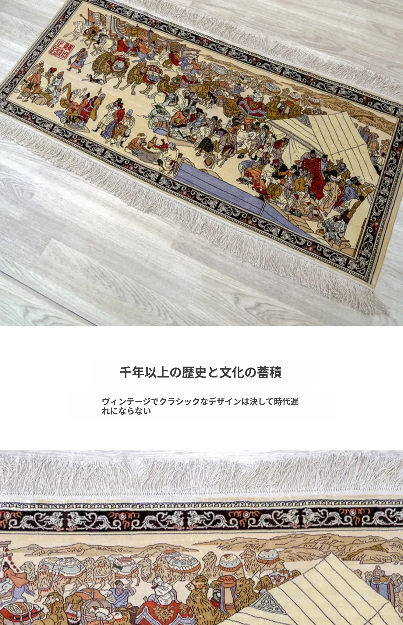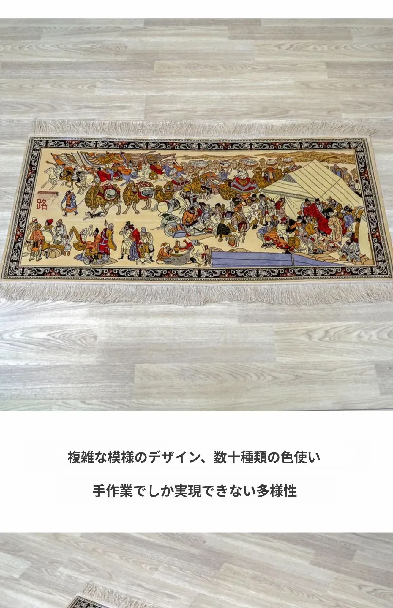 天匠地毯60x120cm 全国どこでも試し敷きサービス!シルクロードの美しい風景を描いたデザインで、あなたの空間を華やかに演出します。高品質な素材で、心地よい触り心地を実現。