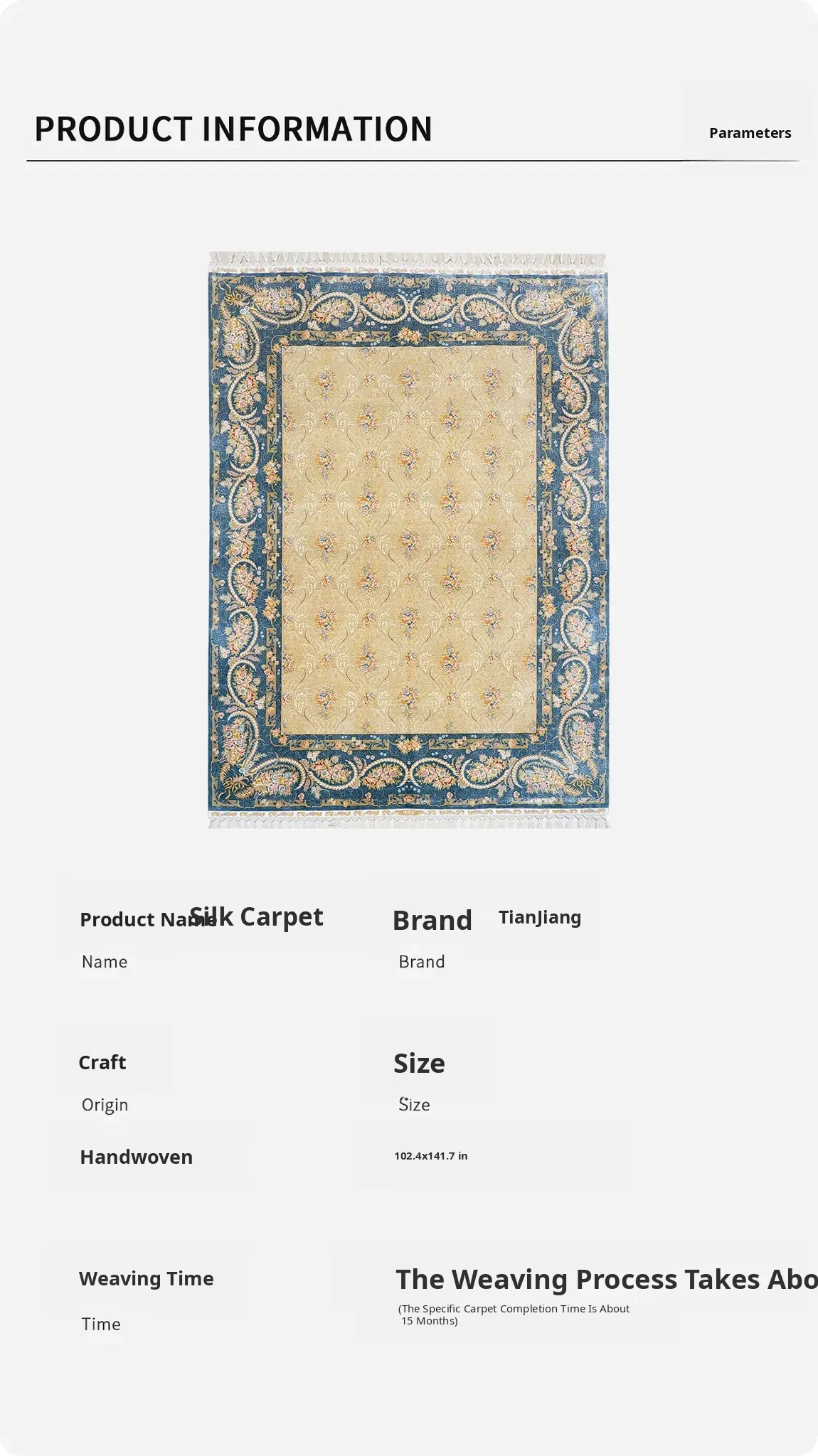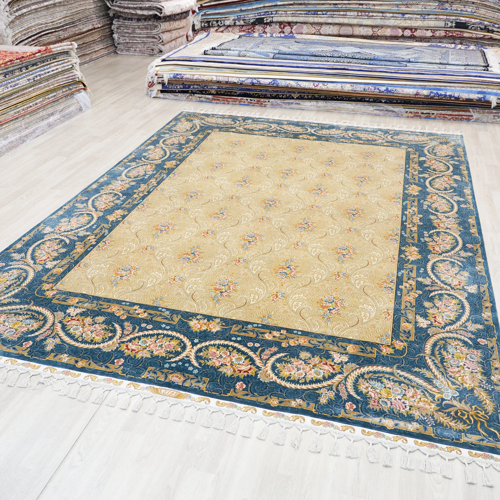 Tianjiang Handcrafted Genuine Silk Carpet for Villas and Luxury Homes - Premium Quality Area Rug for Export to Europe and America, Size 260x360cm