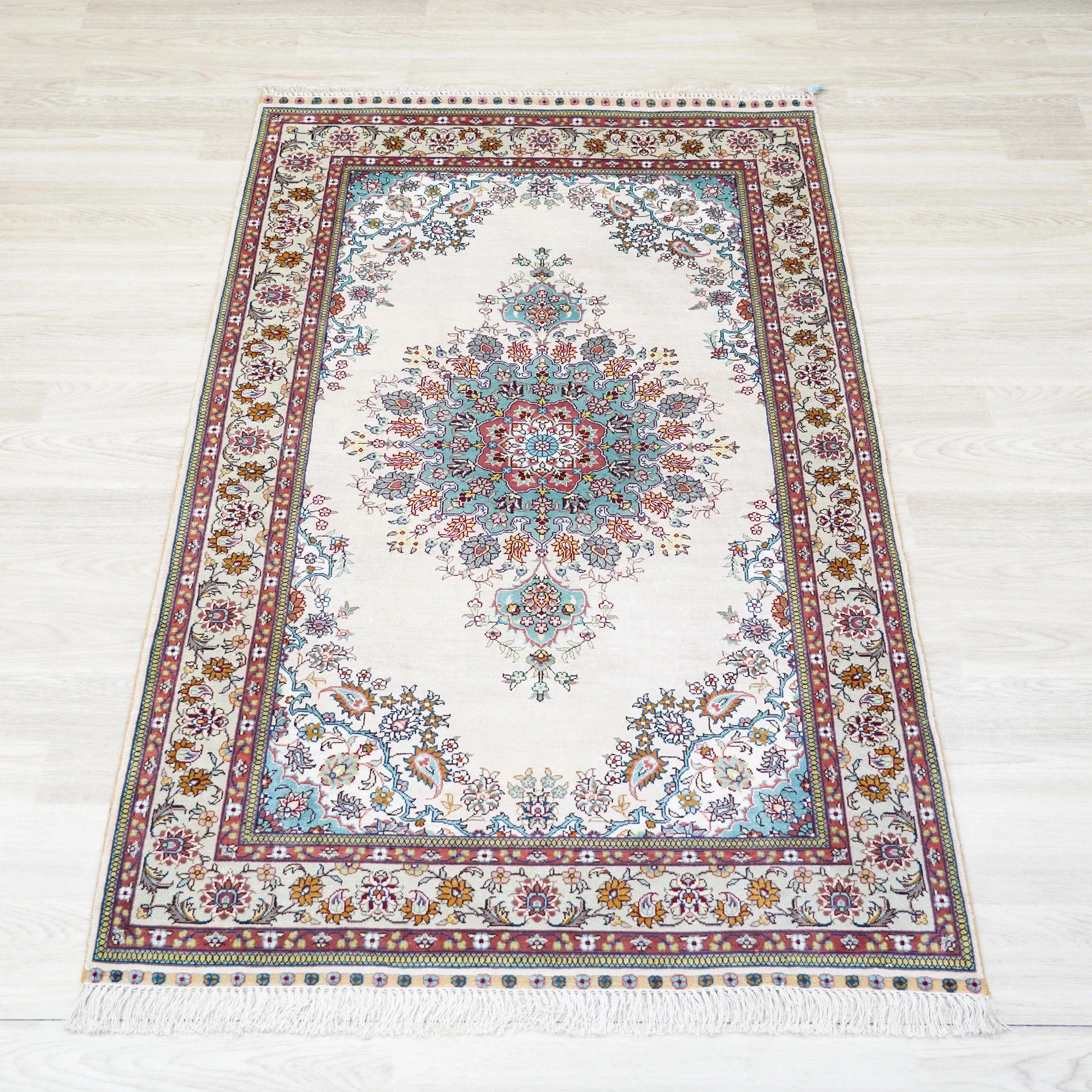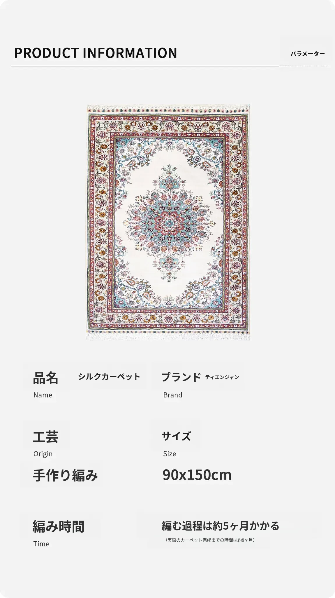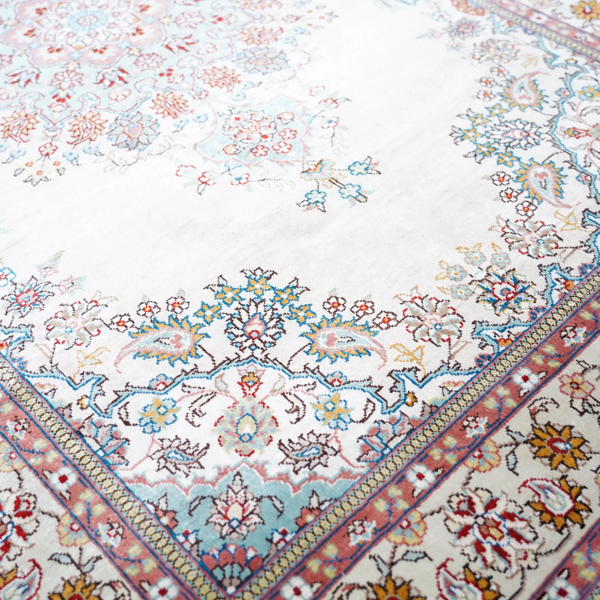 職人手作の本物シルクカーペット - トルコ製 高級カーペット リビング・寝室・書斎に最適 90x150cmの贅沢なサイズで、あなたの空間を華やかに演出します。