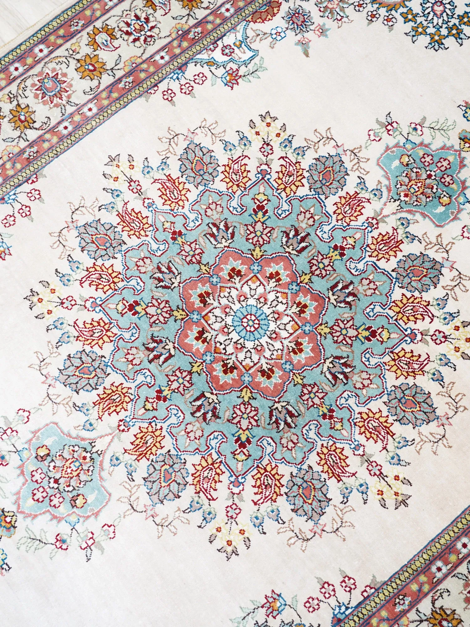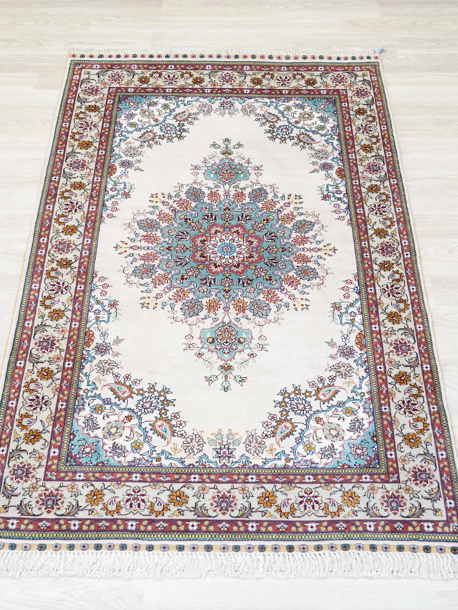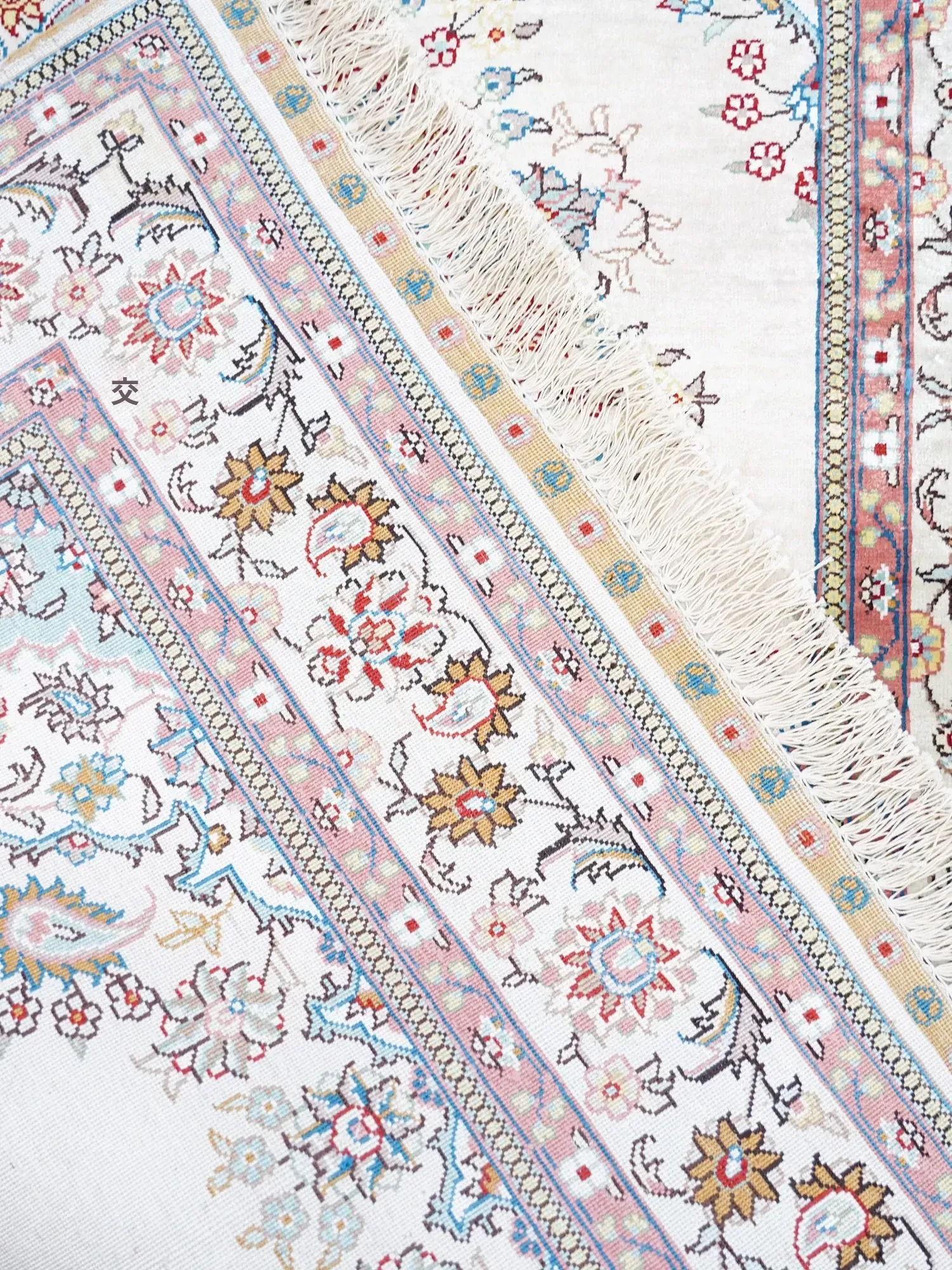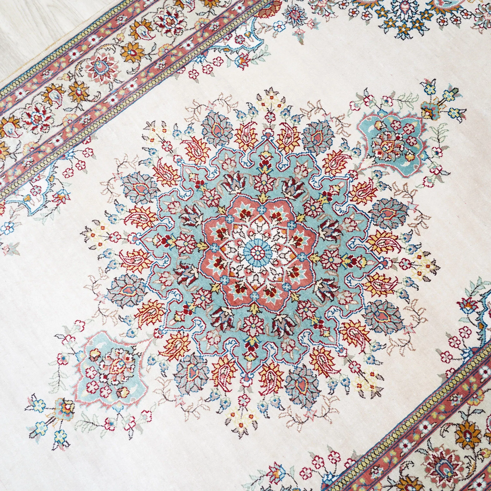 職人手作の本物シルクカーペット - トルコ製 高級カーペット リビング・寝室・書斎に最適 90x150cmの贅沢なサイズで、あなたの空間を華やかに演出します。