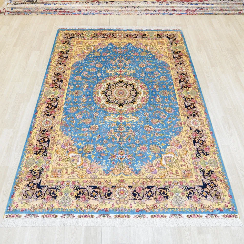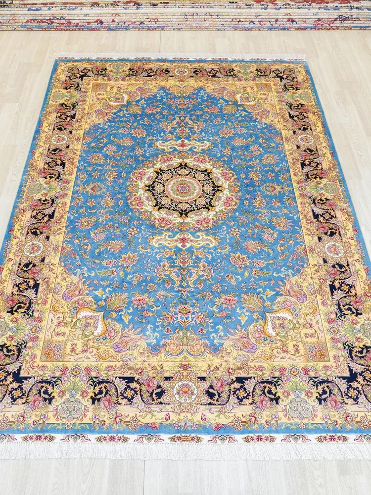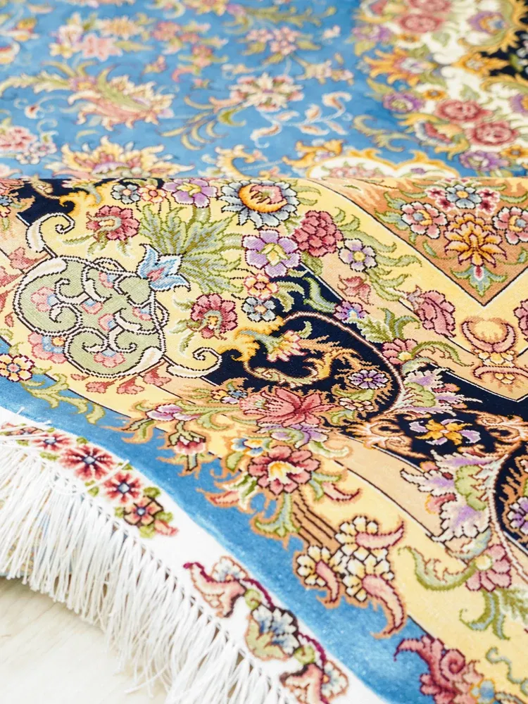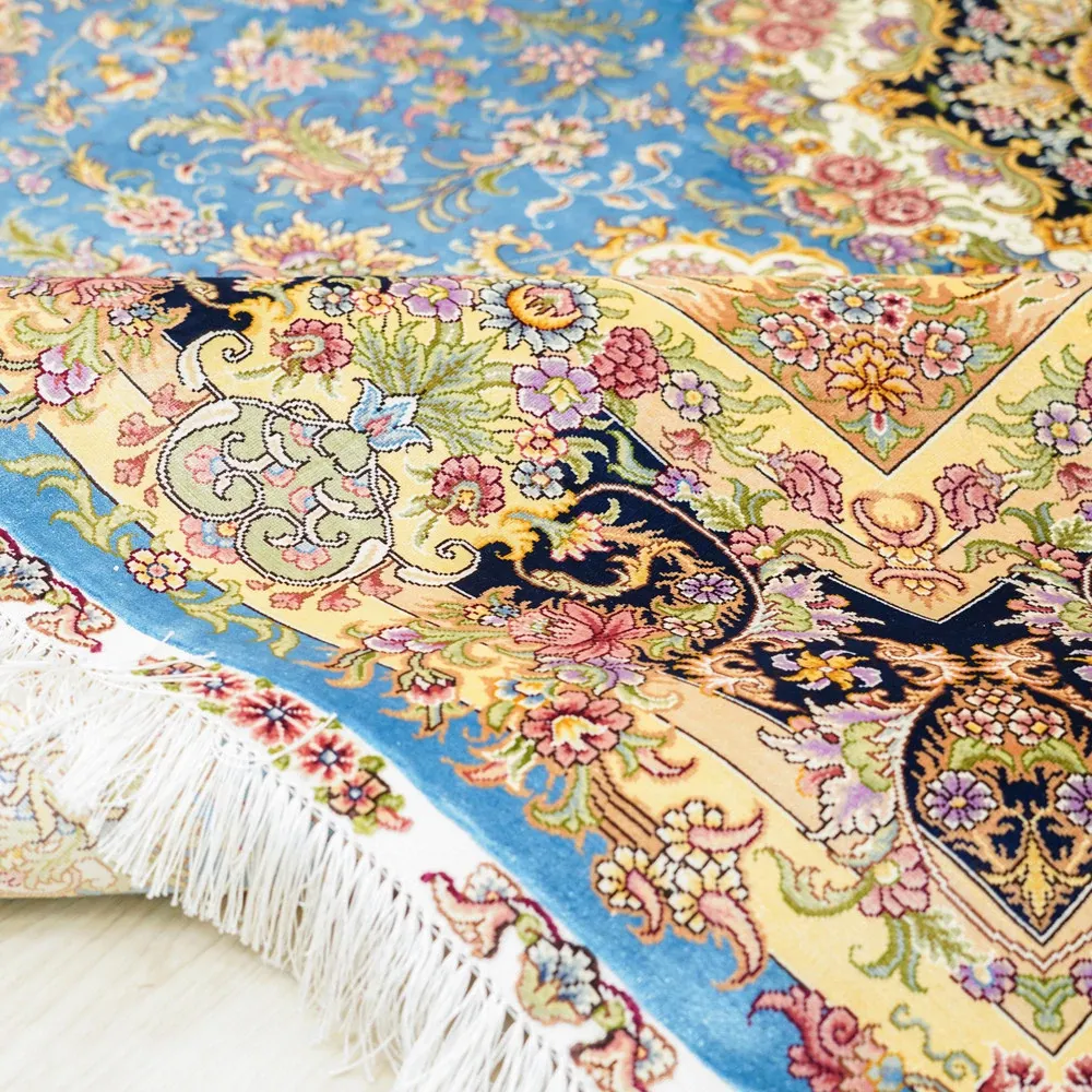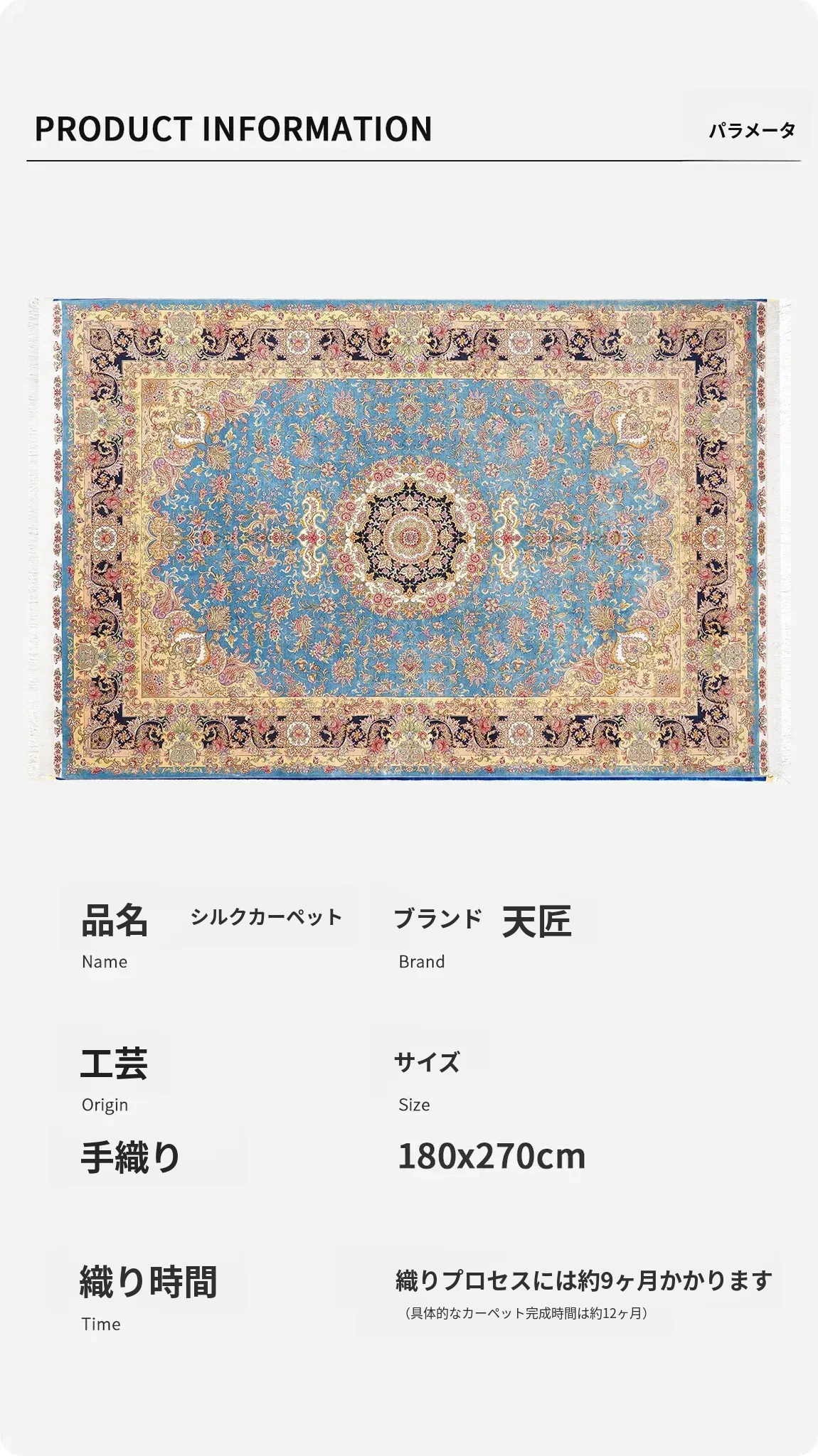天匠の手作りシルクカーペット - 青色のクラシックペルシャ絨毯、豪華な別荘にぴったり!アメリカン&ヨーロピアンスタイル、180x270cmの広々サイズでお部屋を優雅に彩ります。