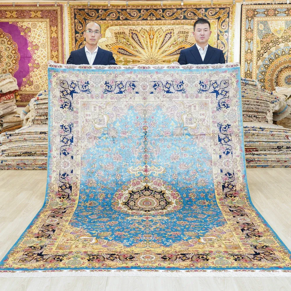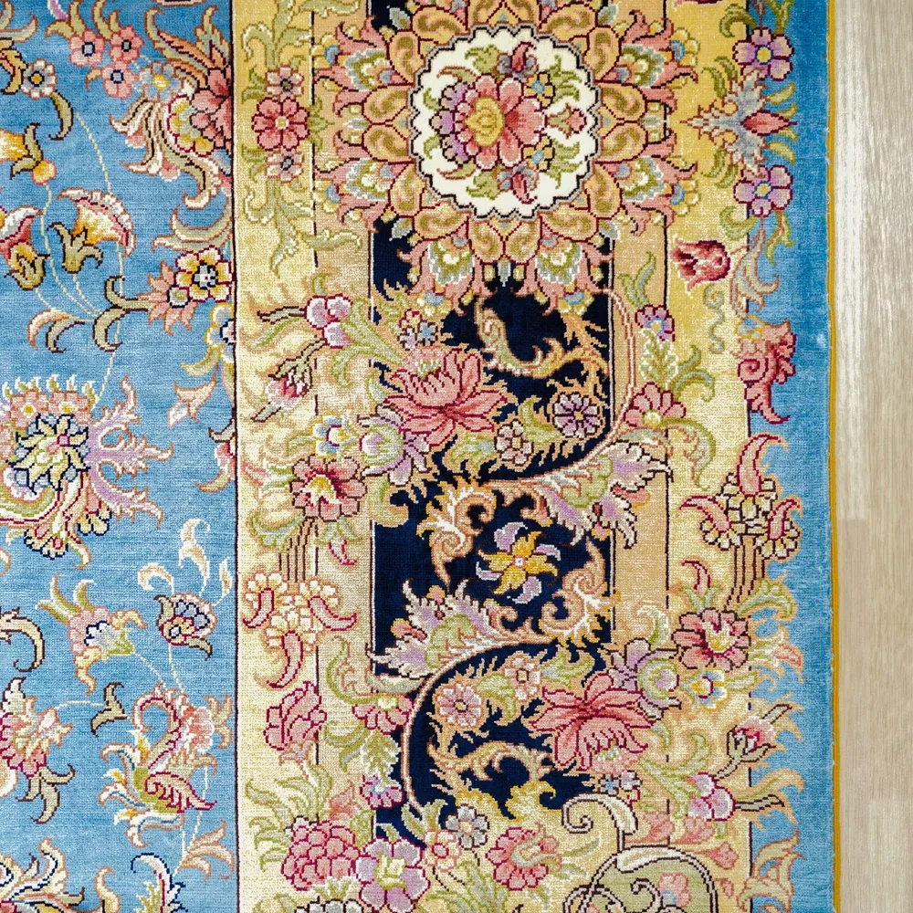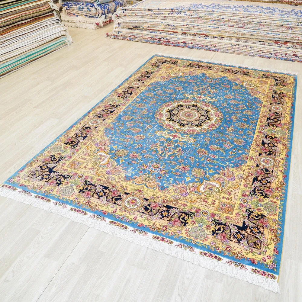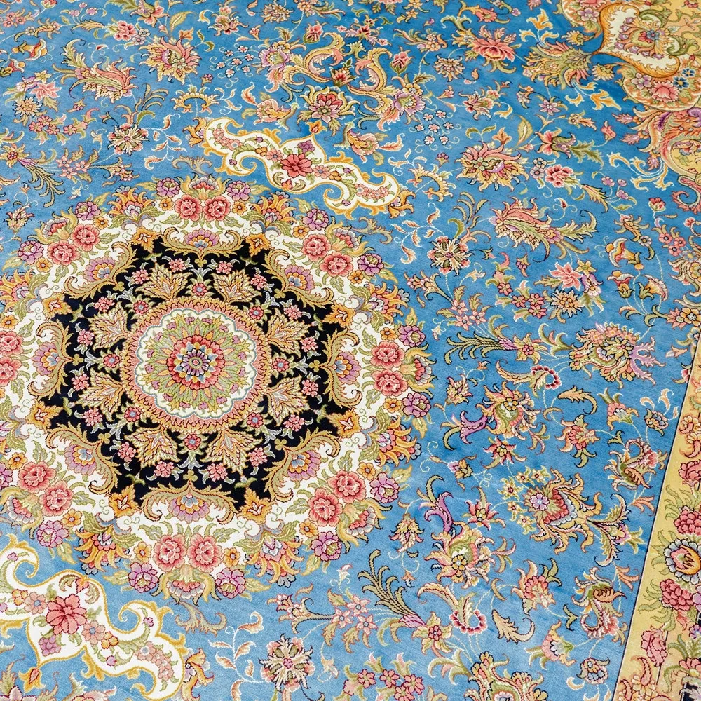天匠の手作りシルクカーペット - 青色のクラシックペルシャ絨毯、豪華な別荘にぴったり!アメリカン&ヨーロピアンスタイル、180x270cmの広々サイズでお部屋を優雅に彩ります。
