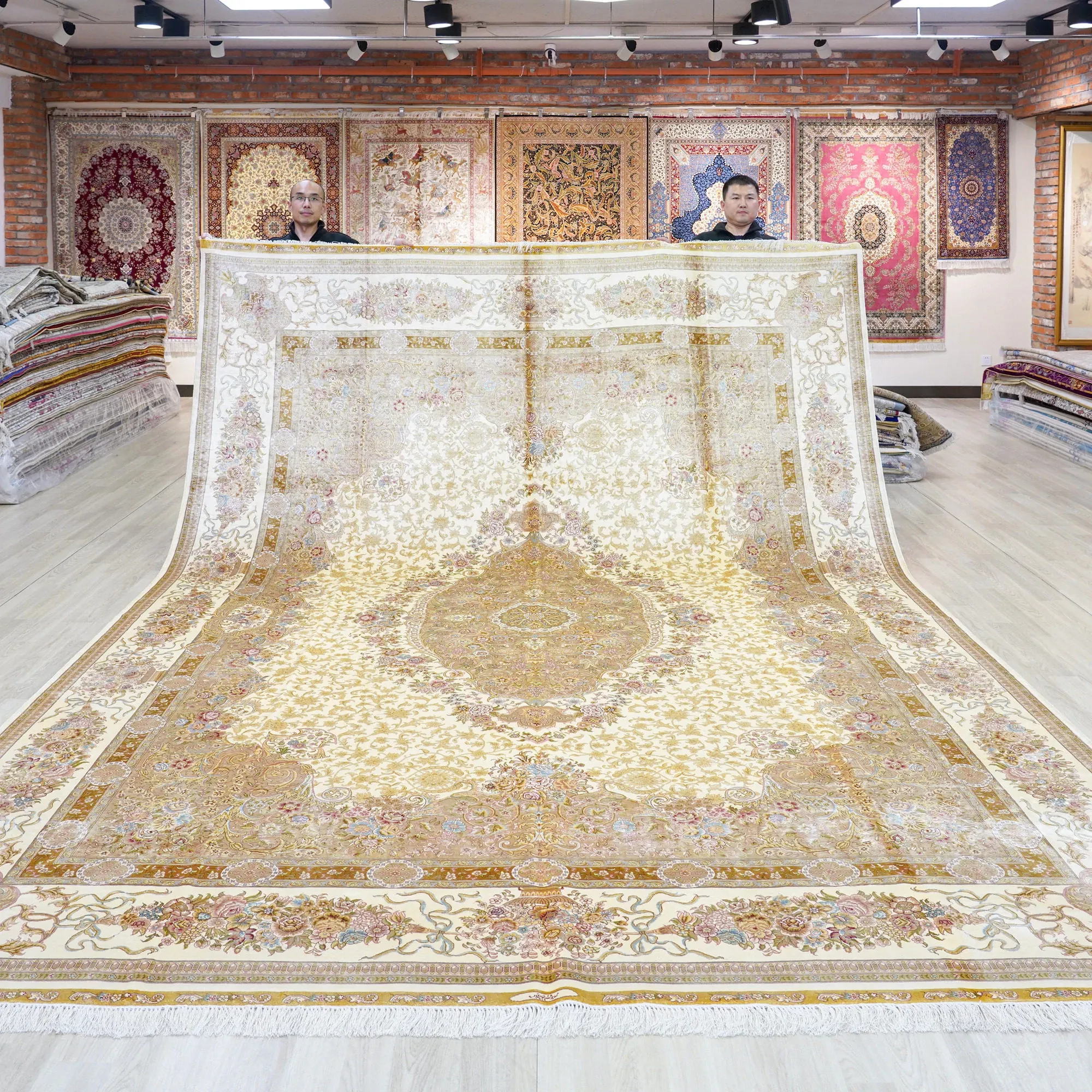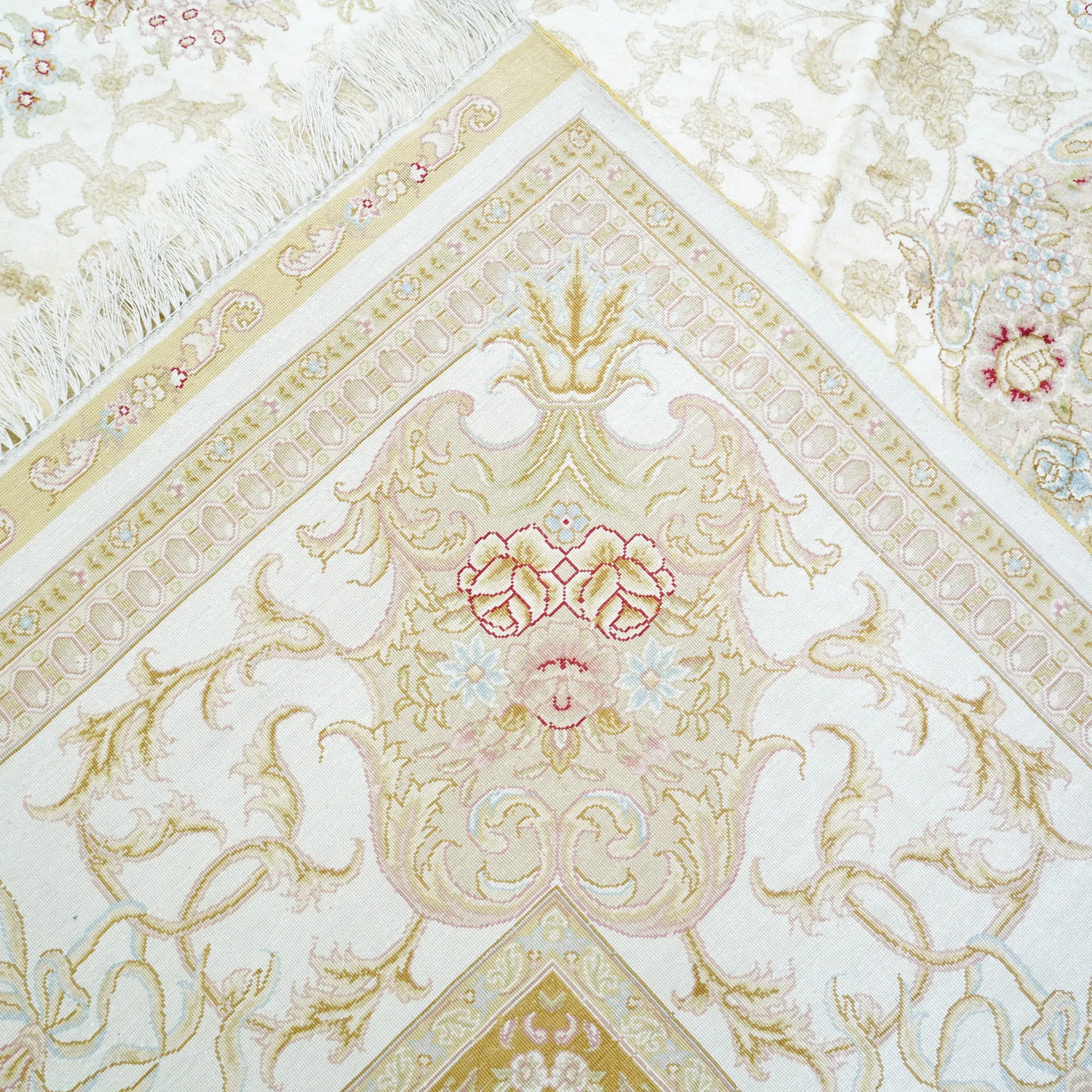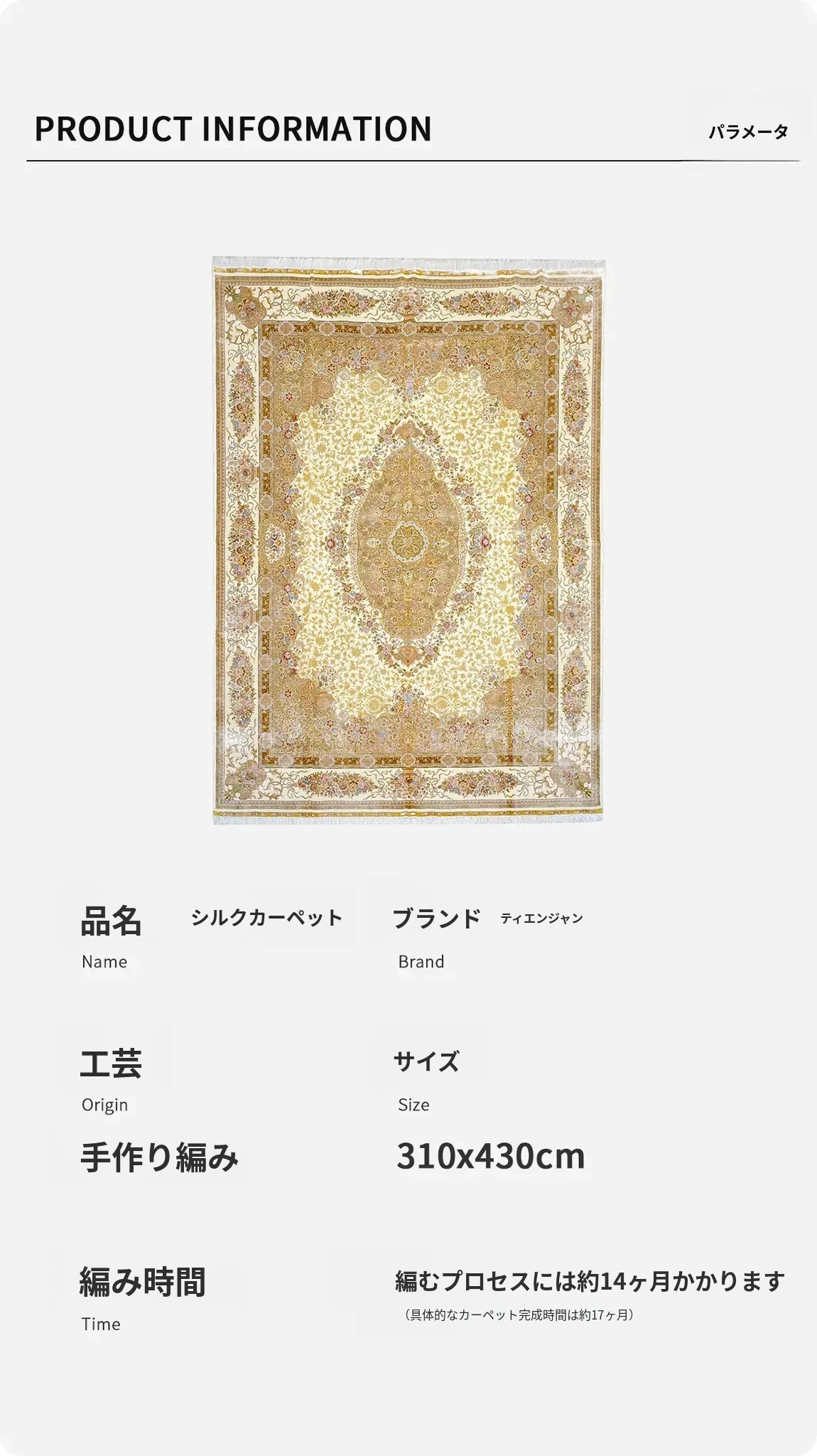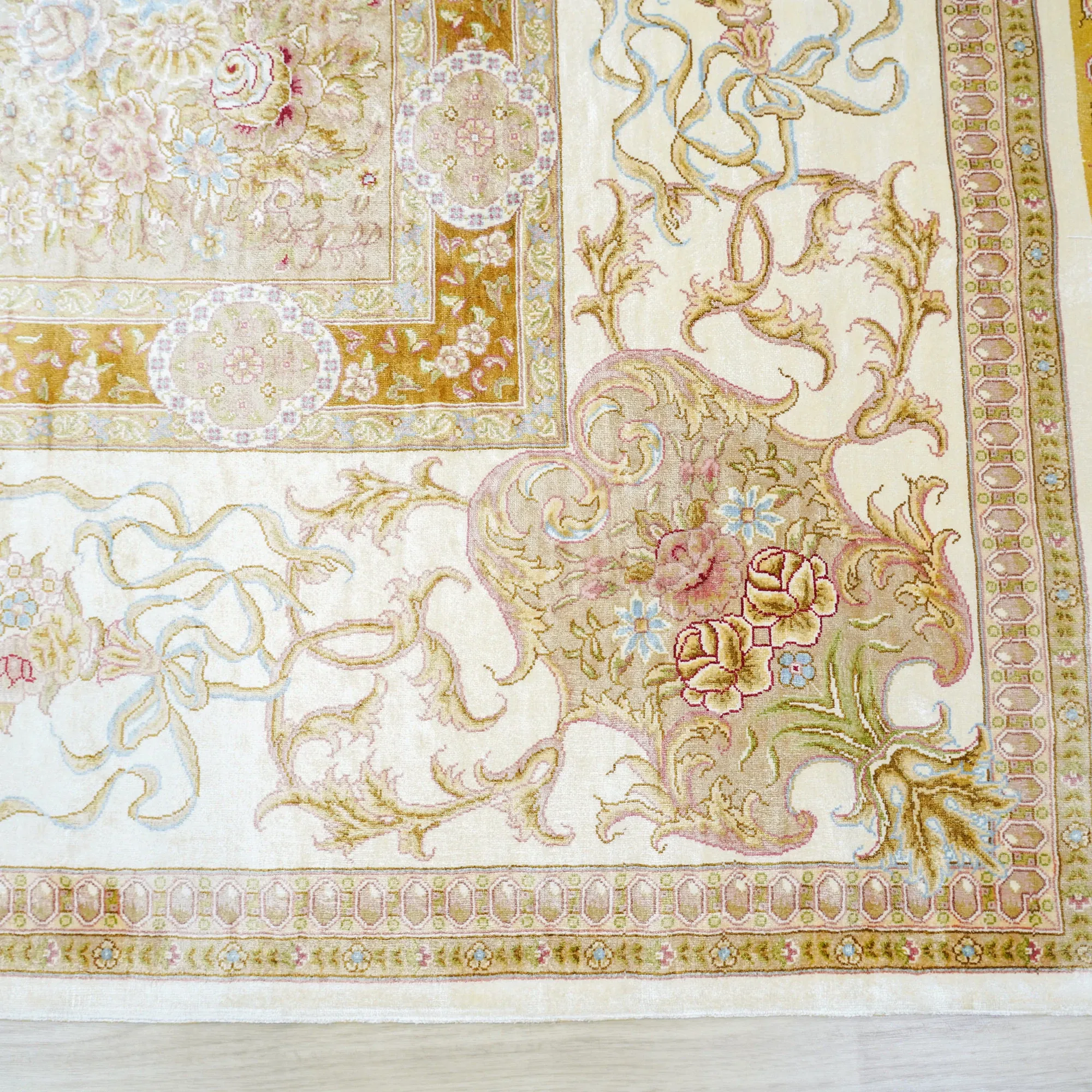 天匠手作の本真丝カーペット - 310x430cmのビンテージ風ミルクイエロー、欧米スタイルの高級ヴィラにぴったりのラグ。優雅なデザインで、居心地の良い空間を演出します。