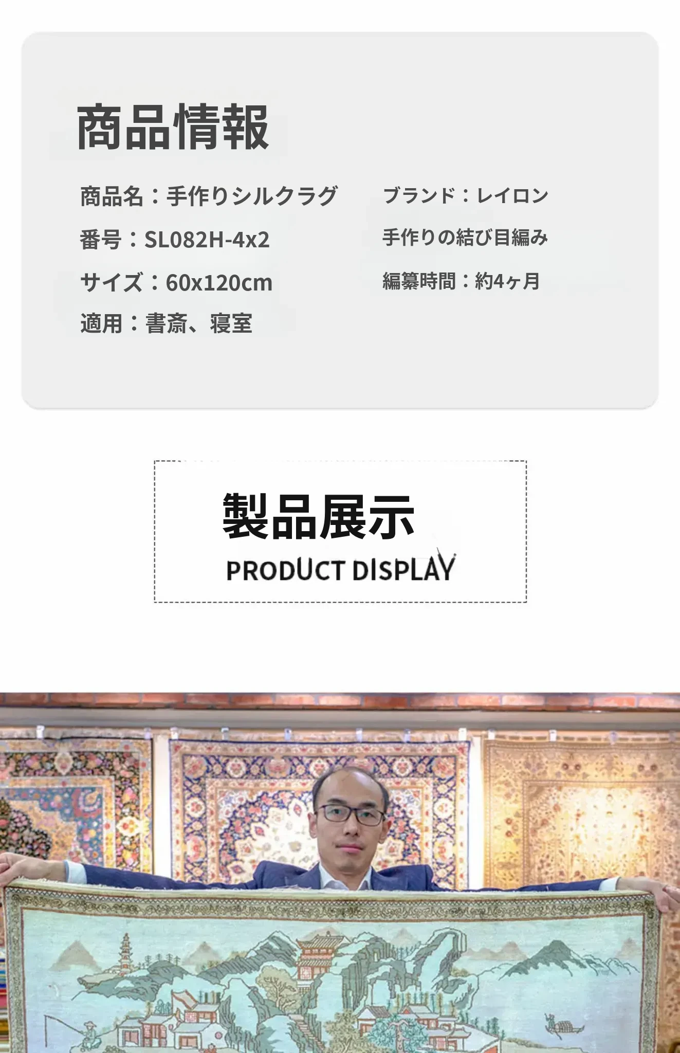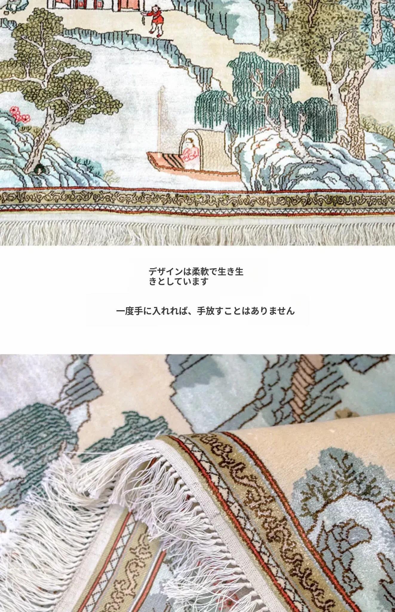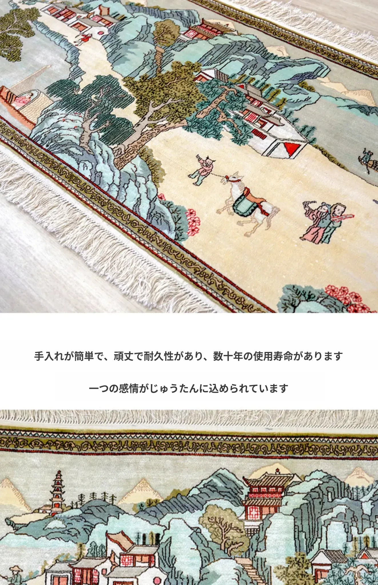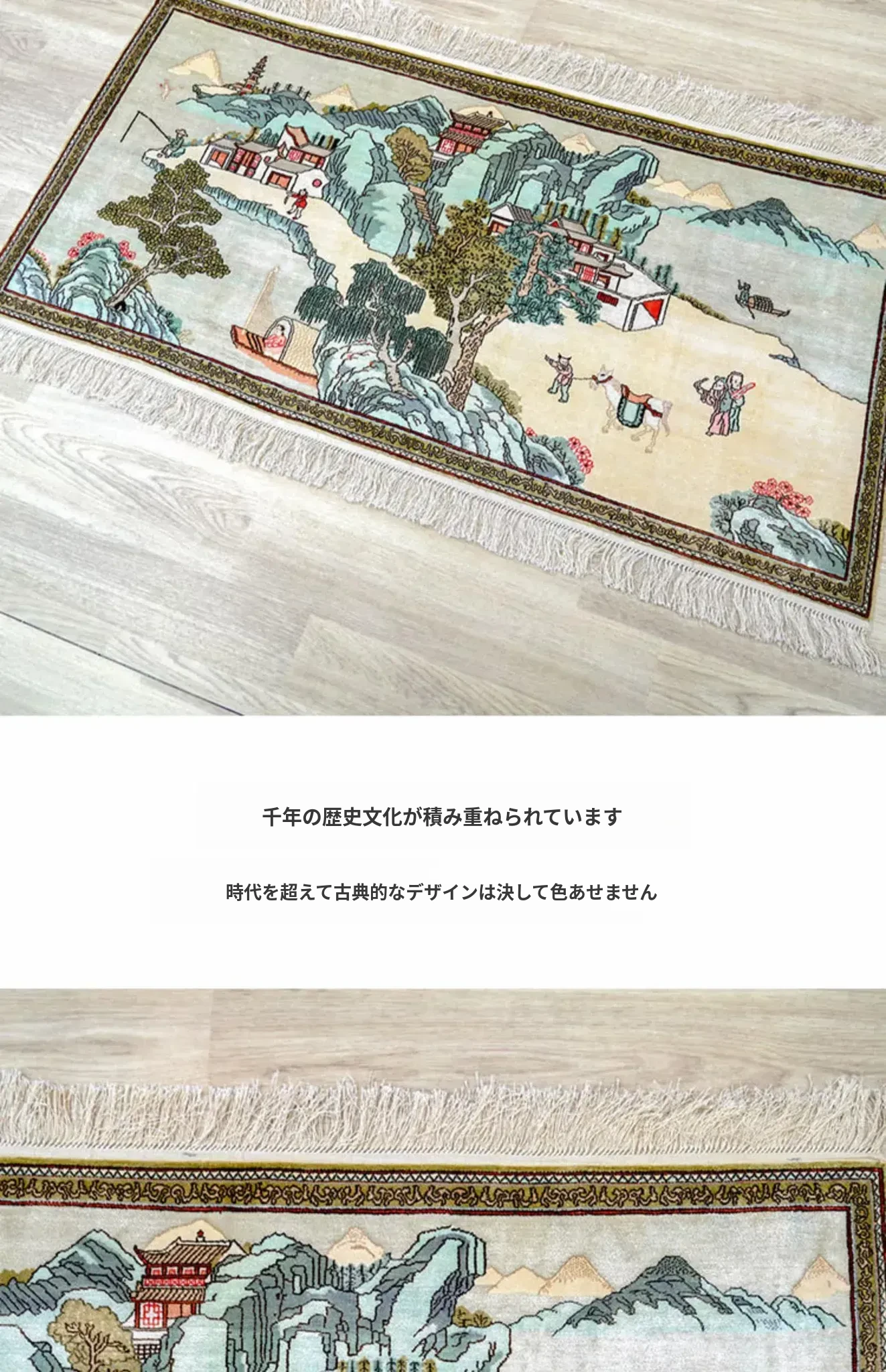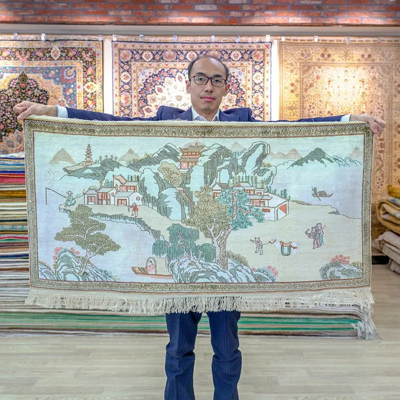 天匠シルクカーペット 60x120cm 風景柄 ナチュラルスタイル 手作りカーペット・ウォールアートでお部屋を彩る!高級感あふれるデザインで、温かみのある空間を演出します。
