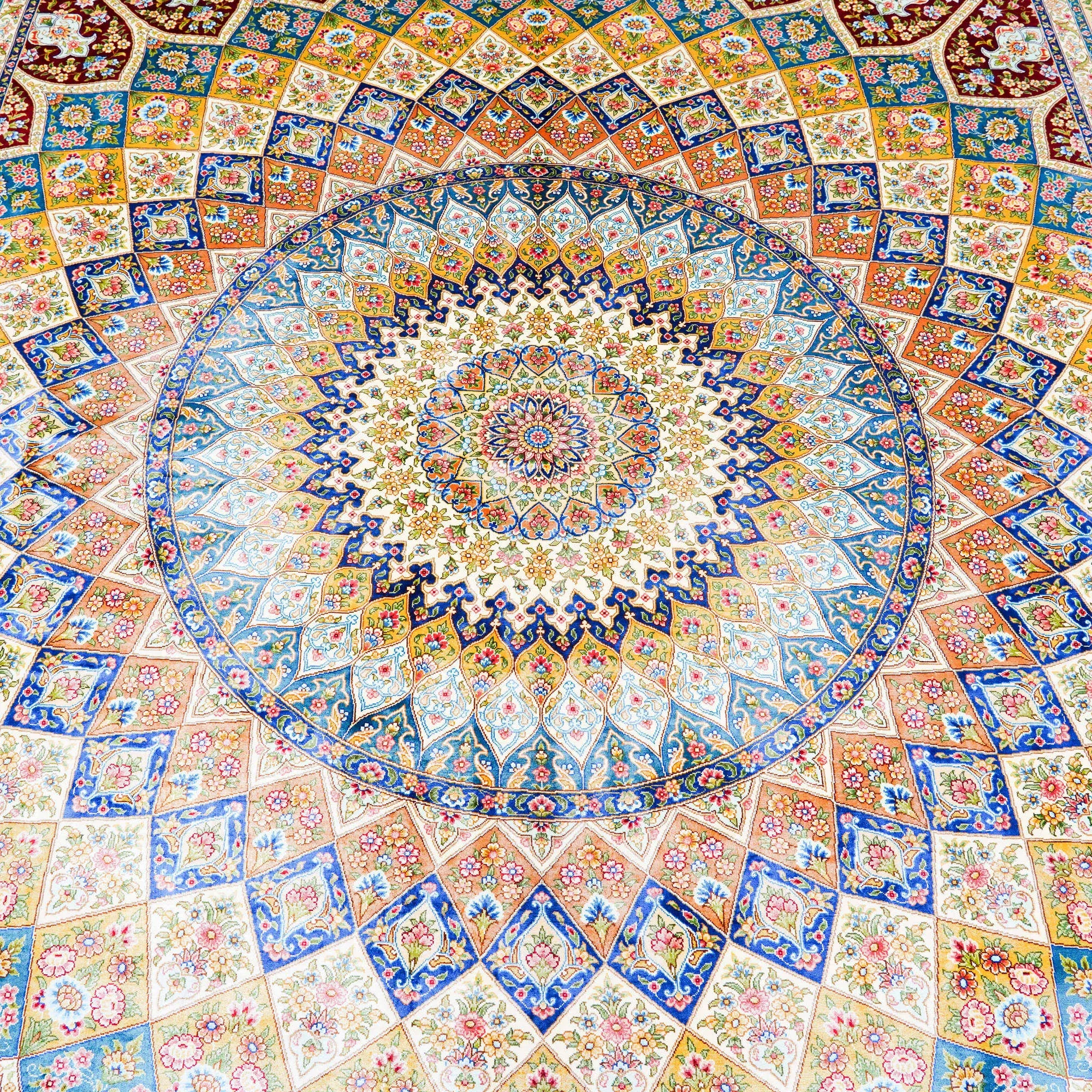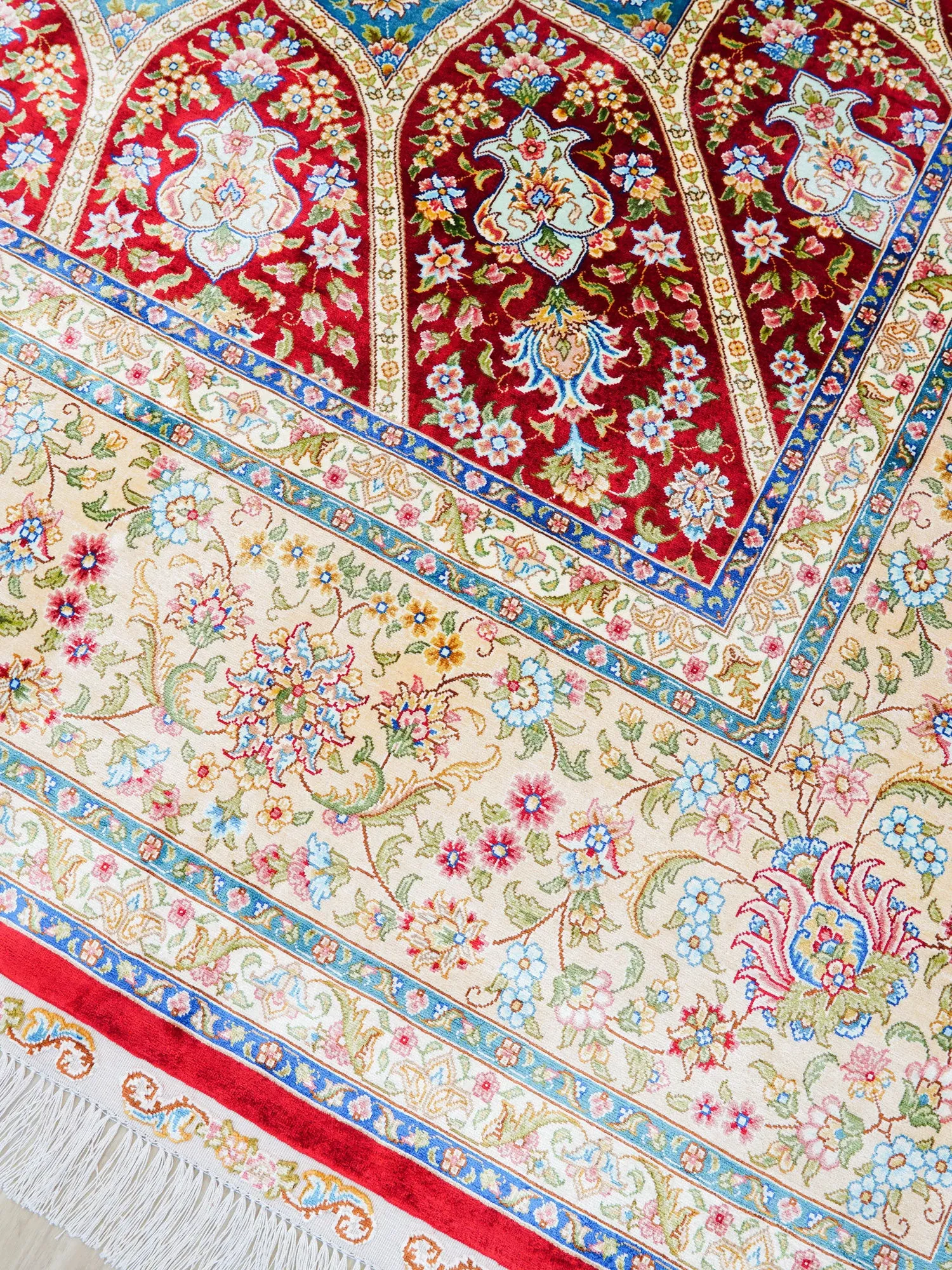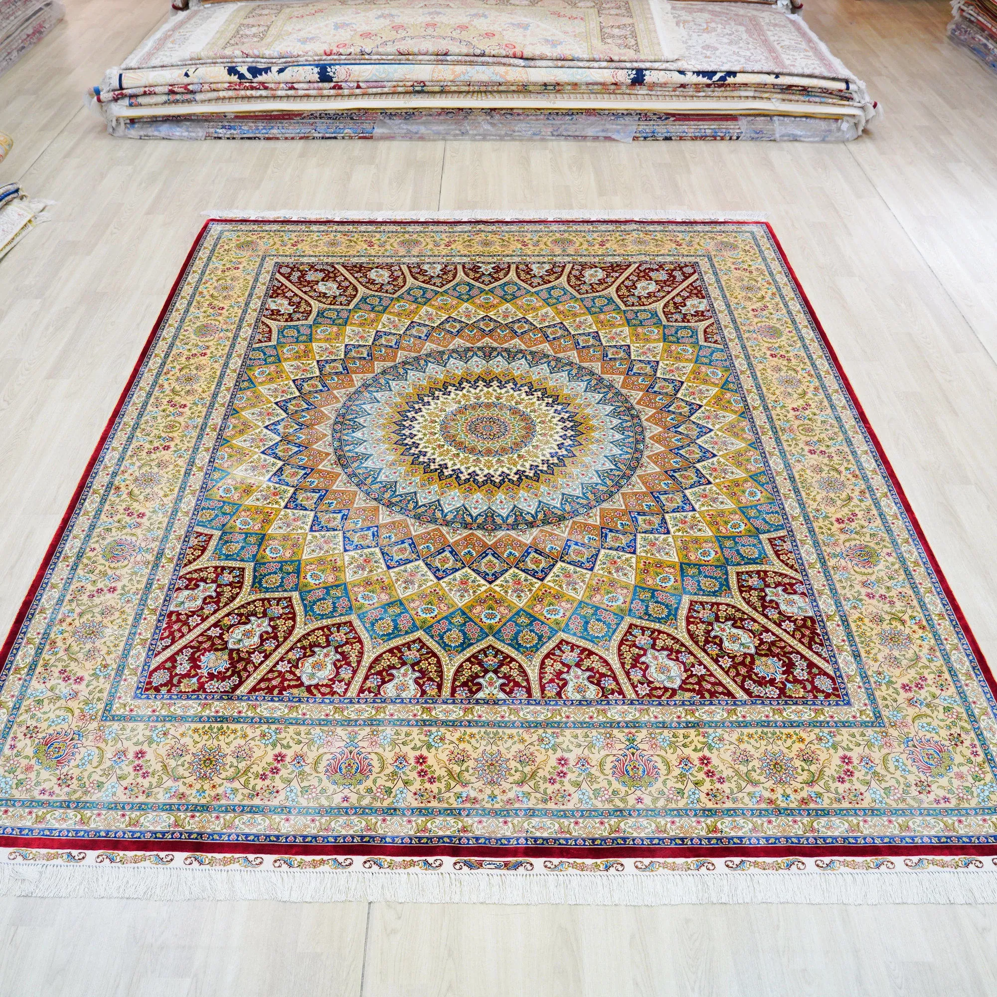 天匠の手作りシルクカーペット - クラシックなペルシャデザインの高級寝室用手織りカーペット 240x310cm。贅沢な肌触りと美しいデザインで、あなたのインテリアに華やかさをプラスします。