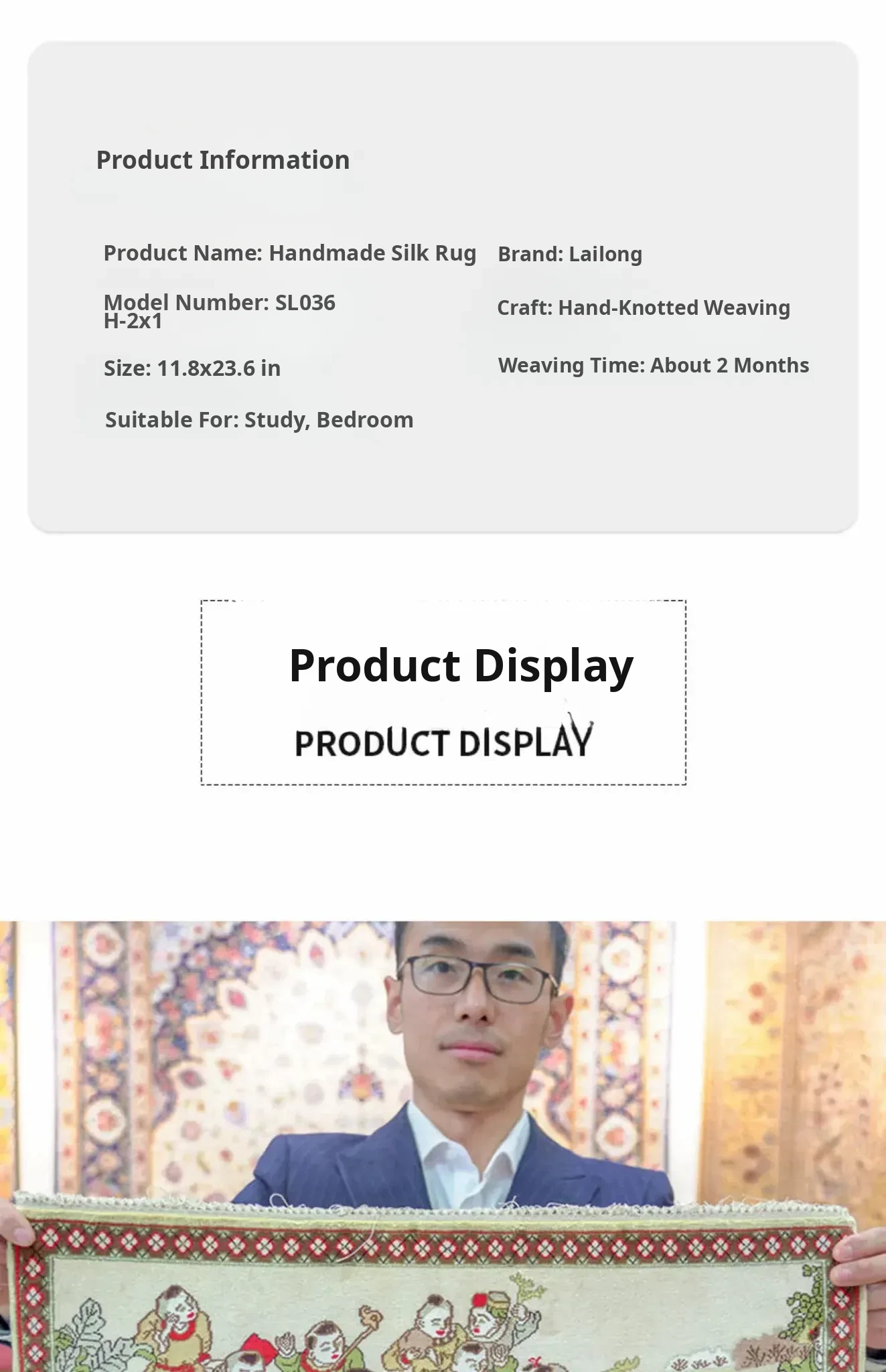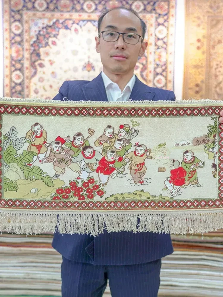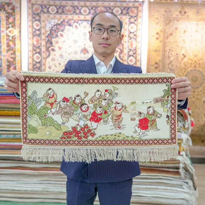 Tianjiang Handmade Silk Tapestry Carpet - 30x60cm Decorative Wall Hanging & Play Mat for Infants - Unique Knotted Design for Stylish Living Rooms
