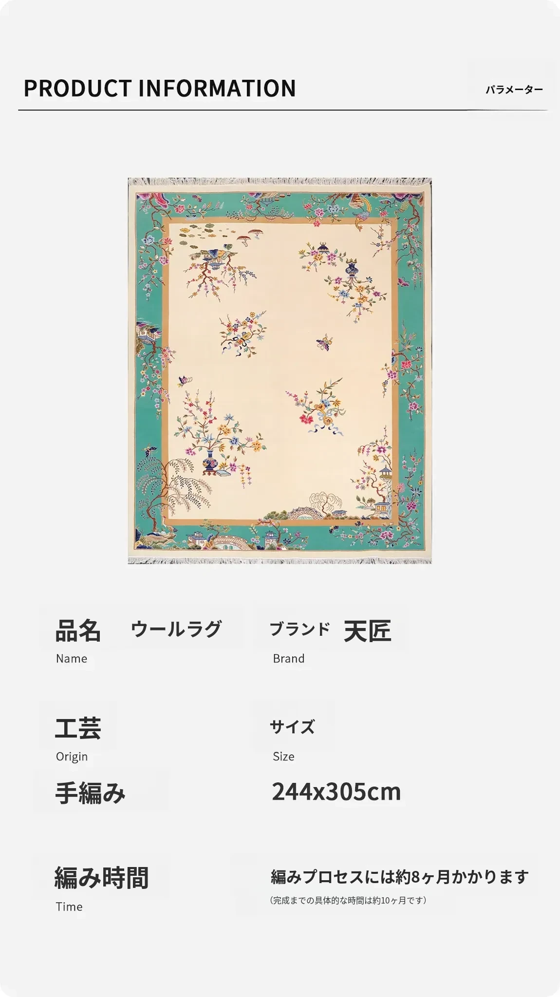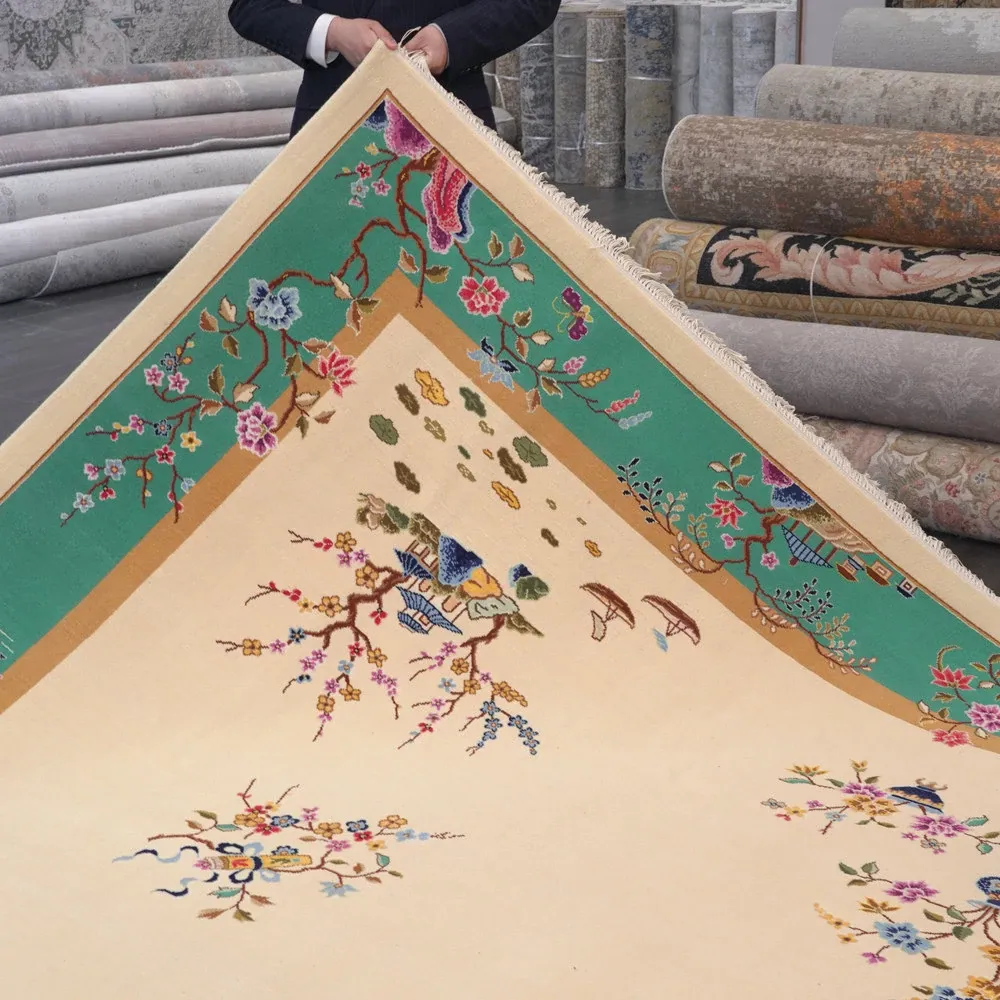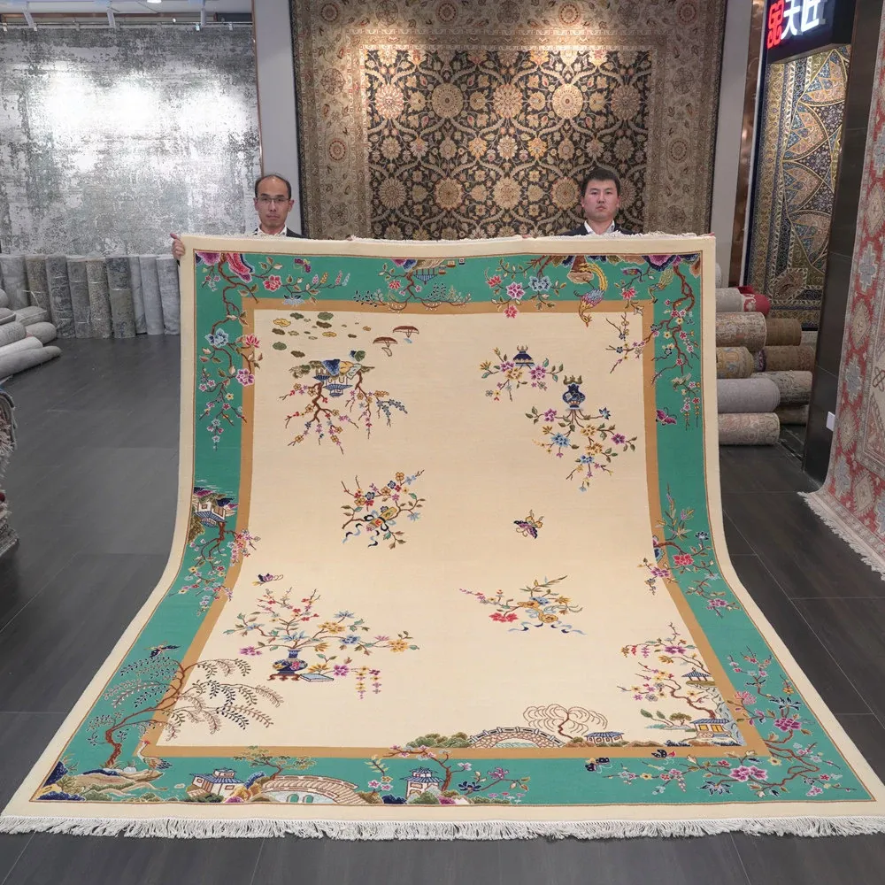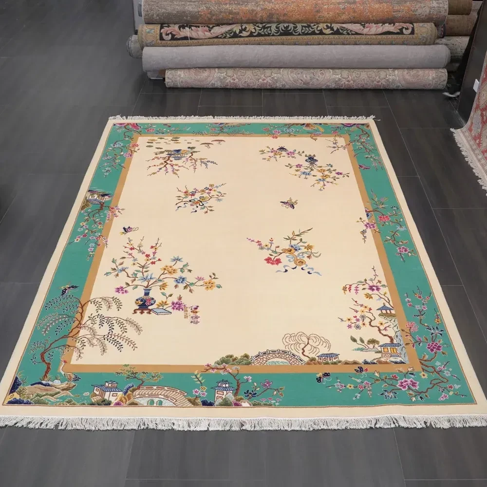 天匠手作 羊毛ラグ 新中式デザイン リビング・寝室用 手織りラグ 244x305cm - 温かみのある手作りの美しさをお部屋に!