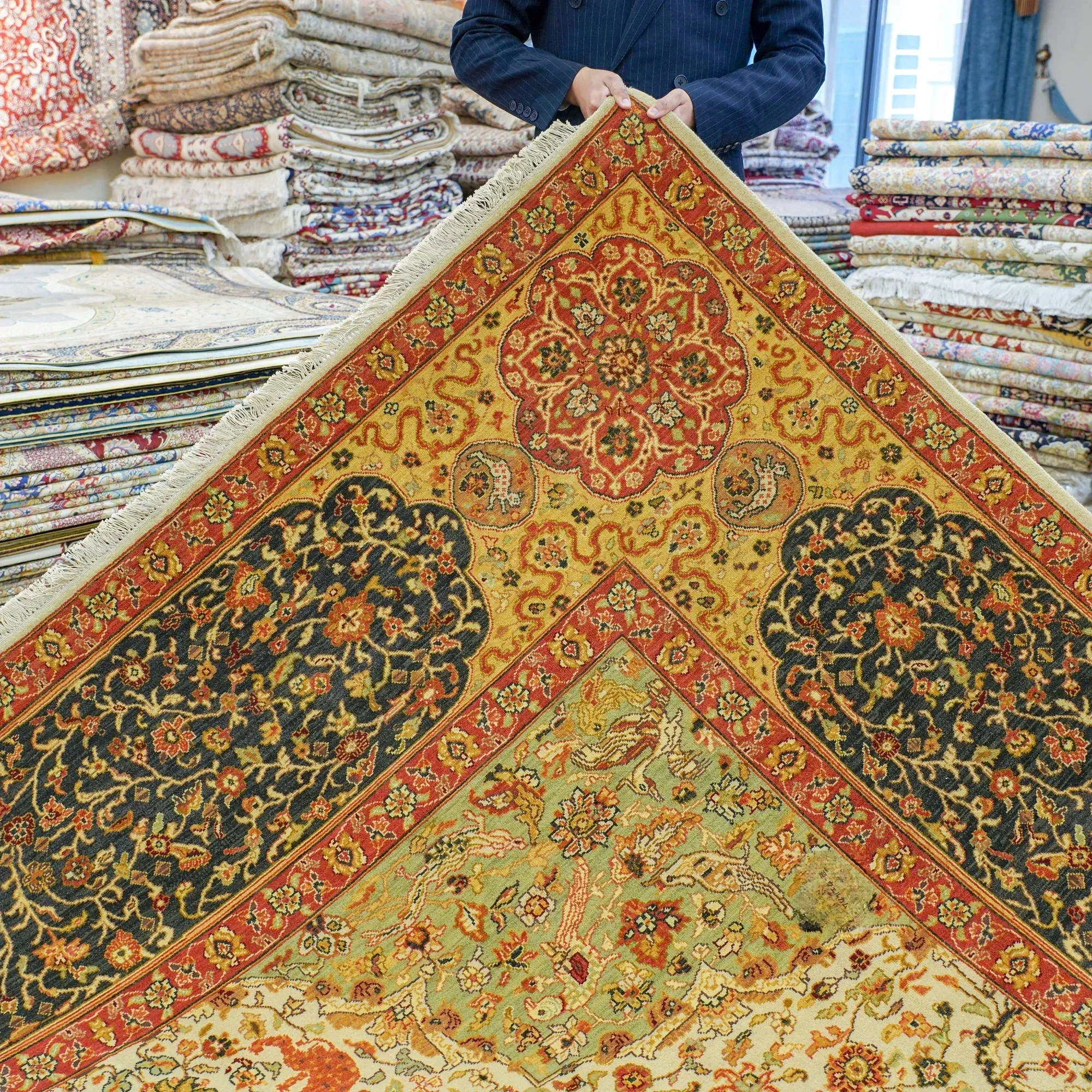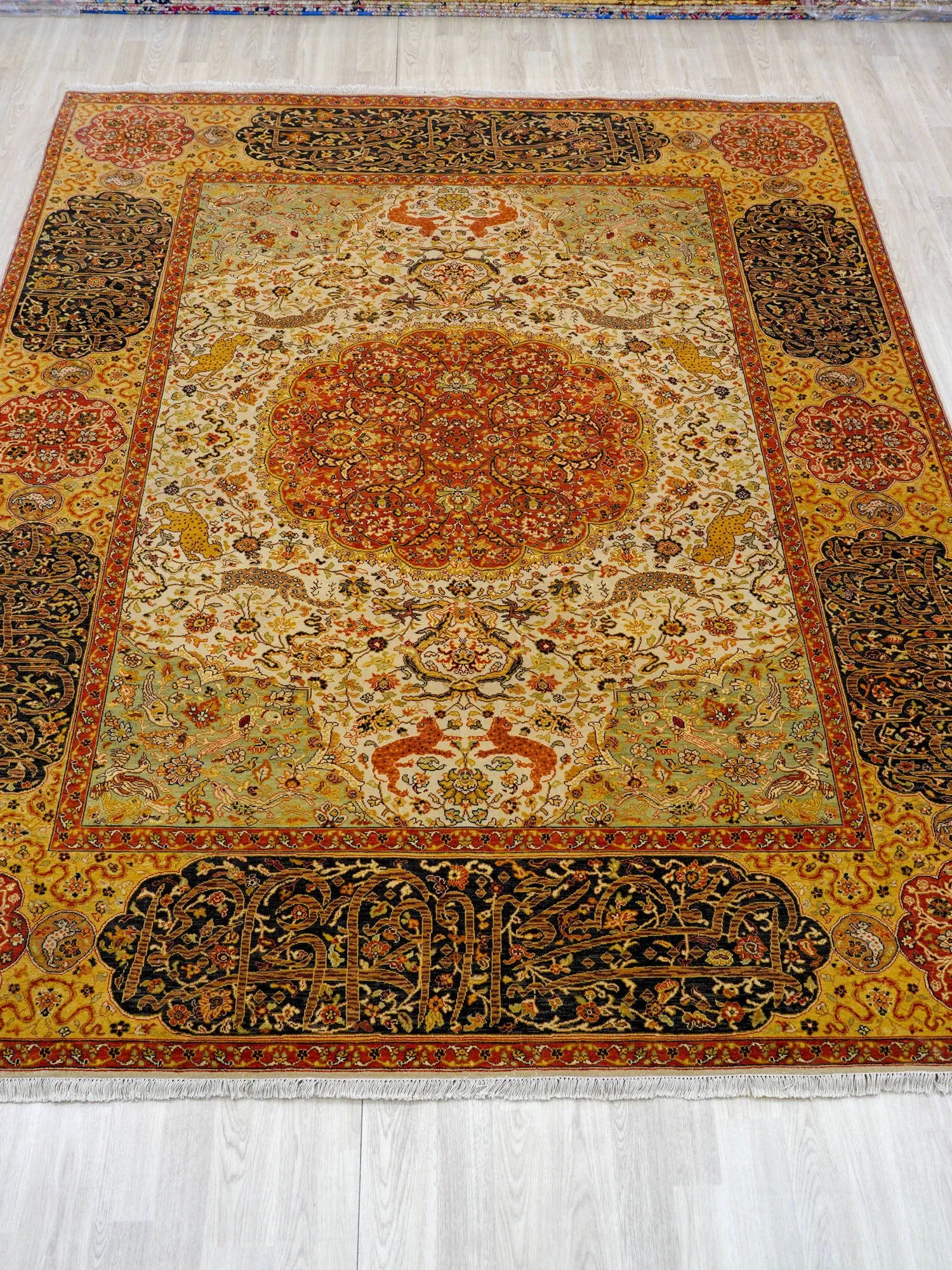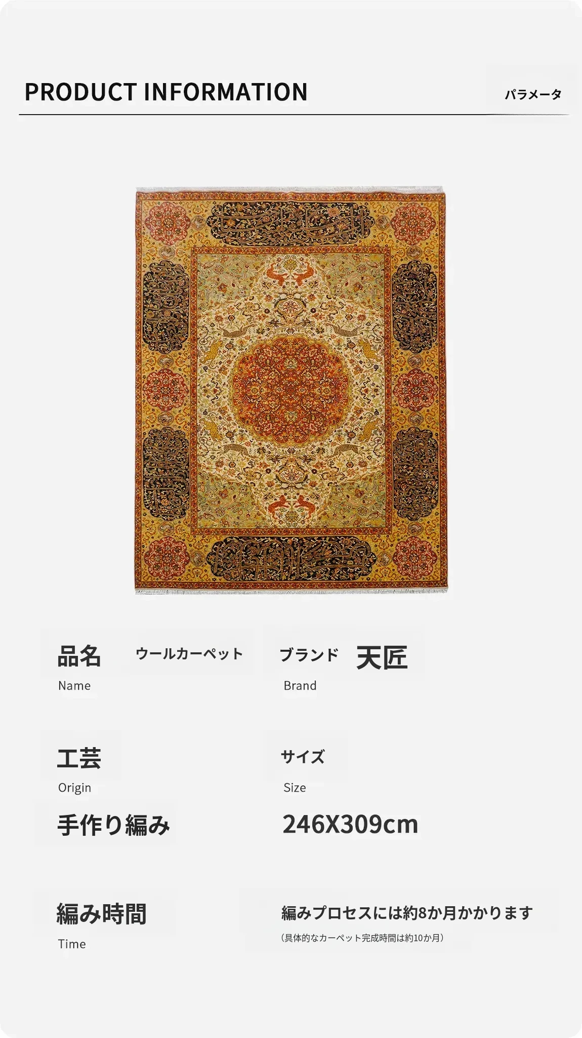 天匠の輸入手作りウールカーペット - デザイナー推奨の高級リビングルーム用カーペット、246x309cmでお部屋を華やかに演出!