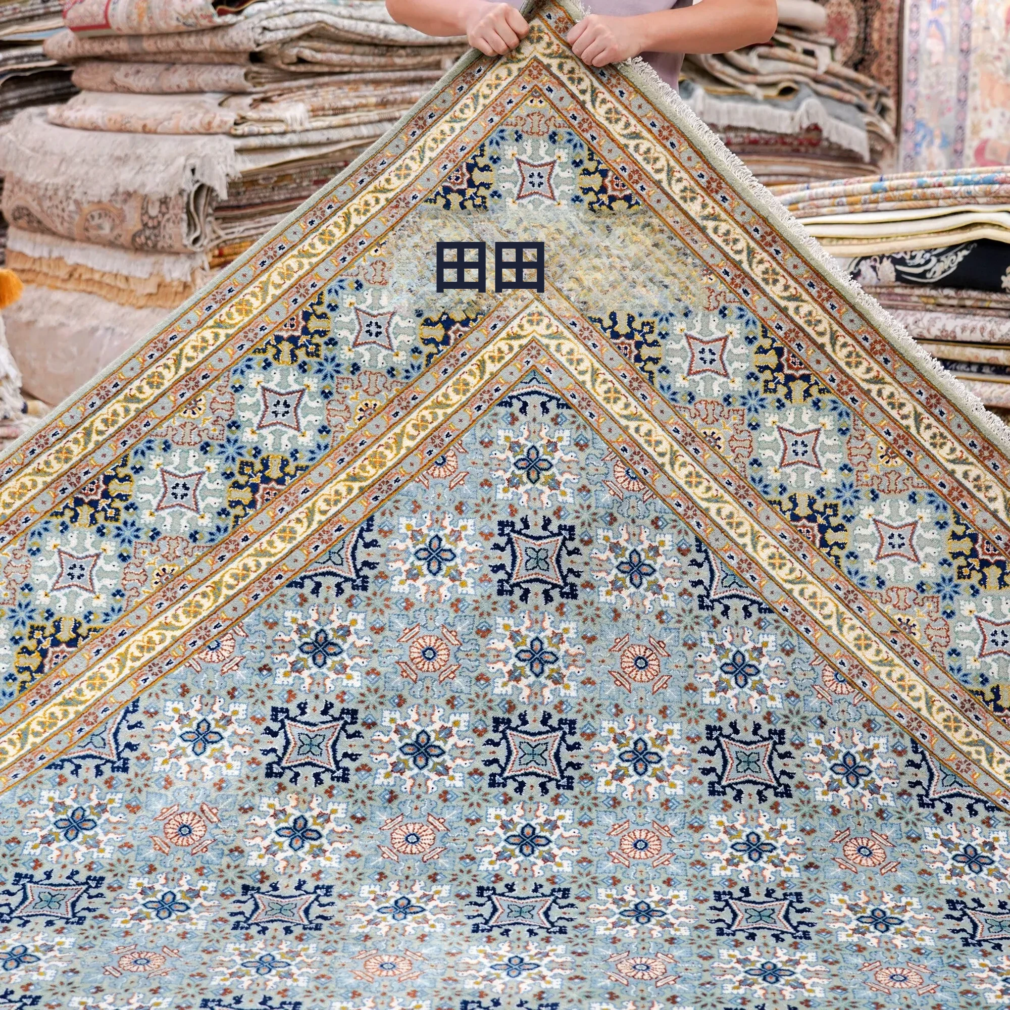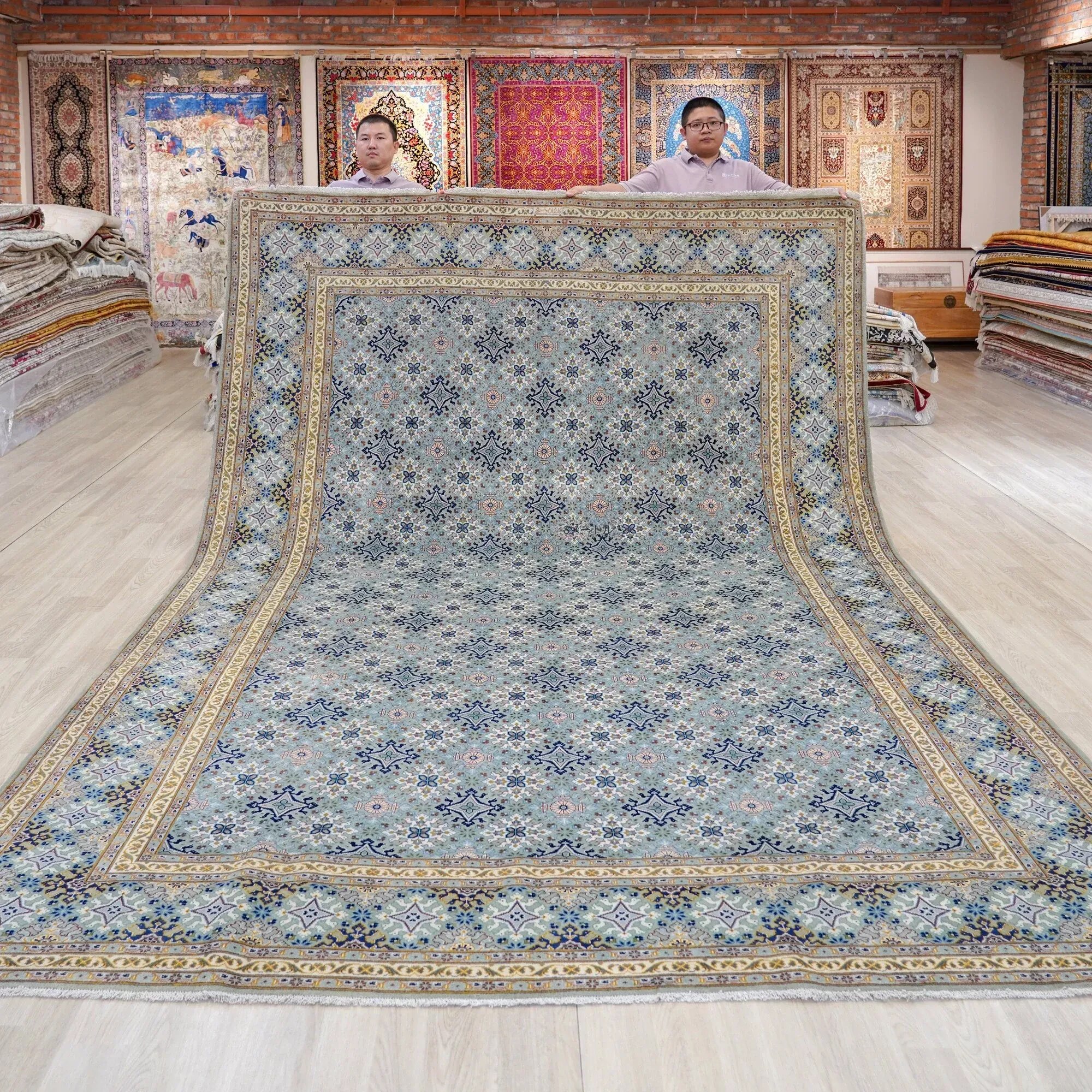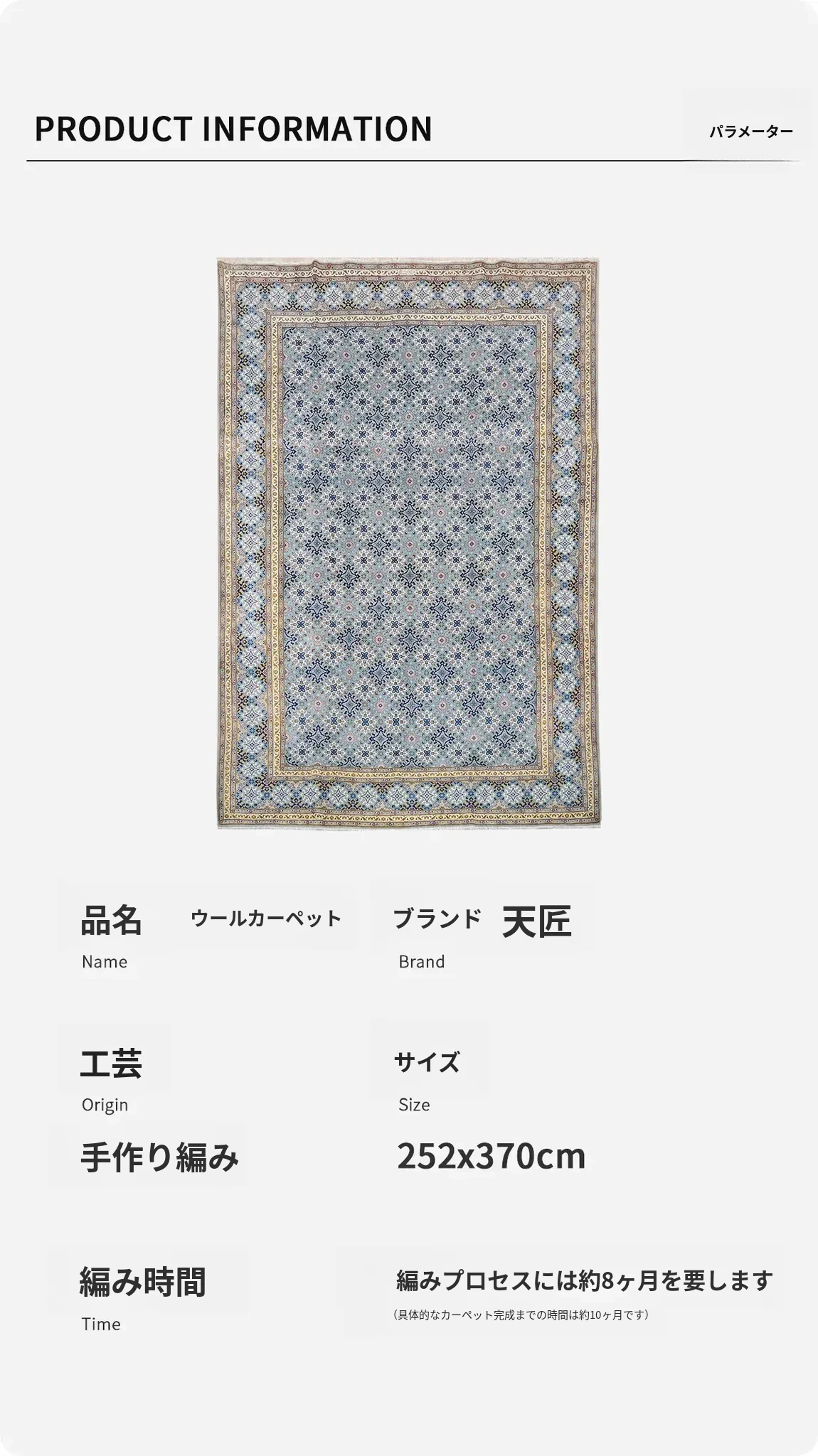天匠インポート手作りウールカーペット - フォルムが美しいイランのクラシックデザイン、ホルムアルデヒドゼロ、汚れに強い、広々とした252x370cmサイズでリビングルームを優雅に演出!