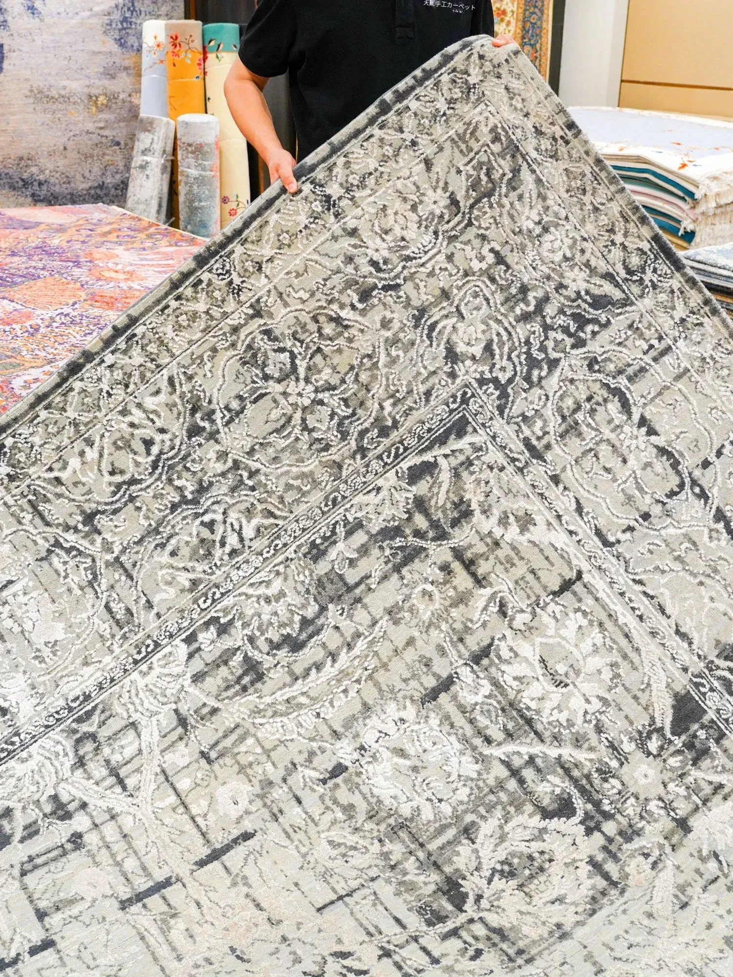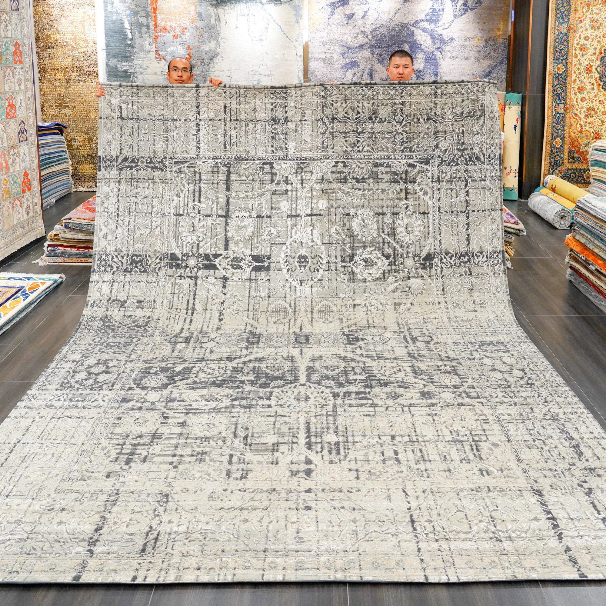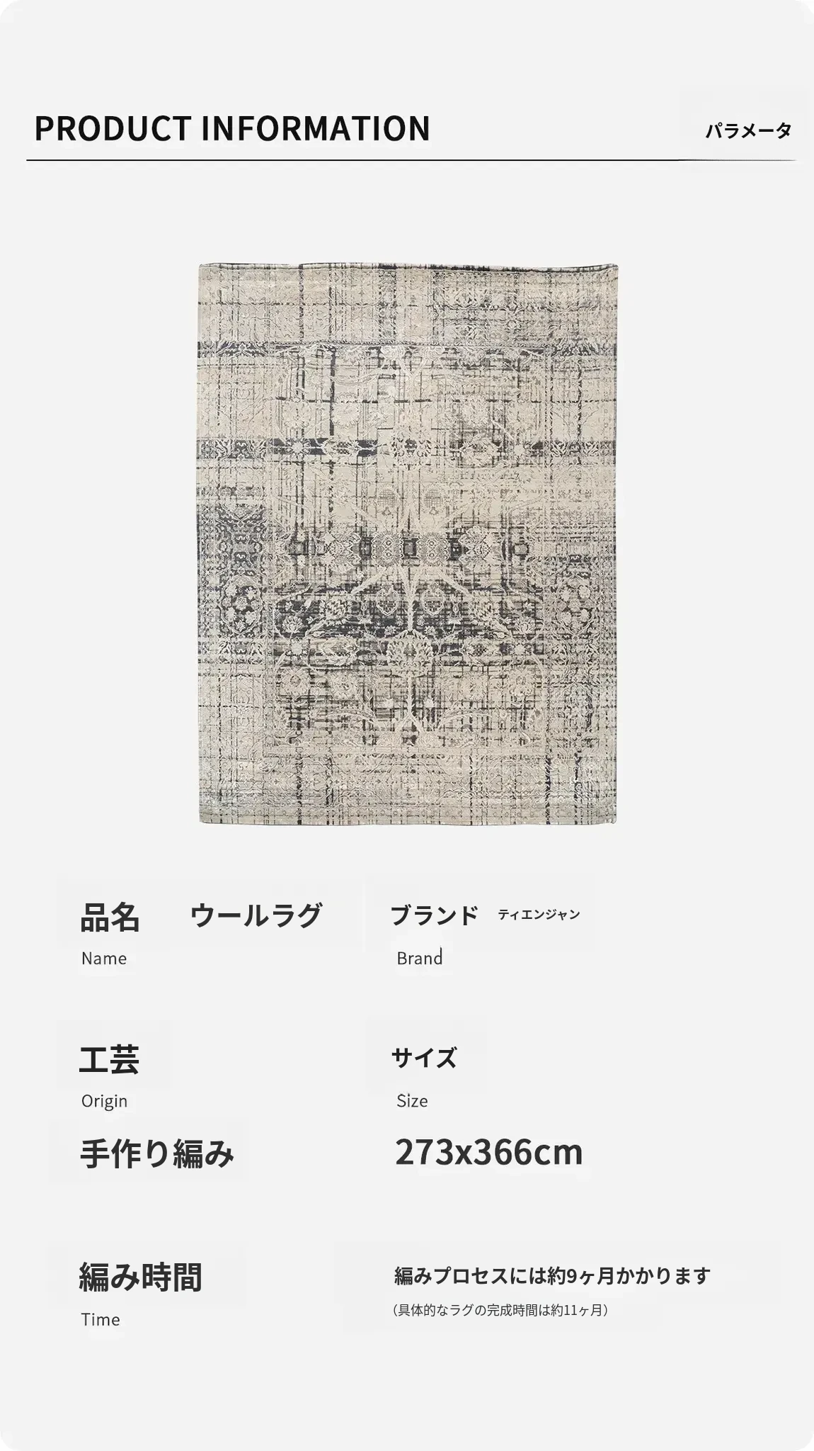 天匠の輸入手作りウールカーペット - モダン抽象デザイン、ヴィラや寝室にぴったりの万能ラグ(273x366cm)!高品質で温かみのある素材で、居心地の良い空間を演出します。