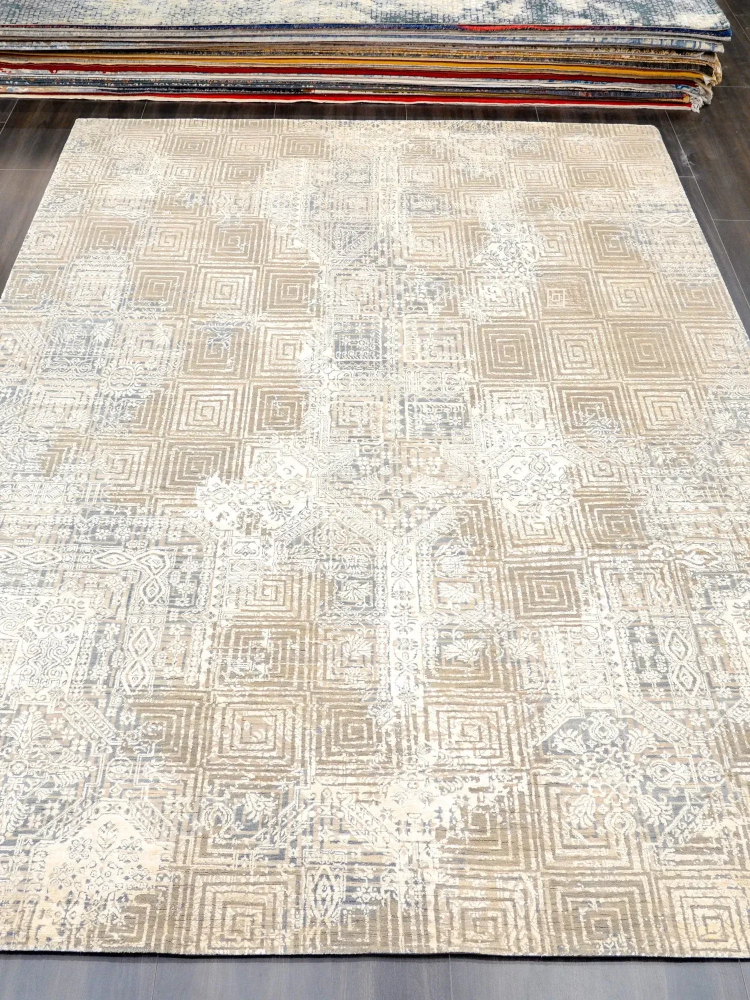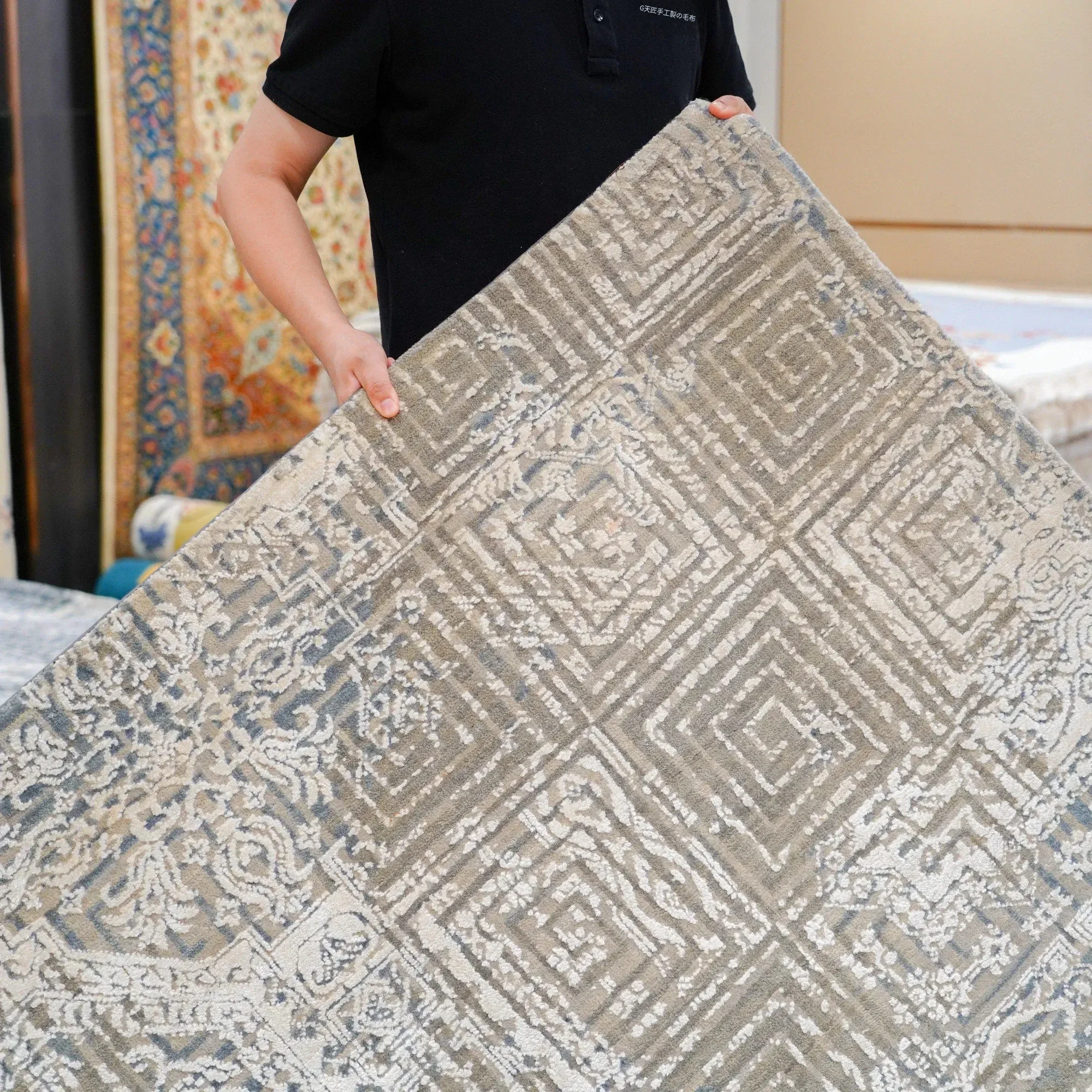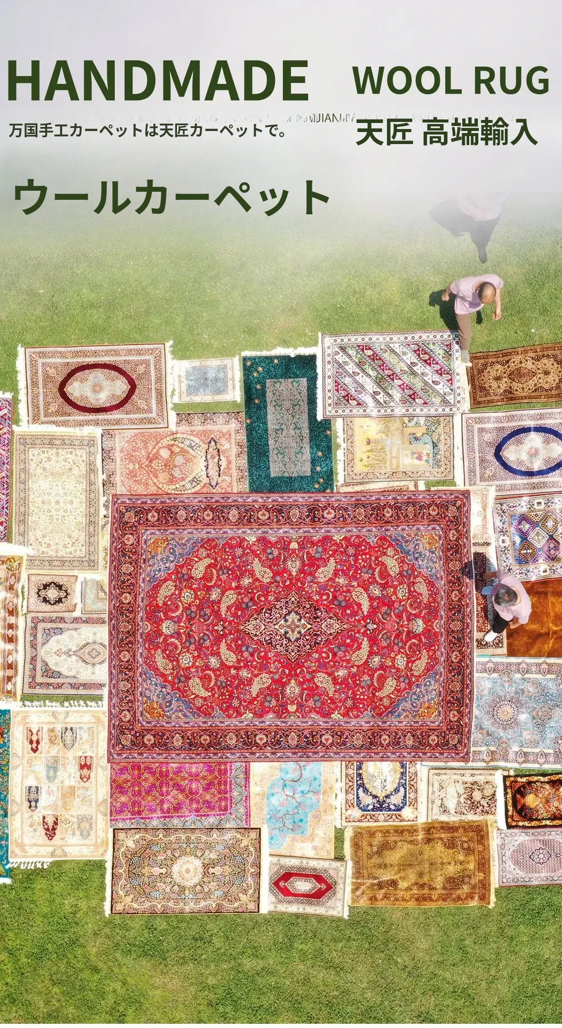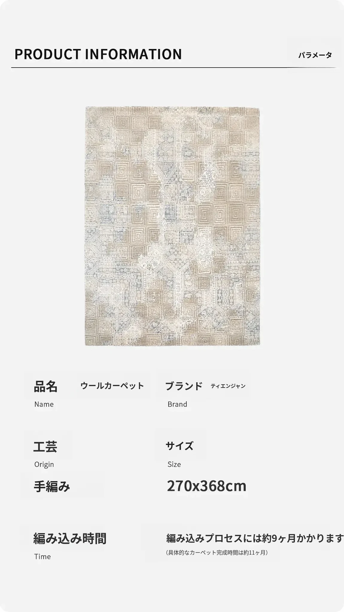 天匠インポートハンドメイドウールラグ - モダンな侘寂スタイル、どんな部屋にもぴったりの270x368cmサイズ!心地よい温もりと洗練されたデザインで、あなたの寝室を特別な空間に変えます。