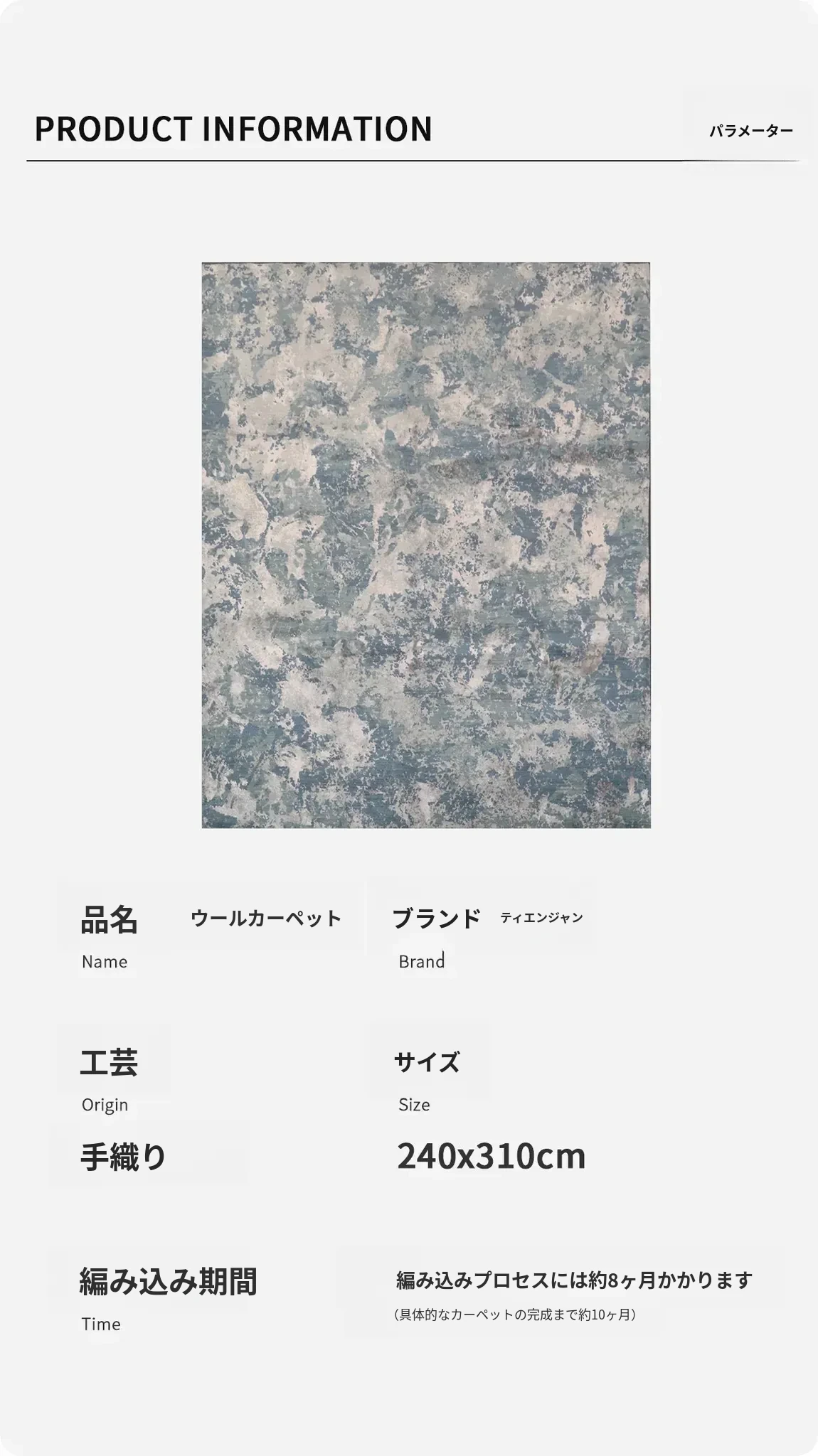 天匠の輸入手作りウールラグ - 2024年新作、寝室用ベッドサイドカーペット、手入れ簡単、240x310cmの広々サイズで快適さを提供!