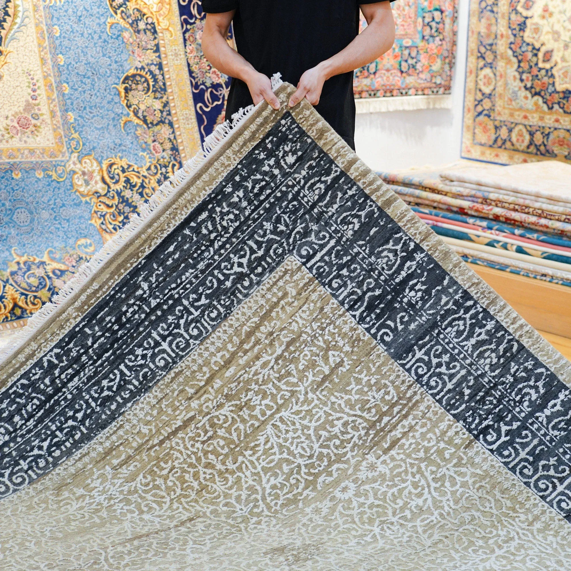 天匠輸入手作ウールラグ ベッドルーム用新作2024年版 お手入れ簡単 250x310cm