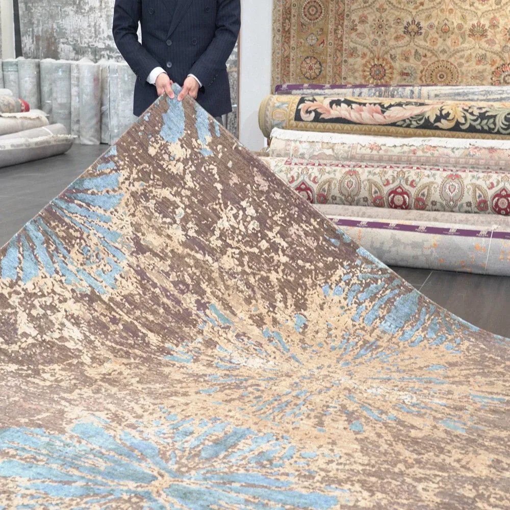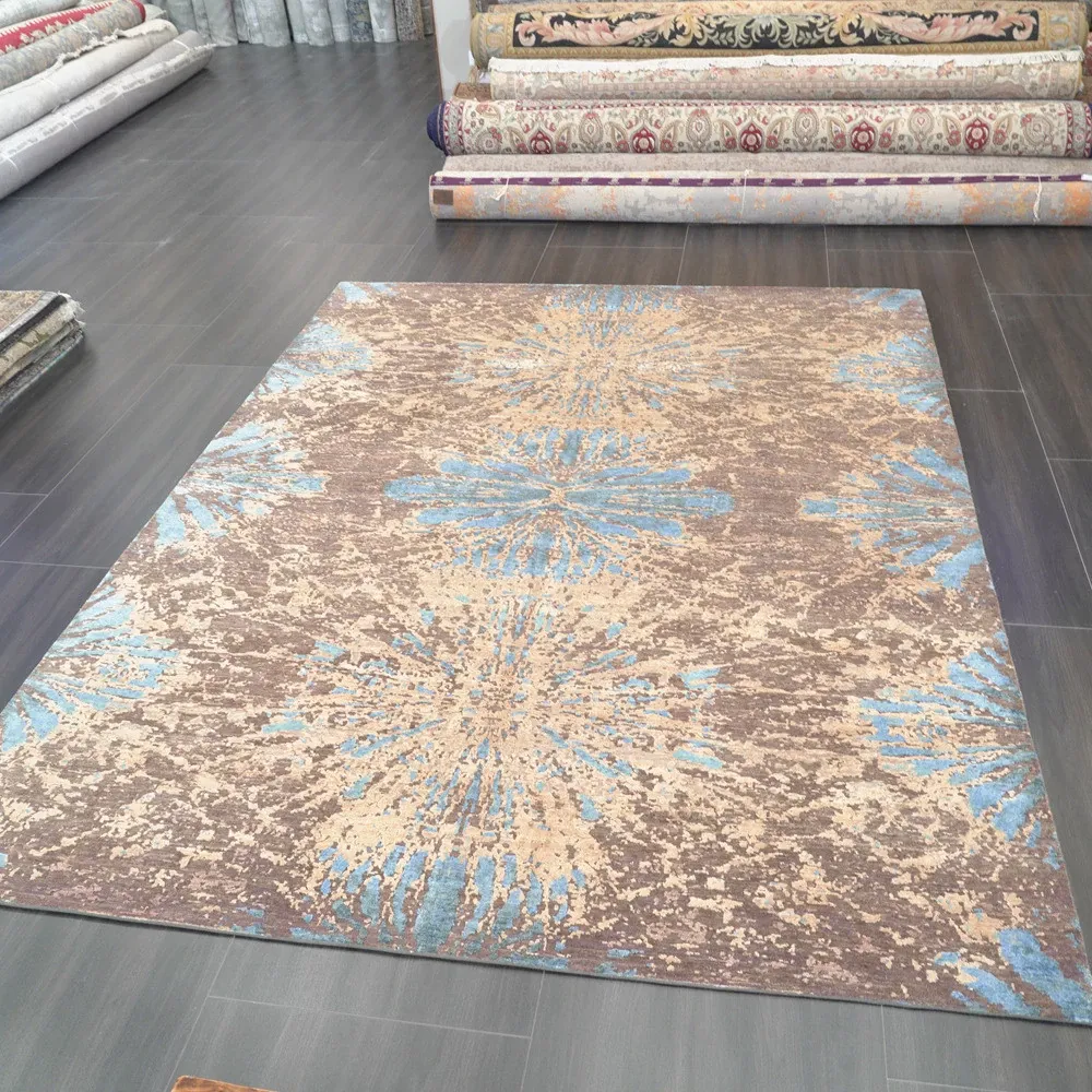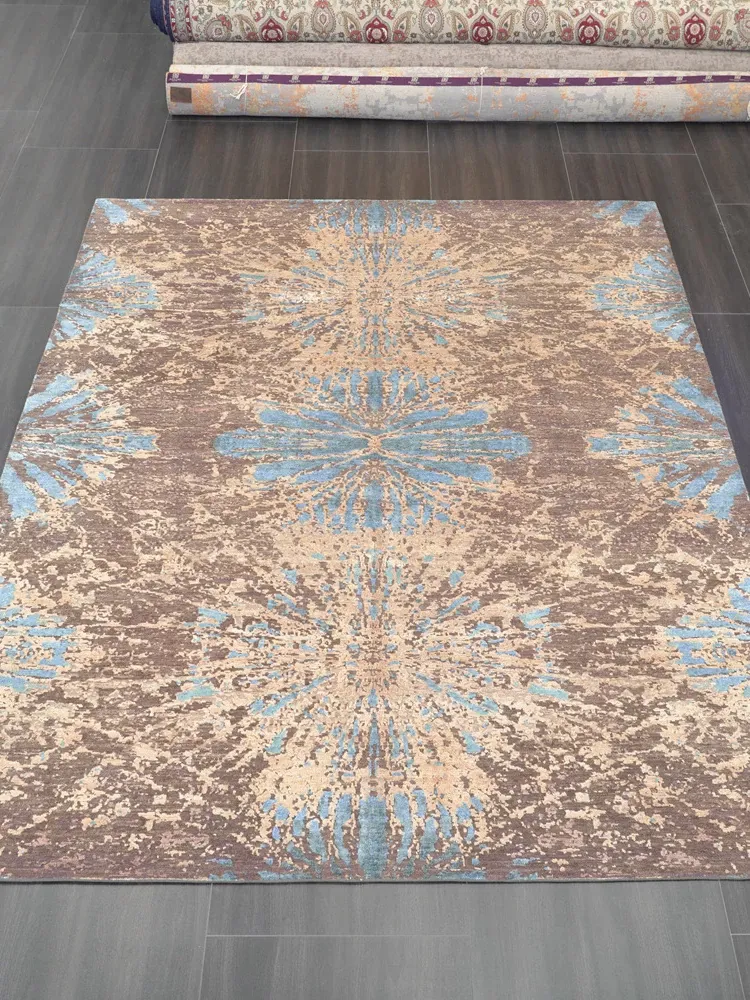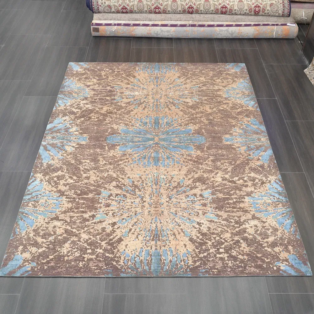 天匠の輸入手作りウールカーペット - 高級感あふれる抽象デザイン、240x310cmのリビングルーム用ラグで、お部屋を華やかに演出します!