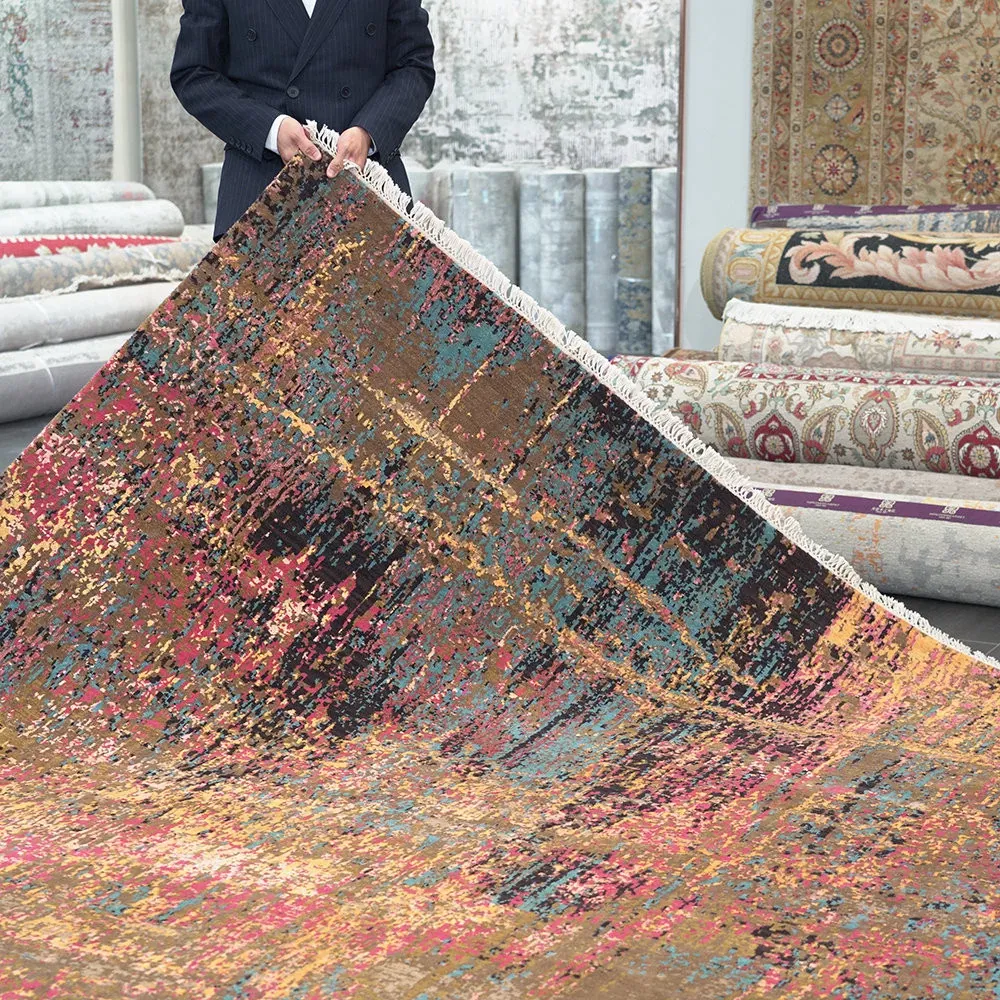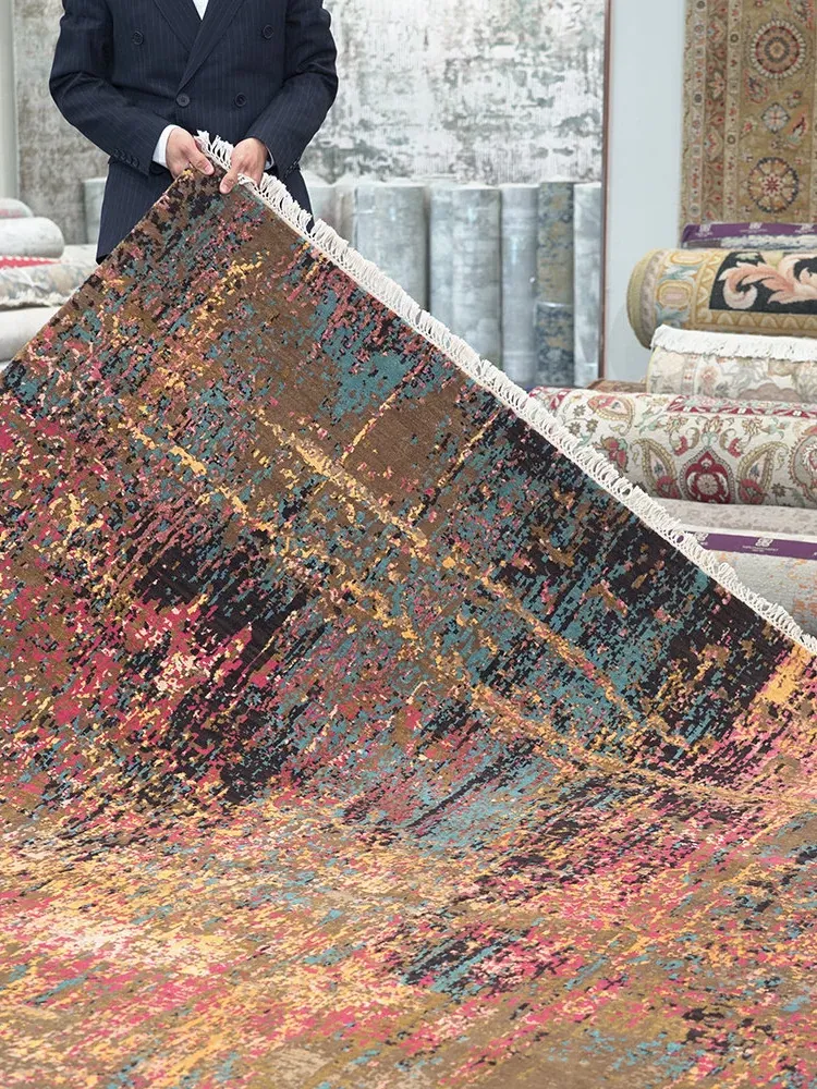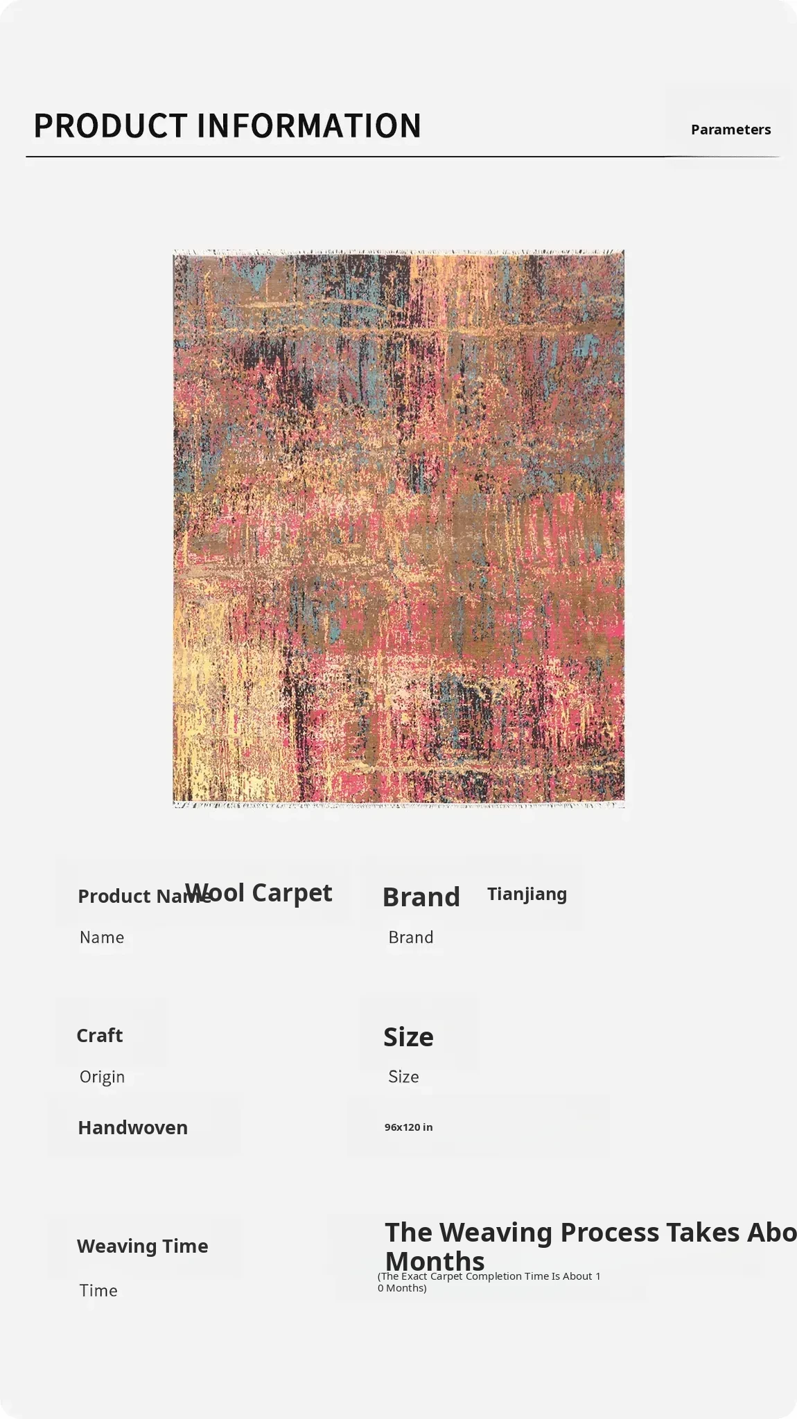 Tianjiang Imported Handmade Wool Area Rug - Abstract Style Thick Carpet for Villa Study Room, 244x305 cm - Elevate Your Space with Luxurious Comfort and Unique Design!