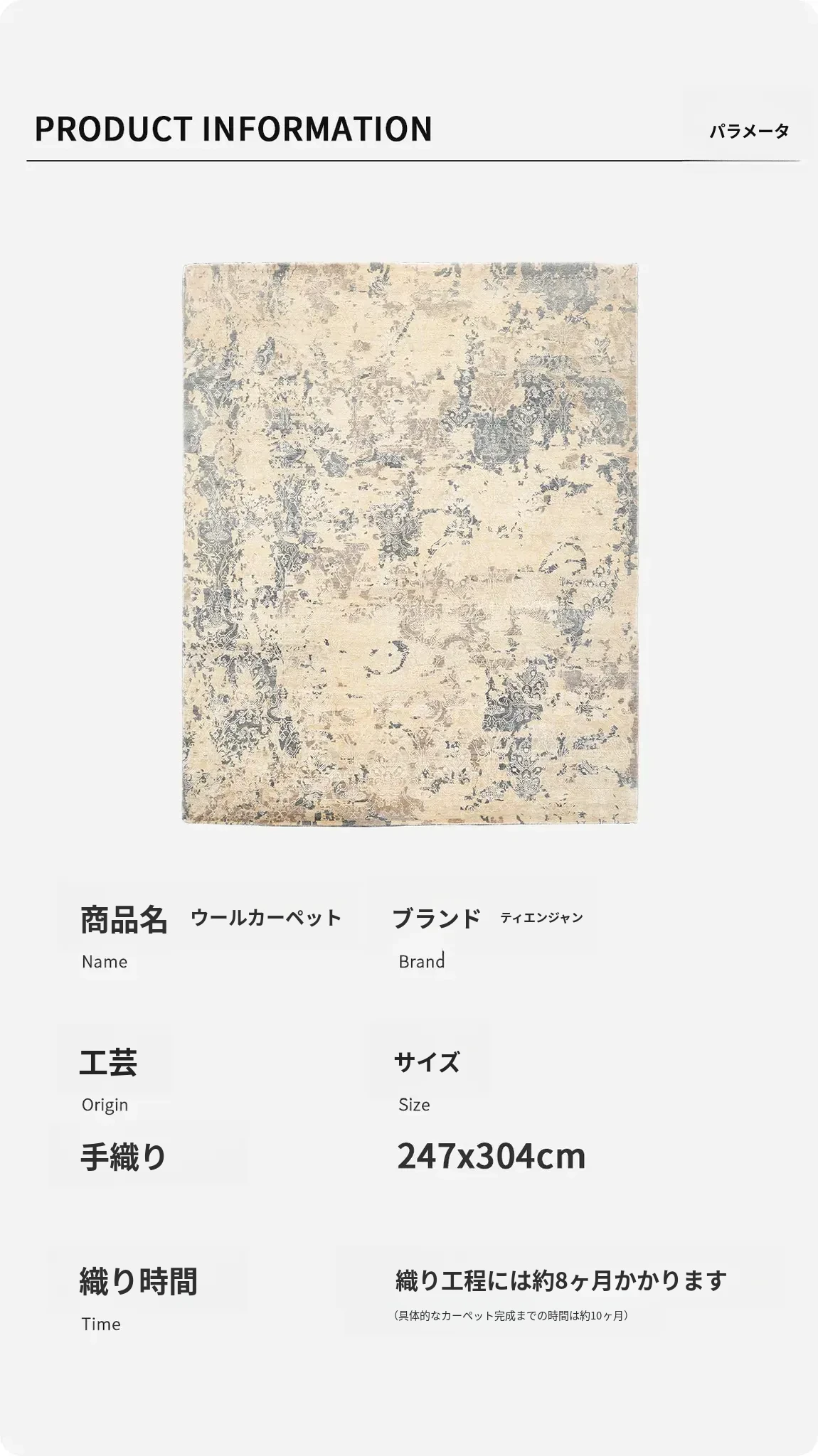 天匠インポート手作りウールカーペット ヴィラの書斎にぴったり!デザイナー推奨のマルチユースカーペット 247x304cm
