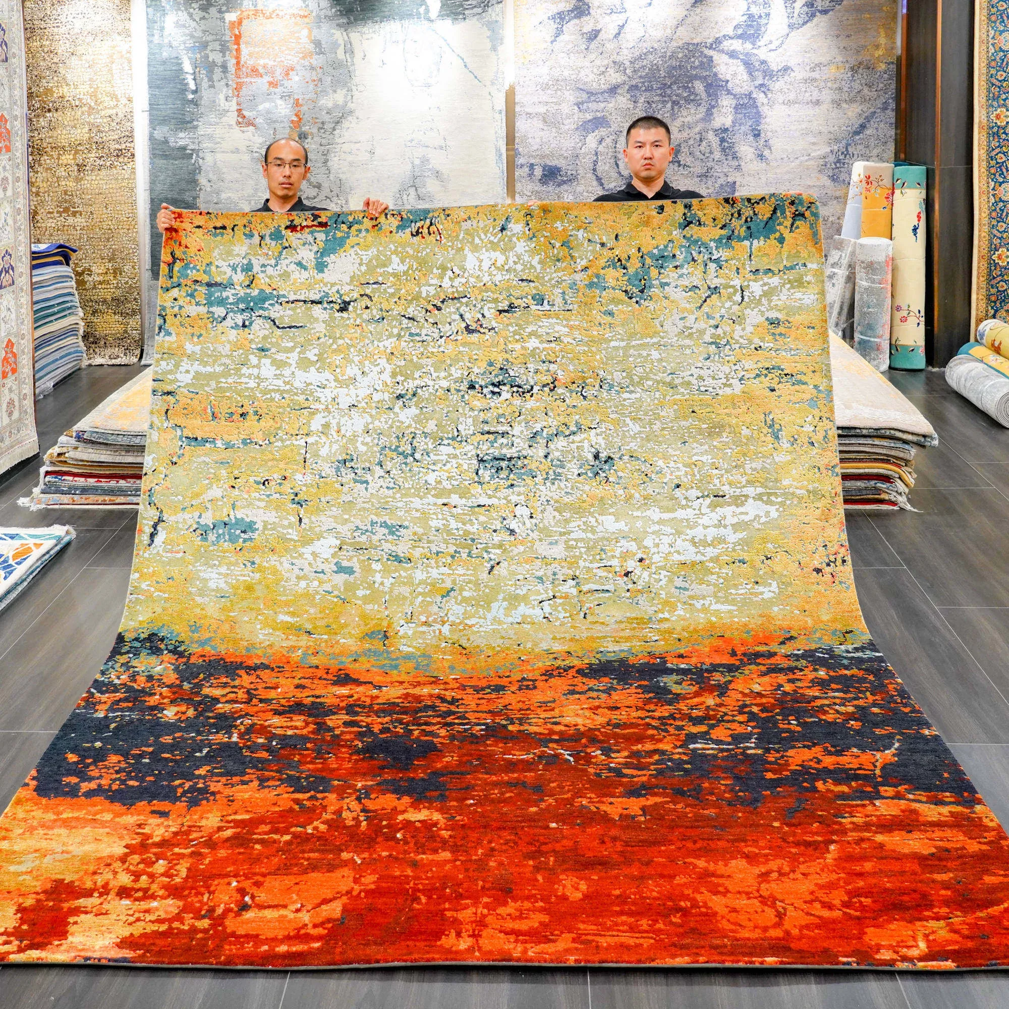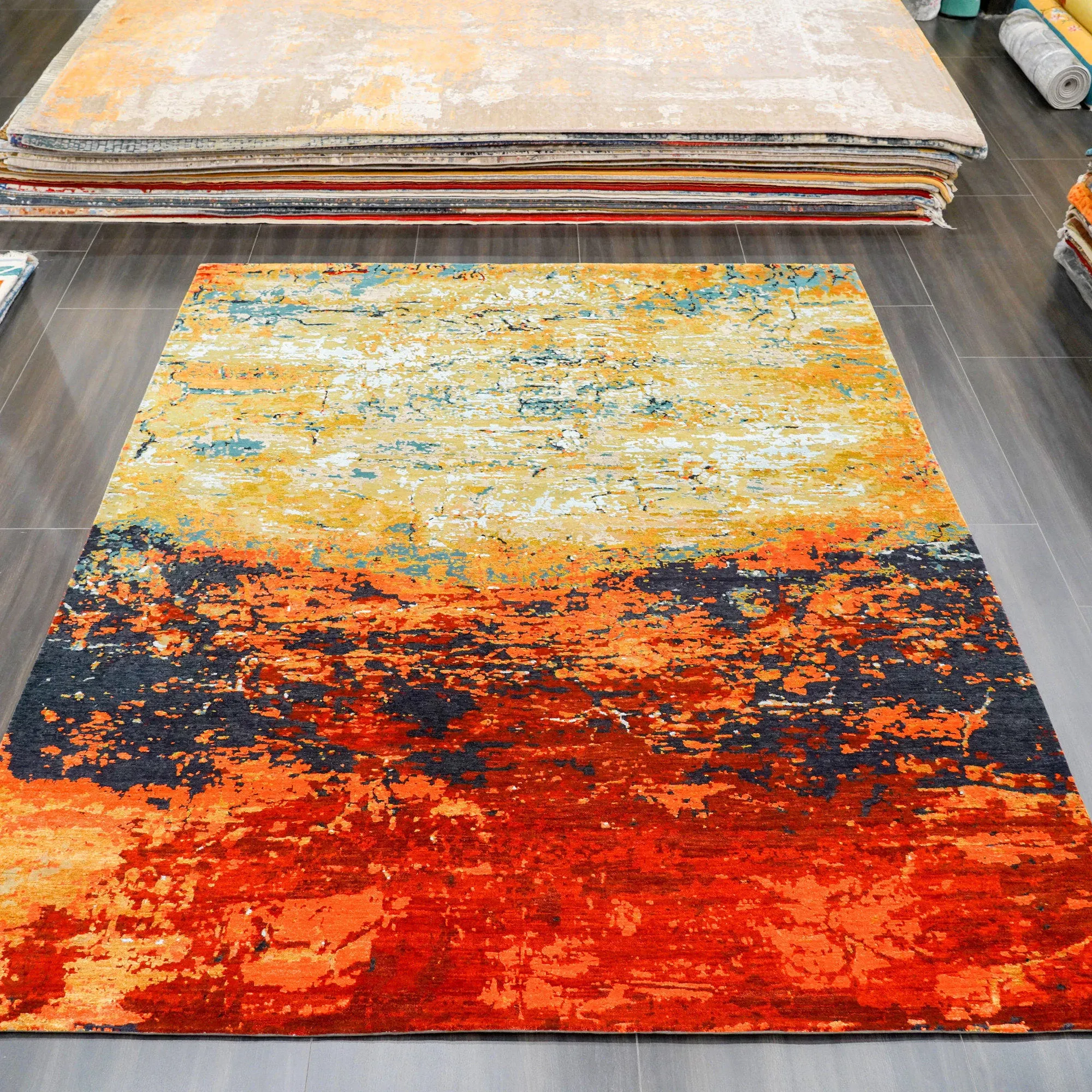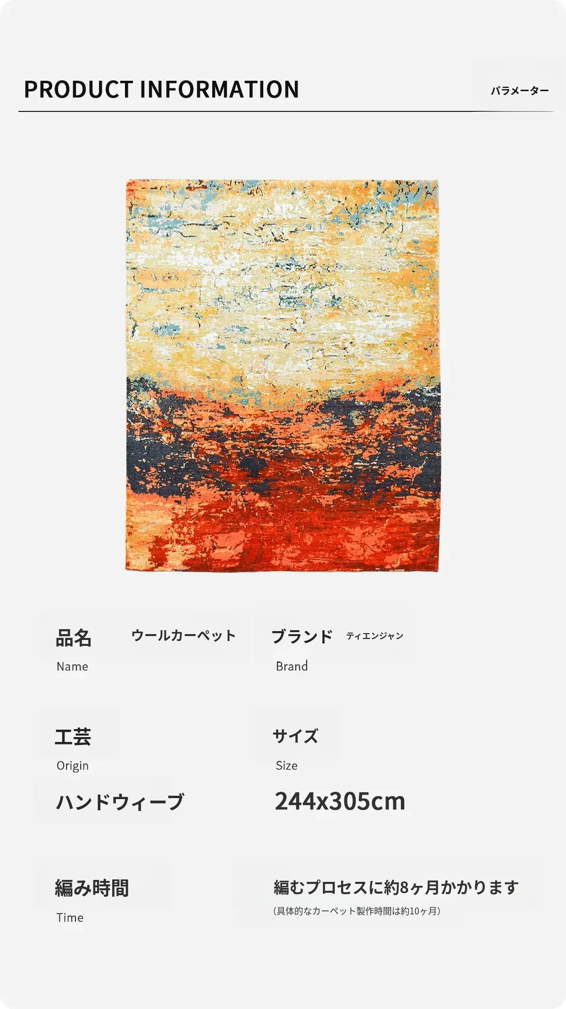 天匠の輸入手作りウールラグ - シンプルでスタイリッシュなリビング・ダイニング用カーペット、全室対応、244x305cmの贅沢なサイズ。お部屋を華やかに彩る一品!